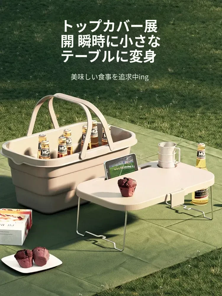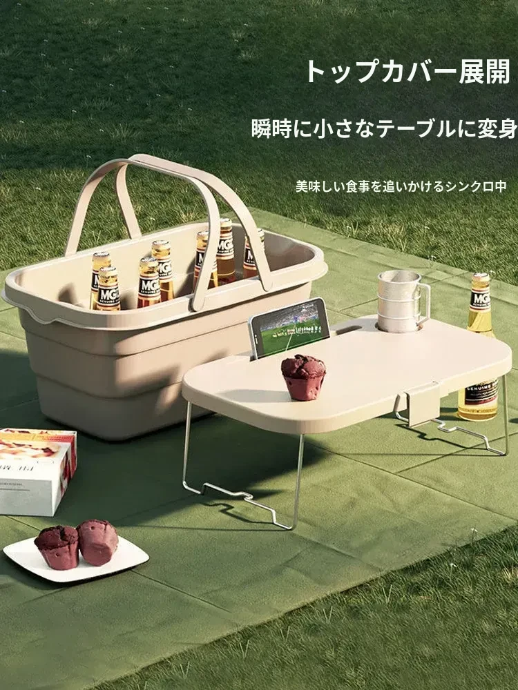 多機能折りたたみハンドル付きピクニックバスケット|春のお出かけやアウトドアに最適!釣りにも使えるおしゃれなデザインで、インスタ映えも抜群!あなたの特別な時間を彩る必需品です。