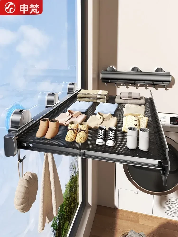 吸盤式隠形物干しハンガー 伸縮折りたたみタイプ 室内で靴下も快適に乾燥!バルコニーのスペースを有効活用する便利な衣類乾燥アイテム!