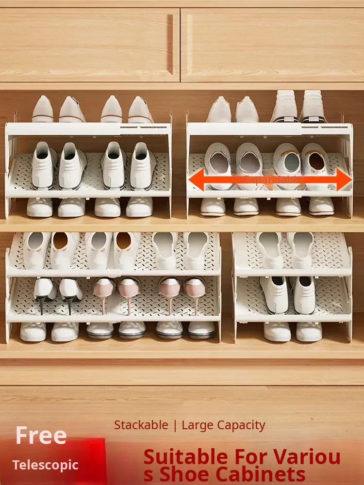 Adjustable Double-Layer Shoe Rack - Space-Saving Organizer with Tiered Shelves for Home Use, Perfect for Footwear Storage and Maximizing Your Space!