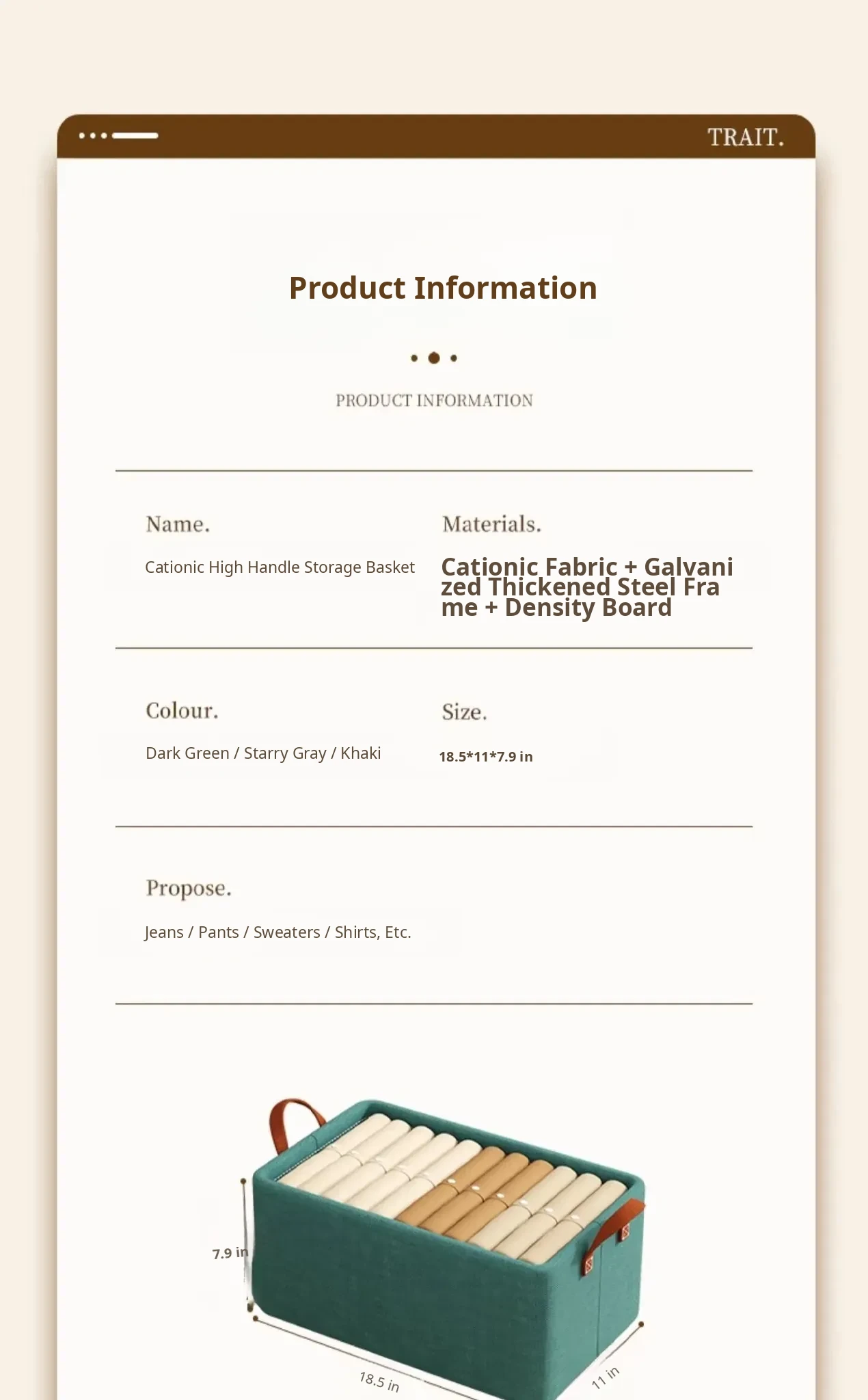Cationic Fabric Storage Box - Large Capacity Clothes Organizer for Home, Foldable Storage Basket for Wardrobe, Perfect for Decluttering Your Space!