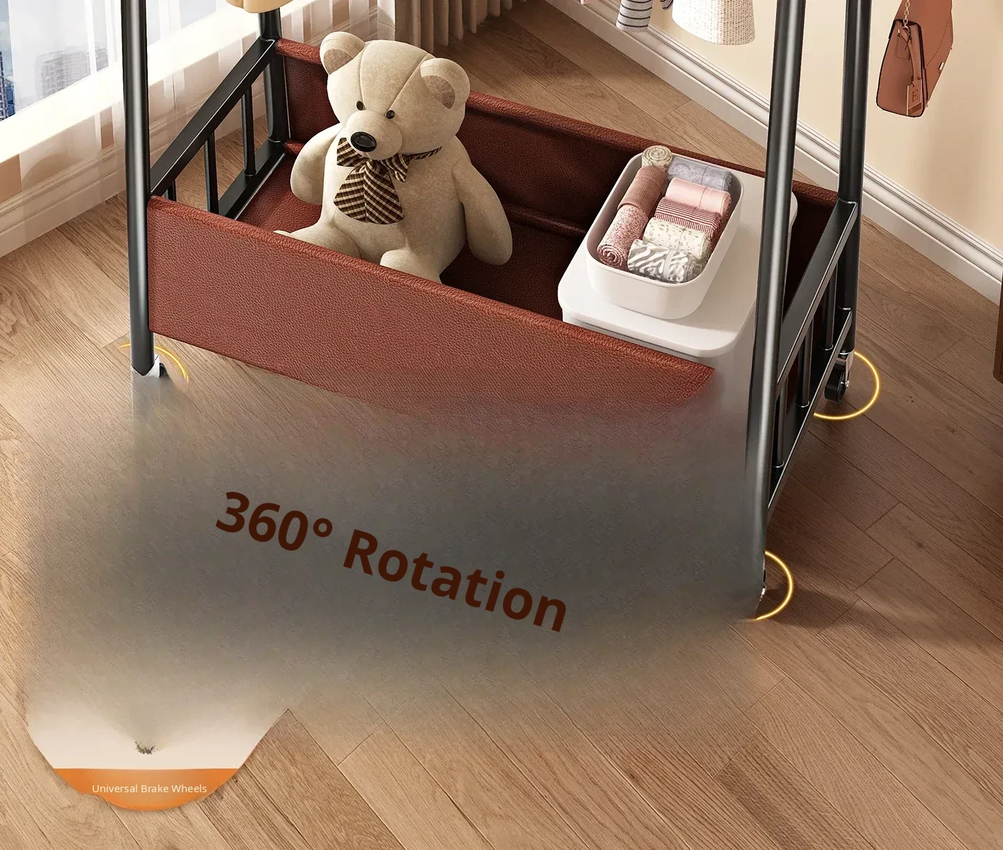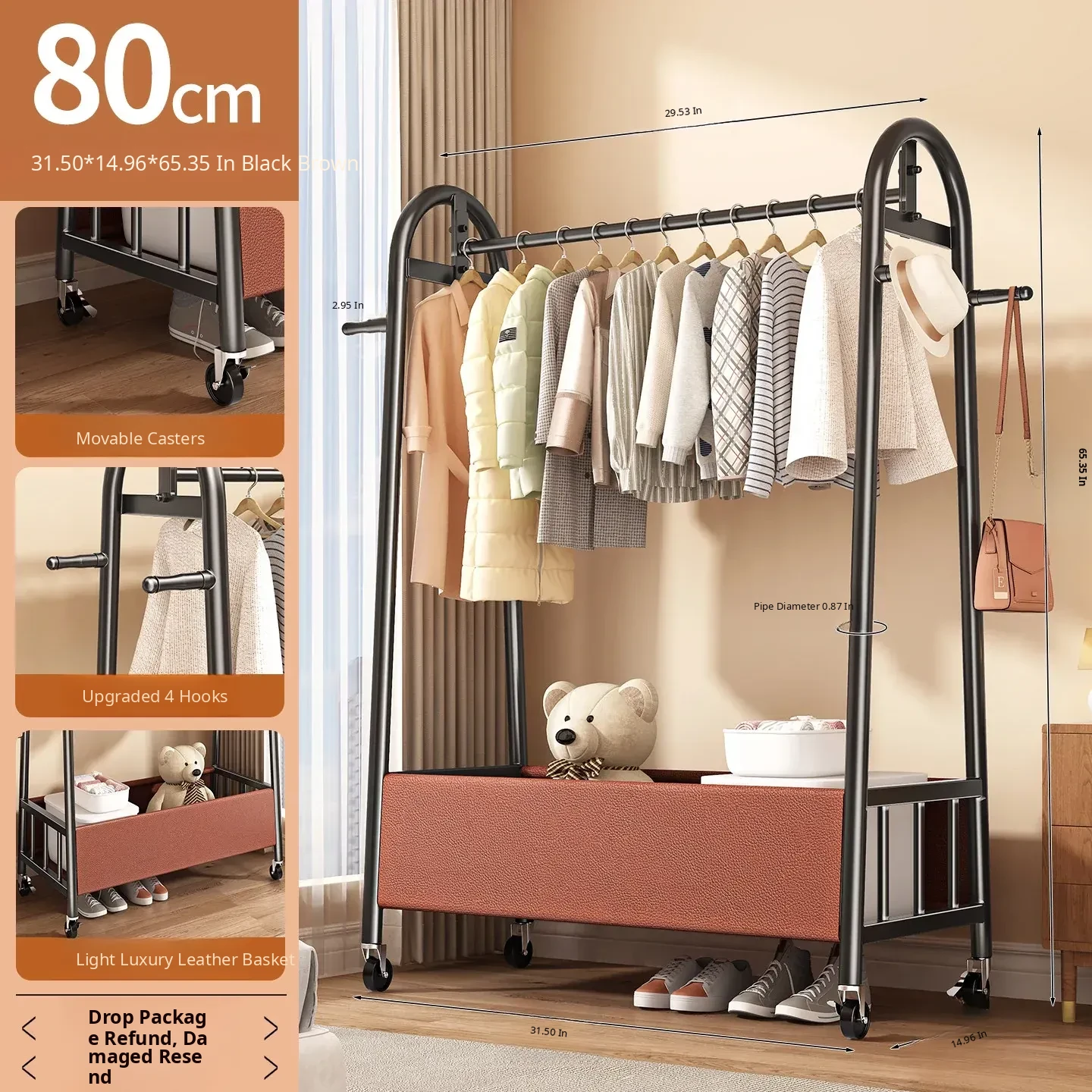 [Thick Steel Pipe] Black Brown 31.50in ❤ Leather Pocket Storage + Hook + Free Universal Wheels "2026 High-Quality Products"