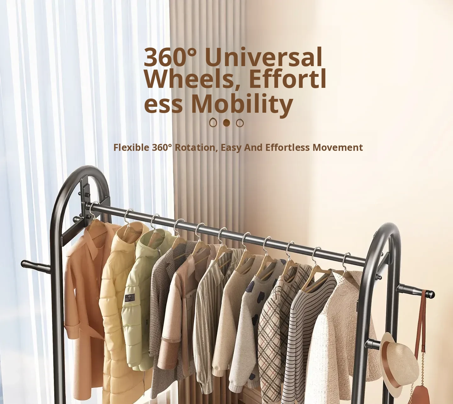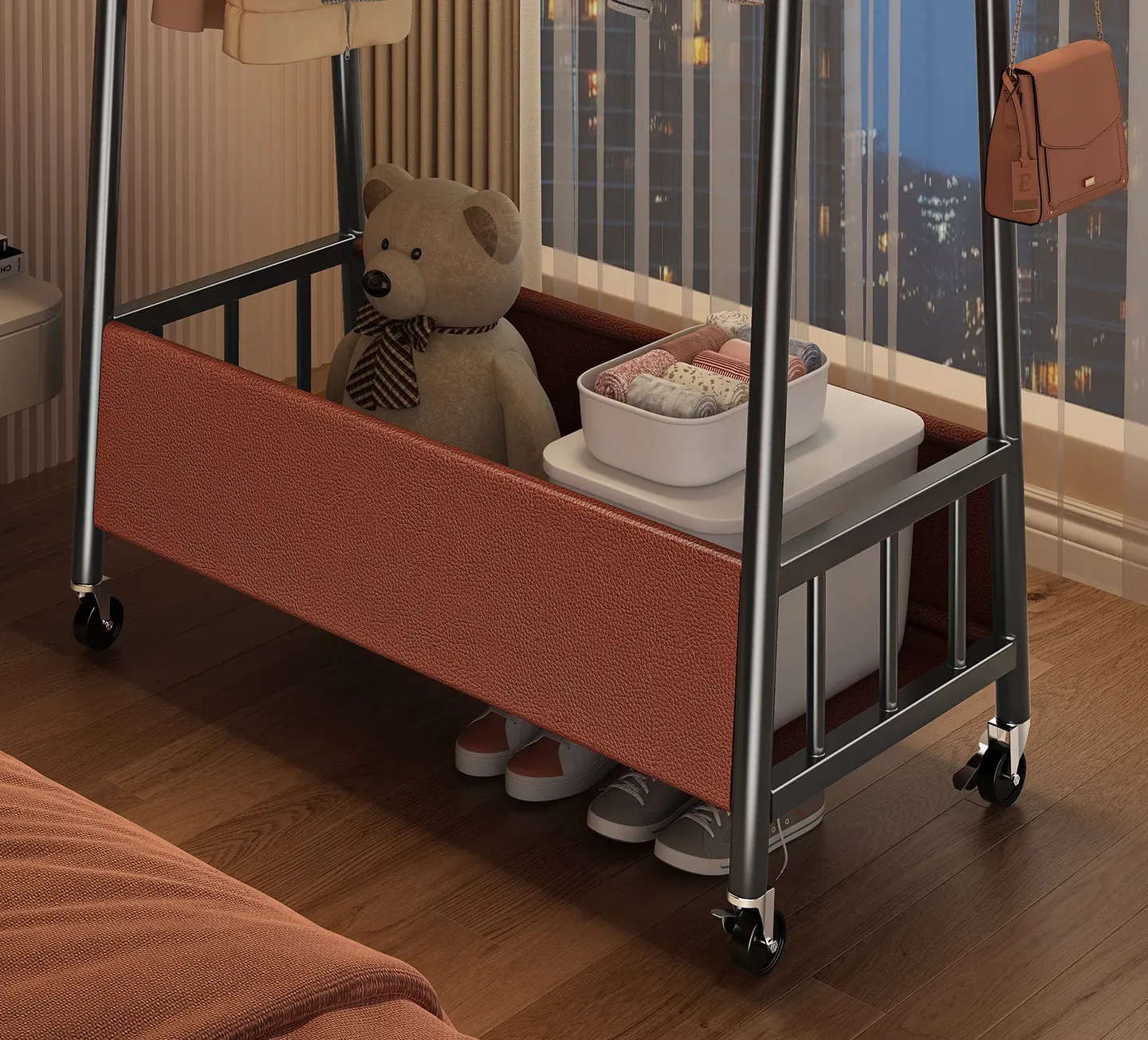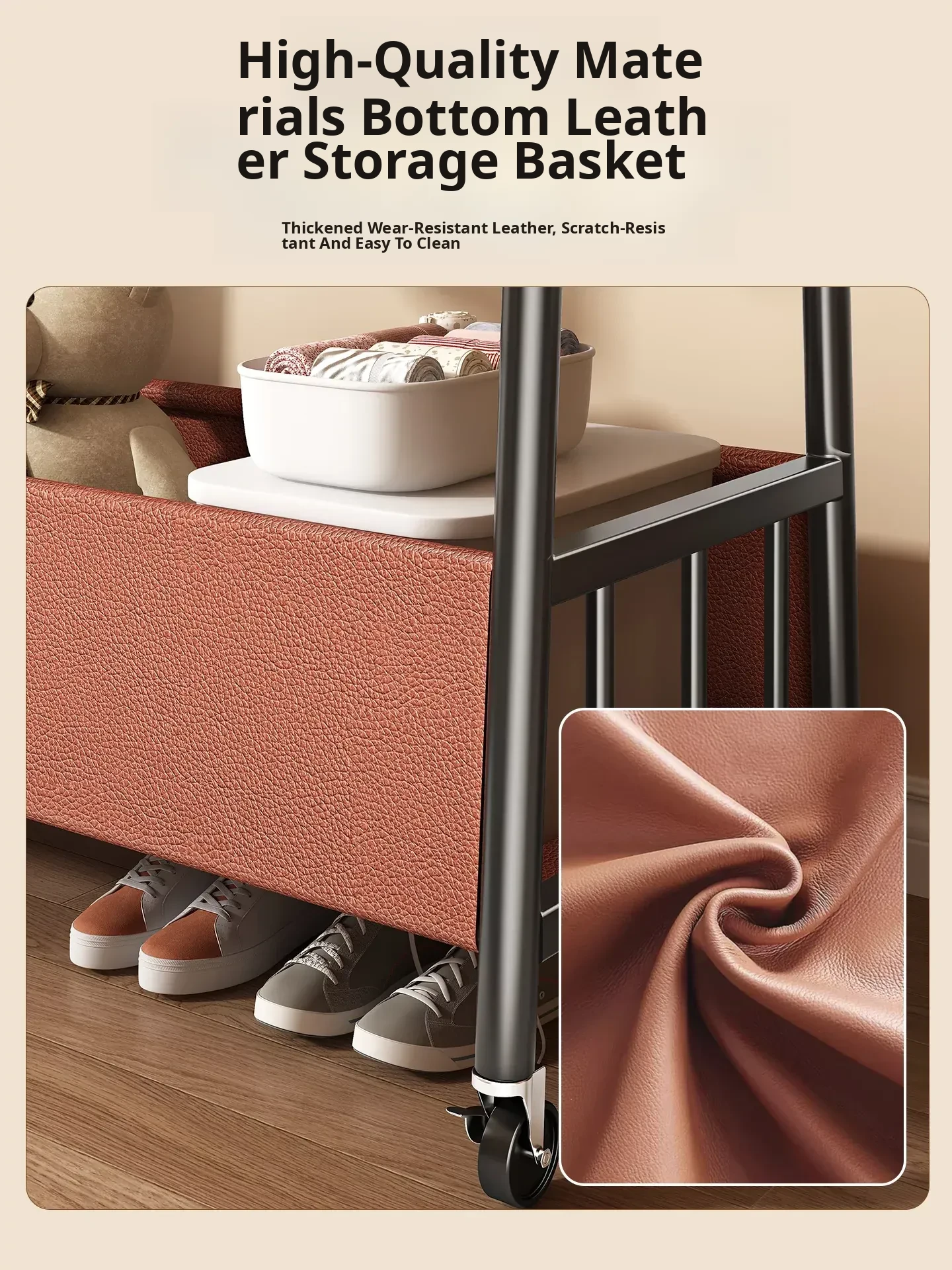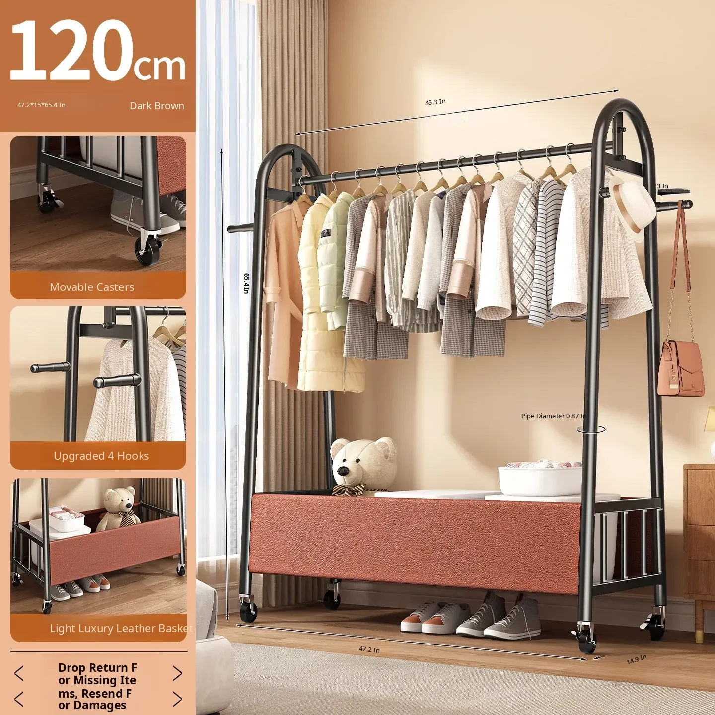 [Thick Steel Pipe] Black Brown 47.24in❤Leather Pocket Storage + Hook + Free Universal Wheels "2026 High-Quality Products"