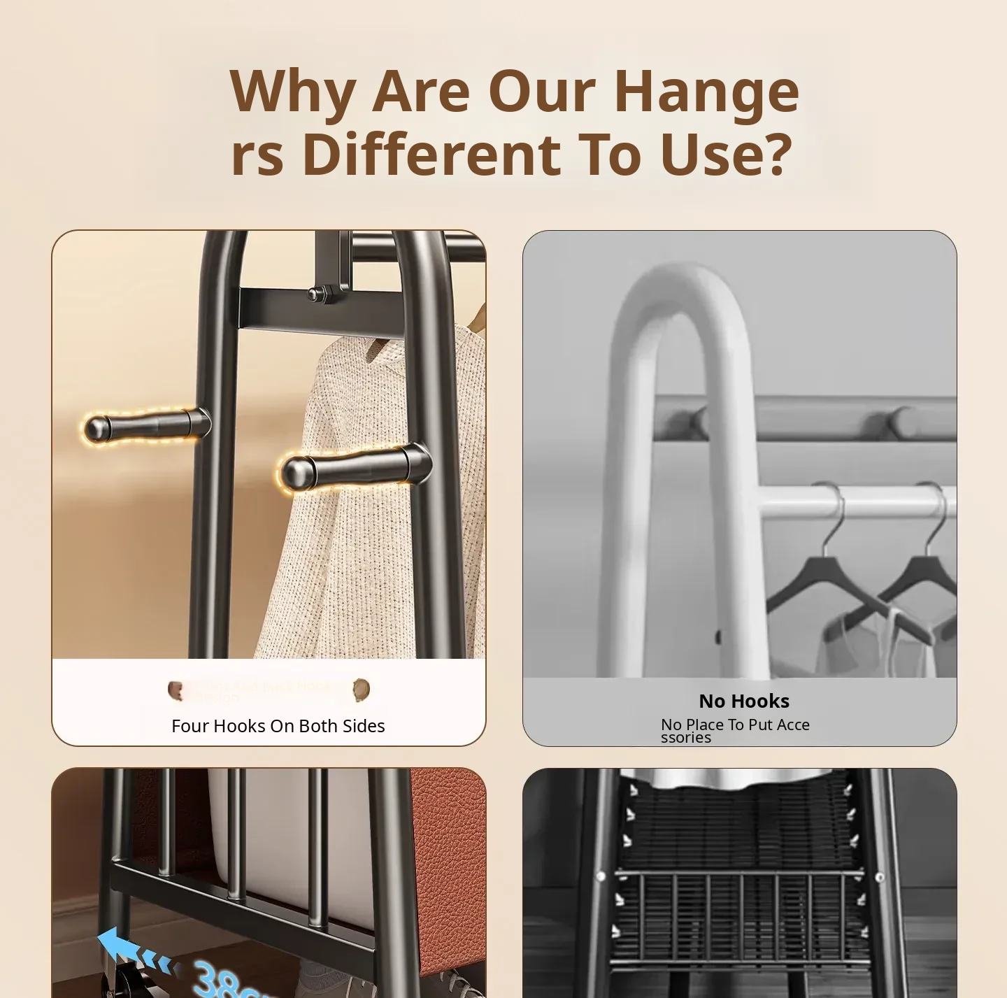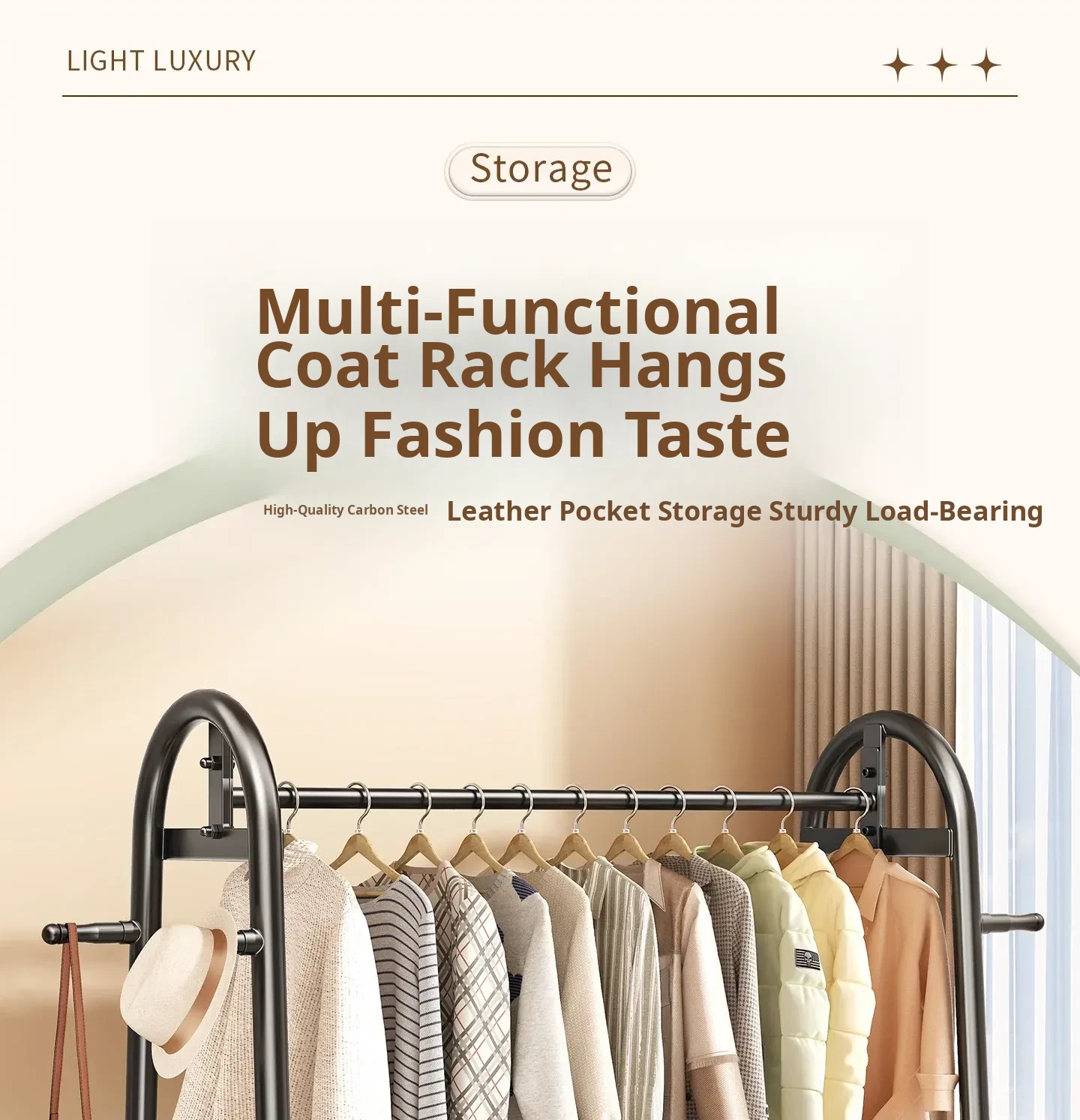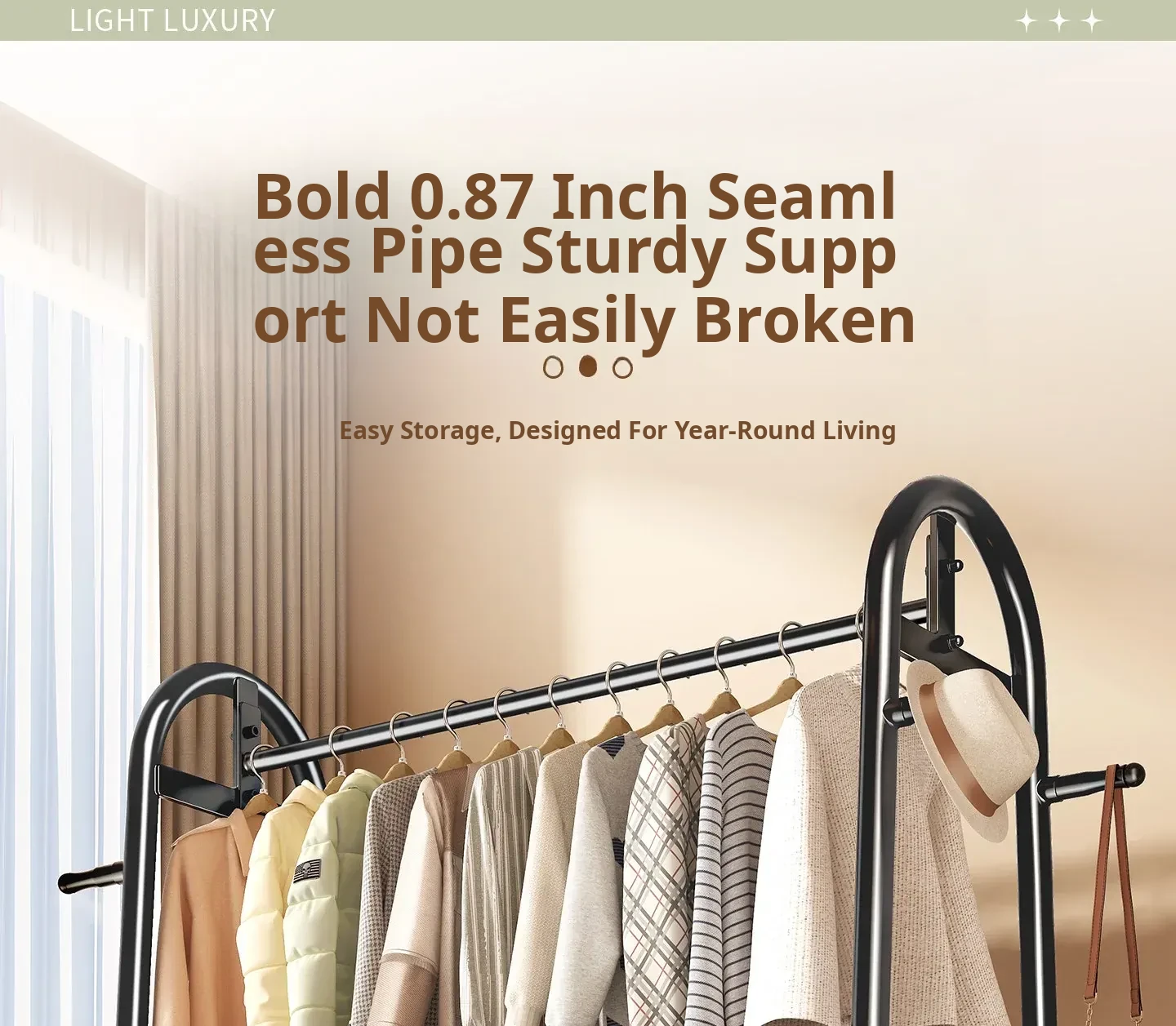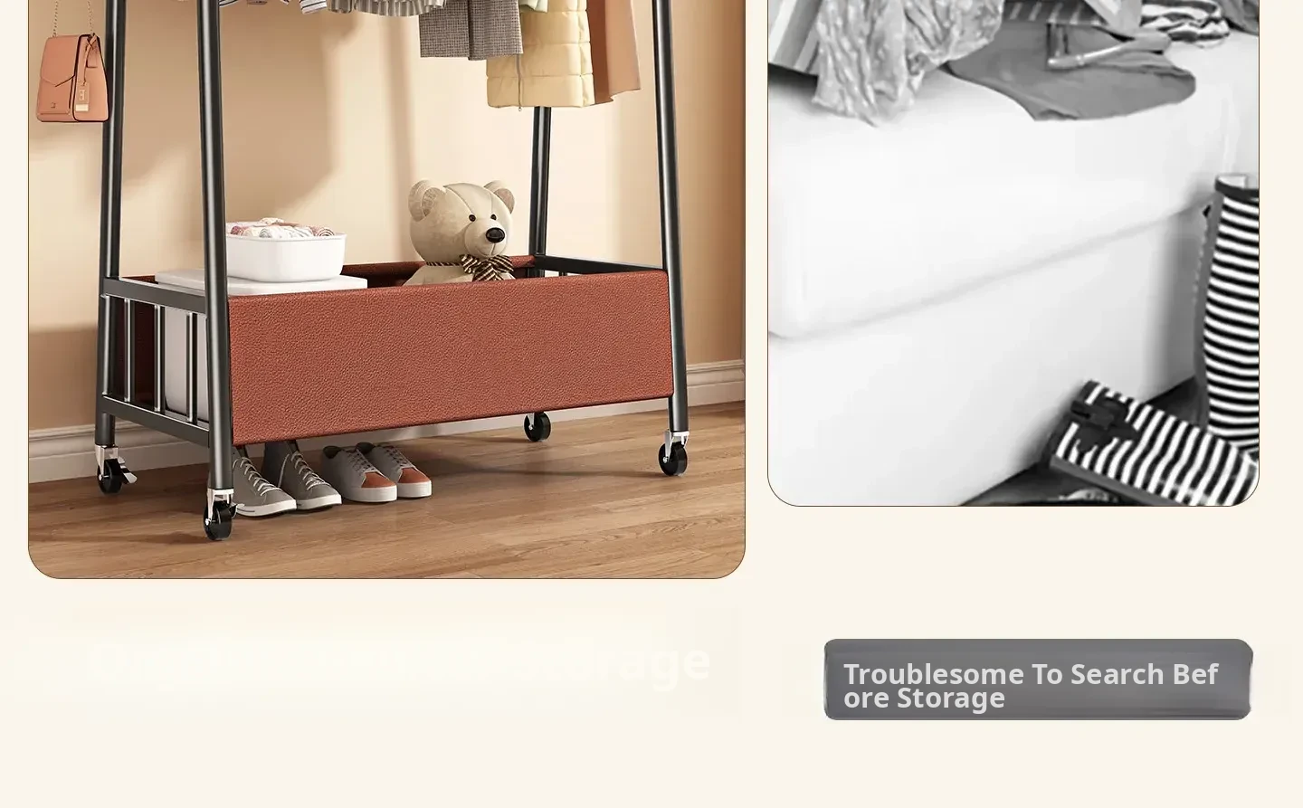 [Thick Steel Pipe] Black Brown 59.06in❤Leather Pocket Storage + Hook + Free Universal Wheels "2026 High-Quality Products"