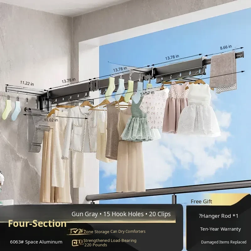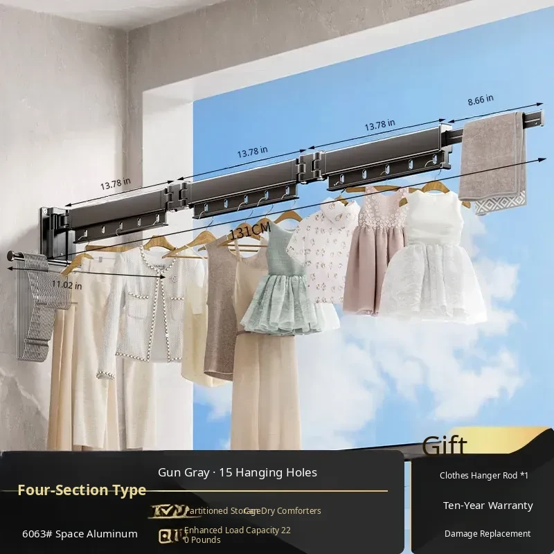 Gun Ash 4 Sections [No Installation] 15 Windproof Holes + Clothes Rod with Clip + Clothes Hanger Storage Rod