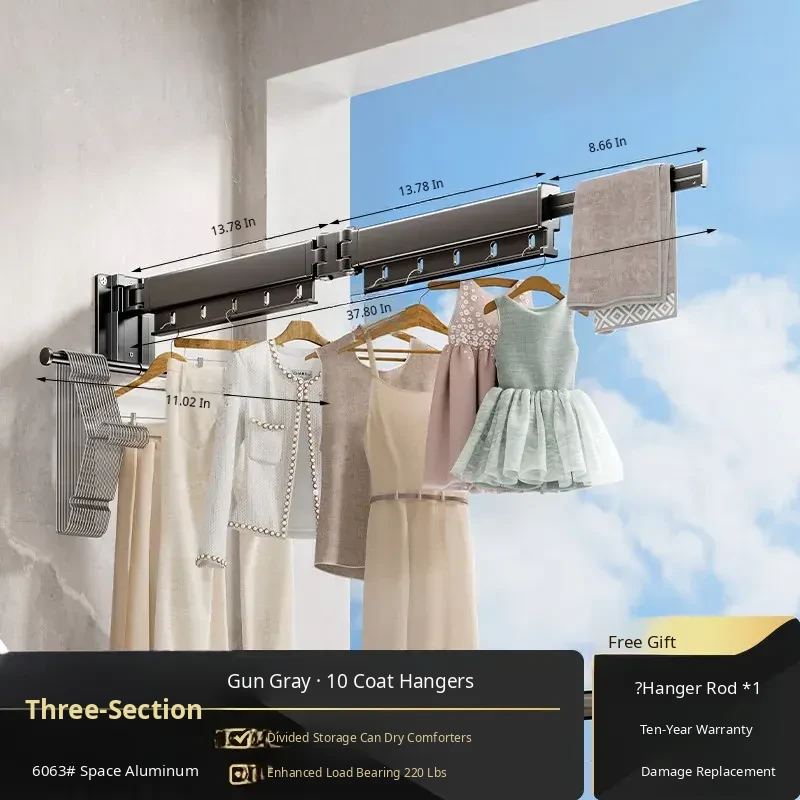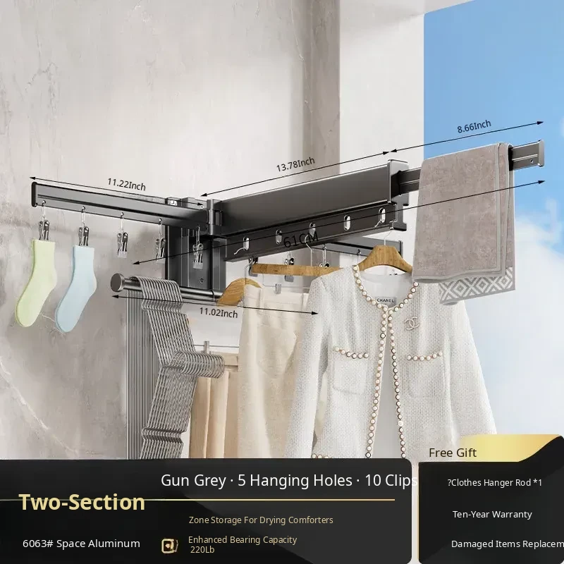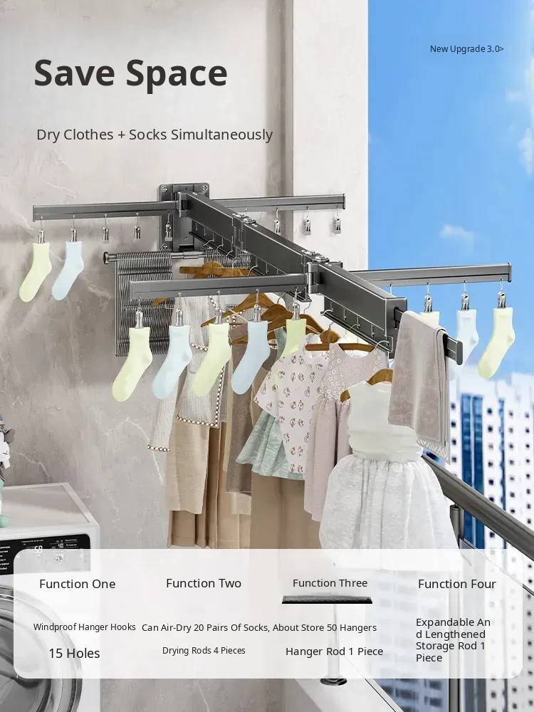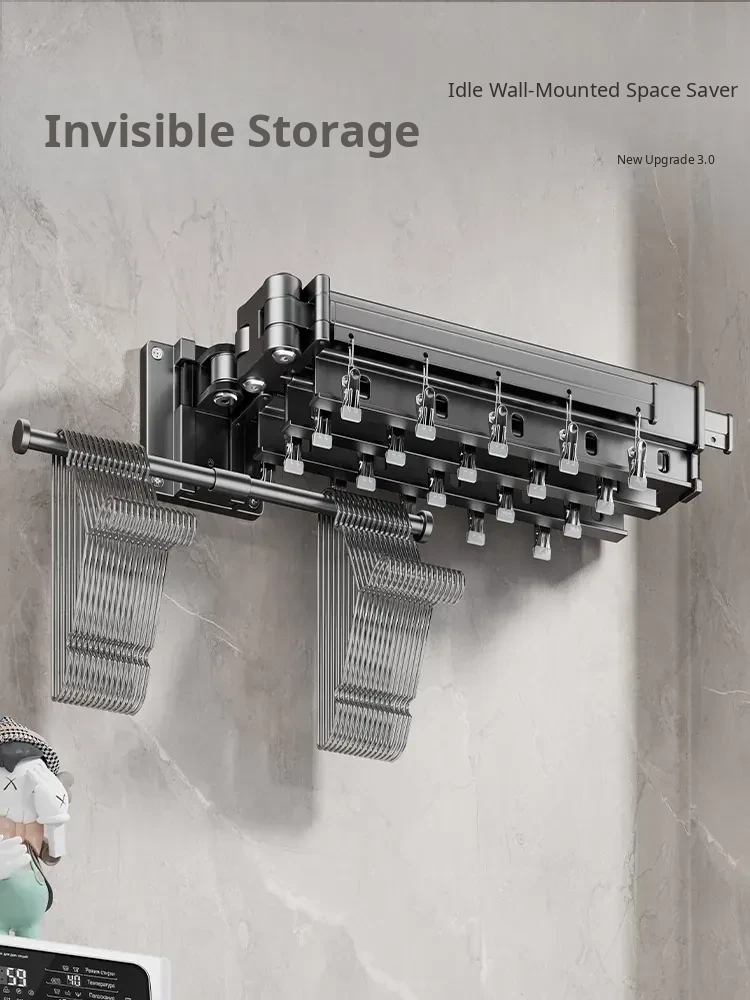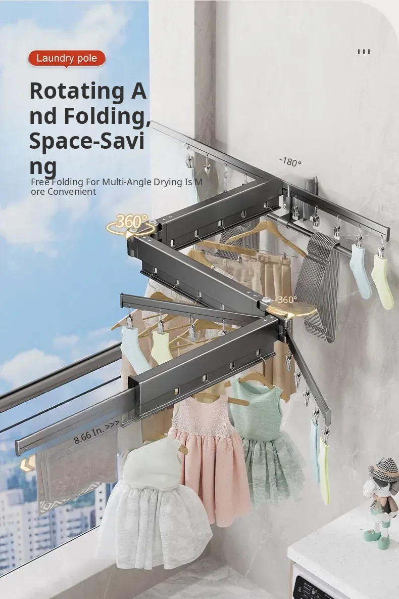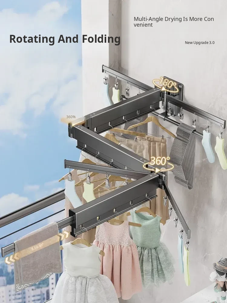 Foldable Clothes Drying Rack - Invisible Expandable Wall-Mounted Hanger for Balcony, No Drilling Required, Perfect for Home Use, Your Ultimate Laundry Solution!