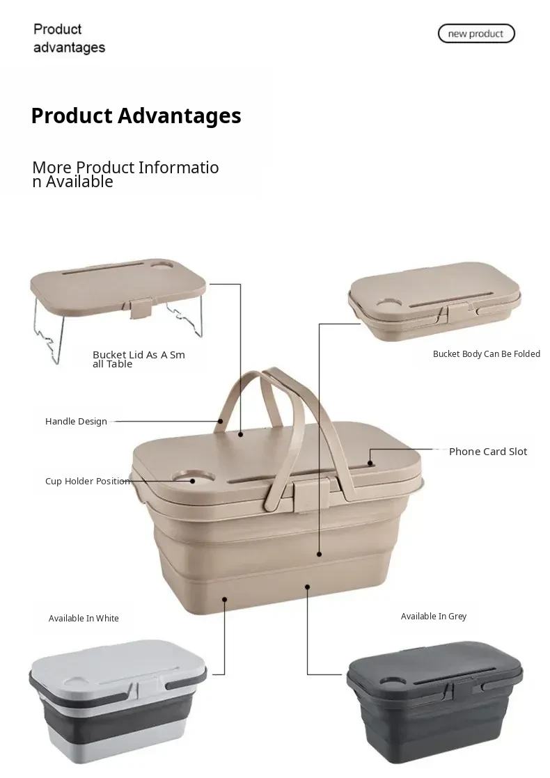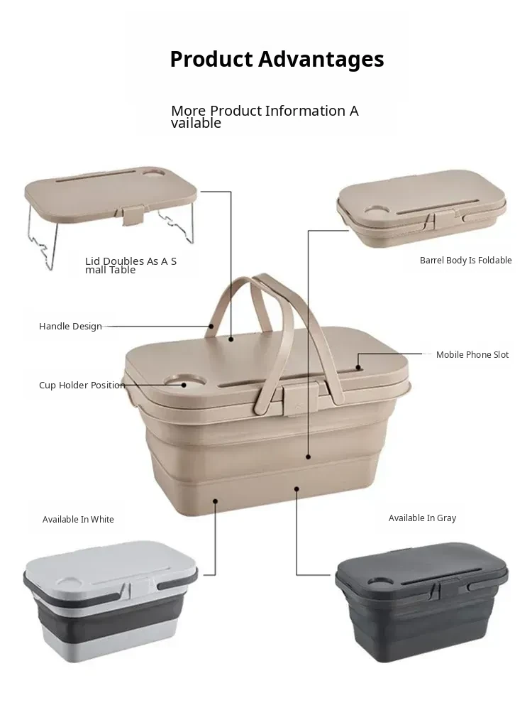 Foldable Multifunctional Picnic Basket - Portable Outdoor Food & Fruit Storage Tote for Camping and Outdoor Cooking