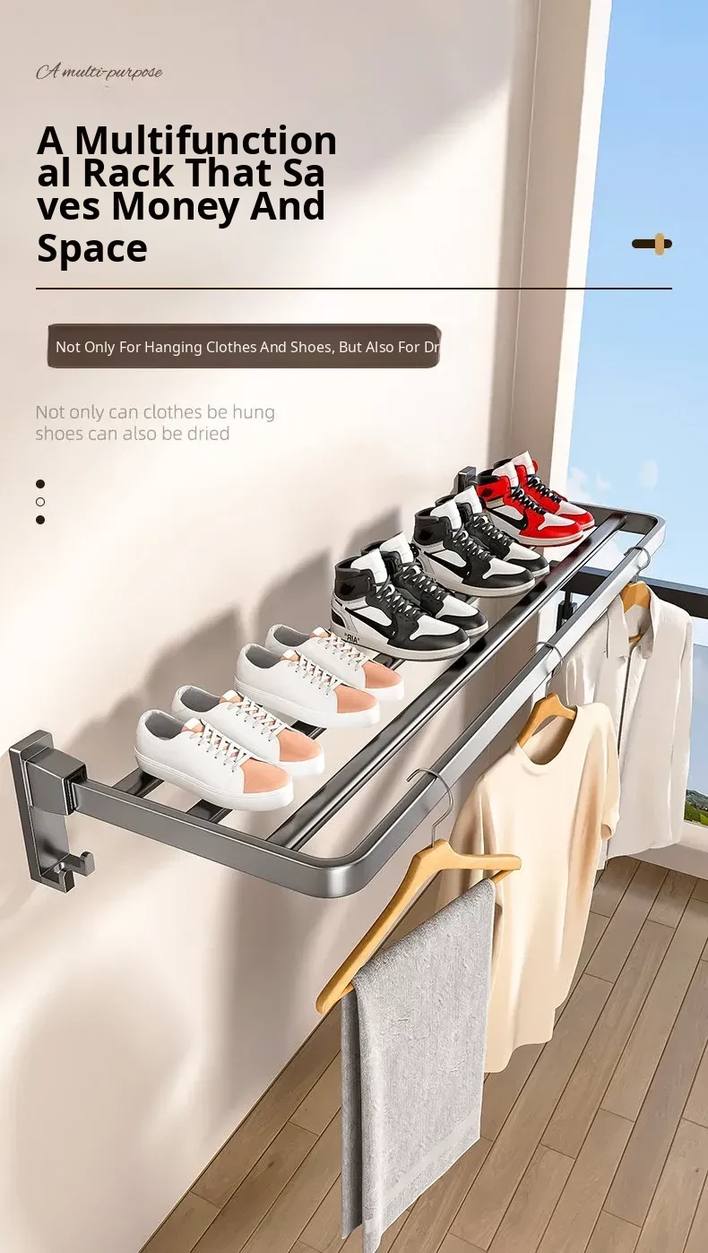 Invisible Folding Clothes Drying Rack - Multi-Functional Indoor/Outdoor Clothesline for Balcony, Ideal for Drying Socks and Shoes, Moisture-Proof, Perfect for Homes with Children