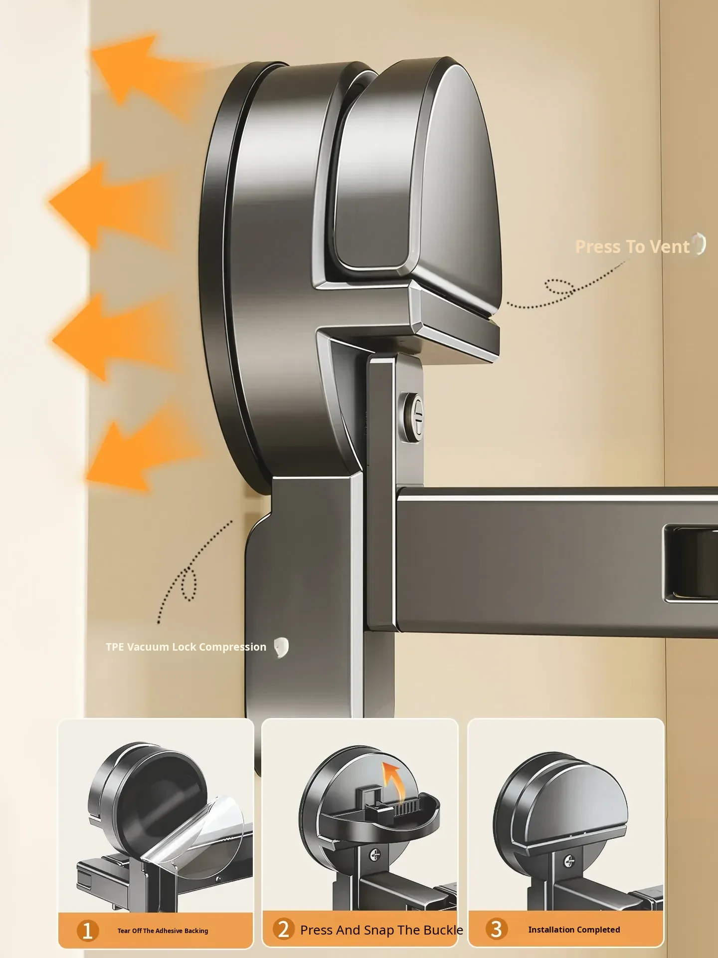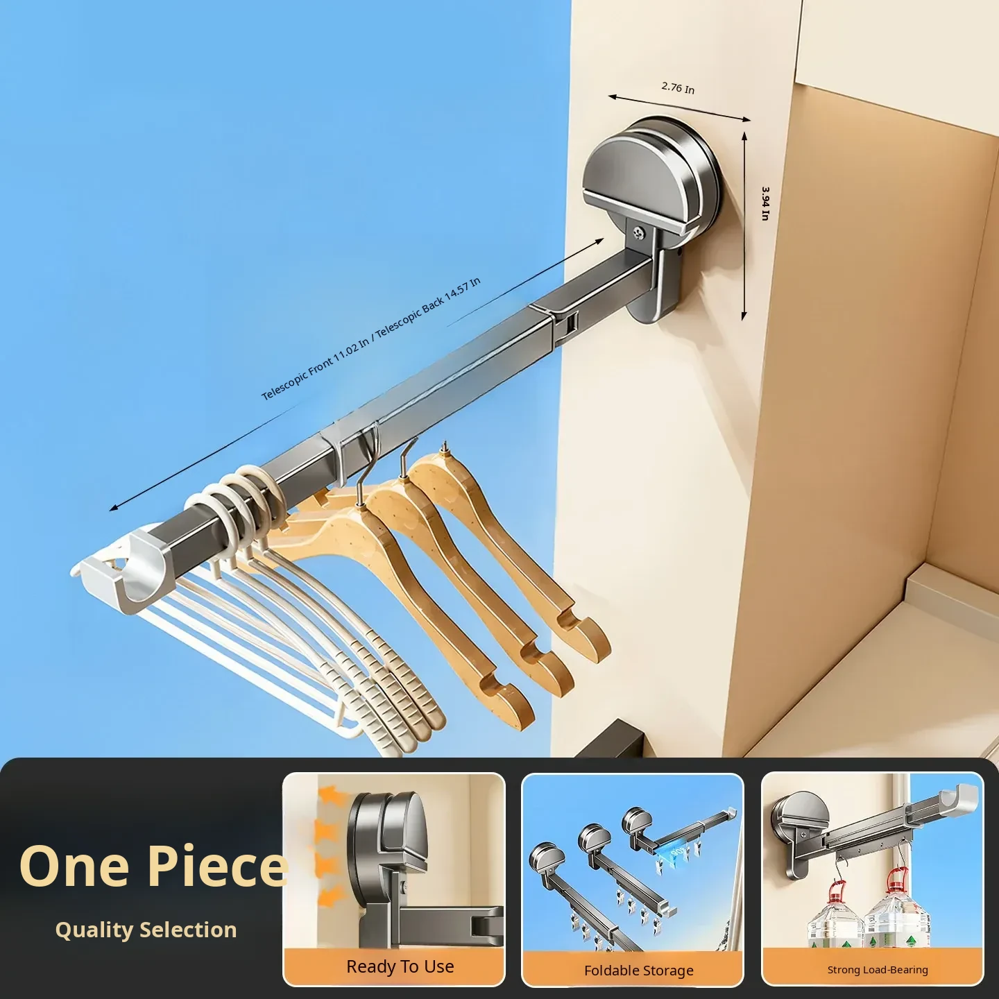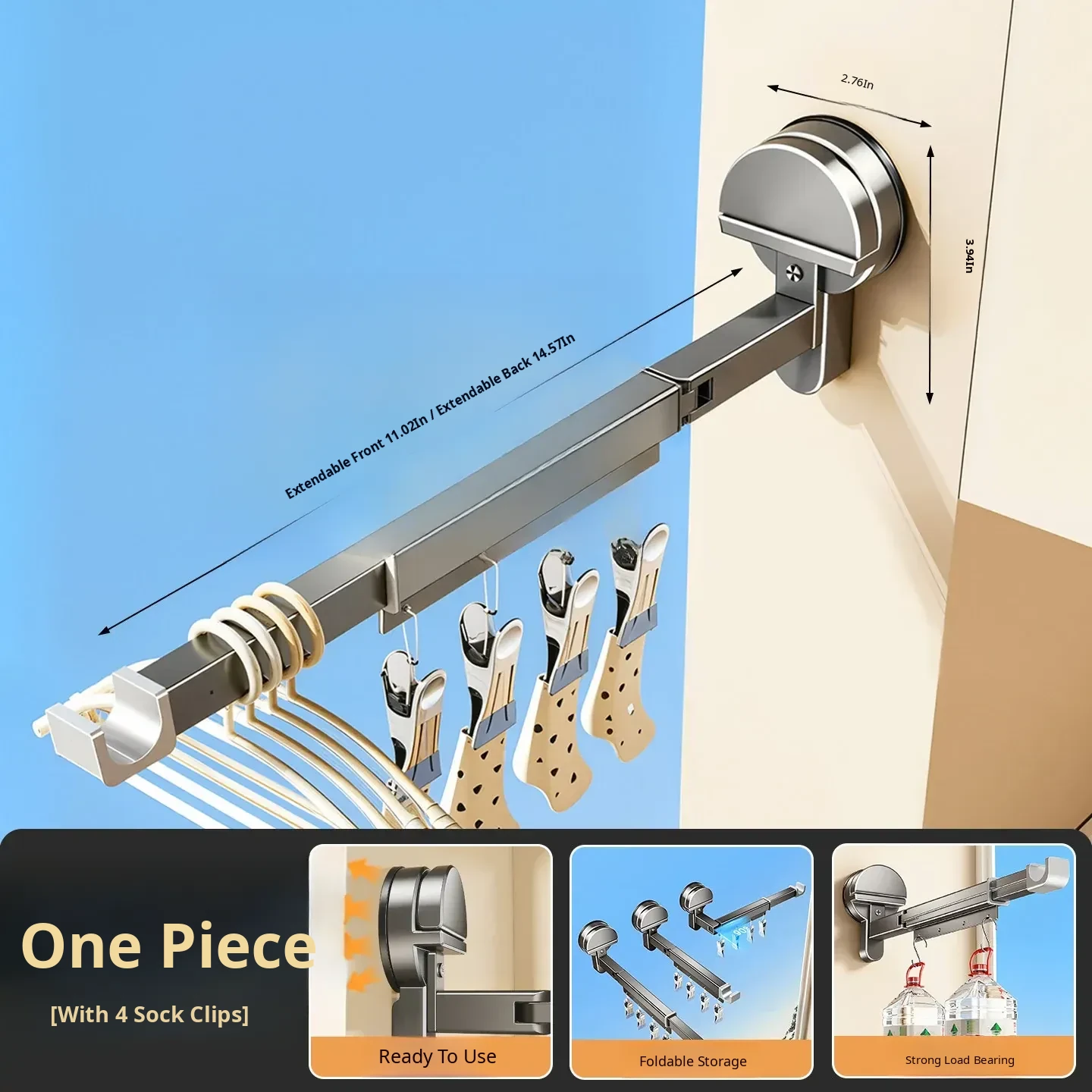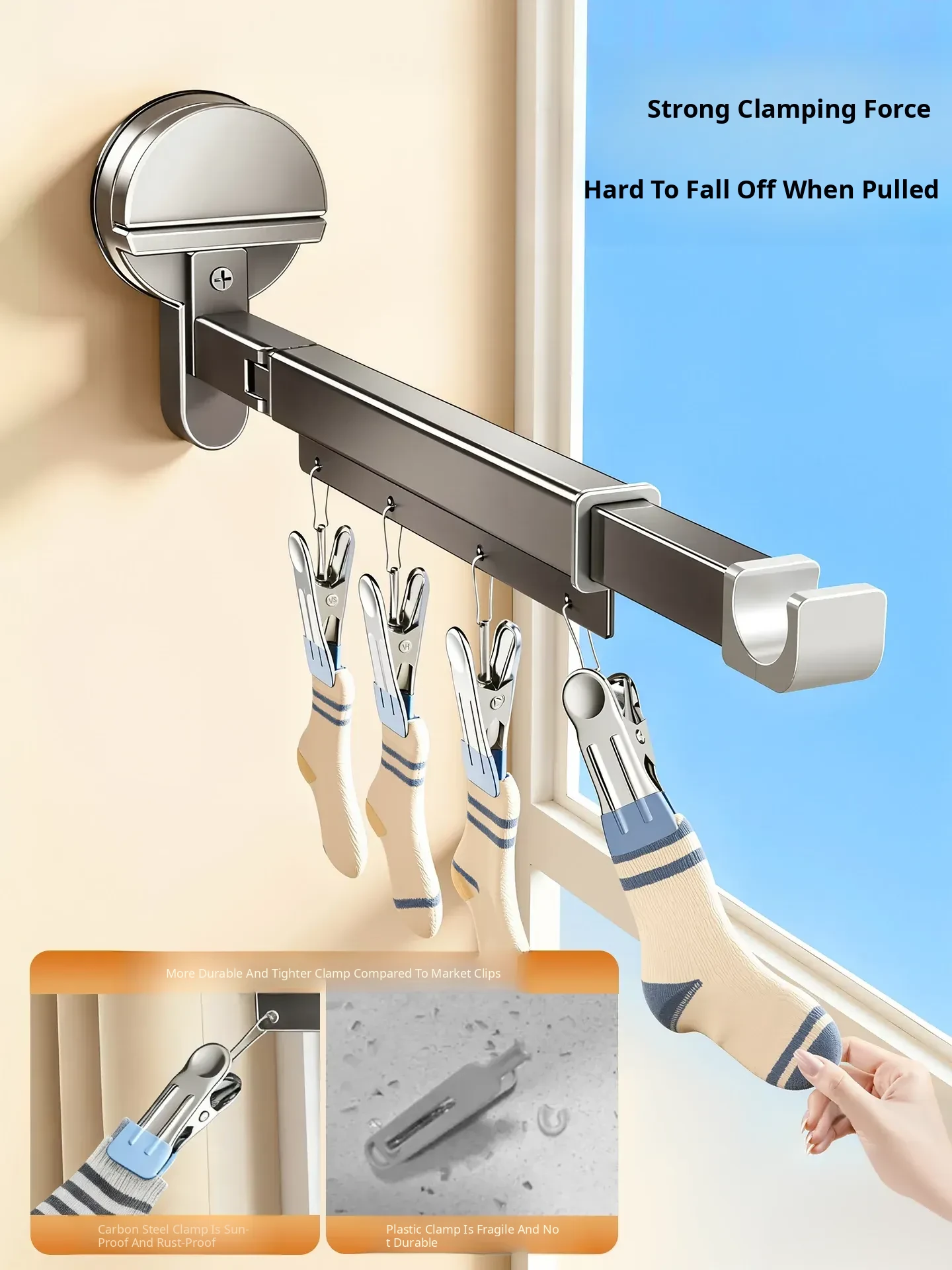 [Gun Ash] Powerful Suction Cup Clothes Drying Rack [Rod Length 11.02in-14.57in]