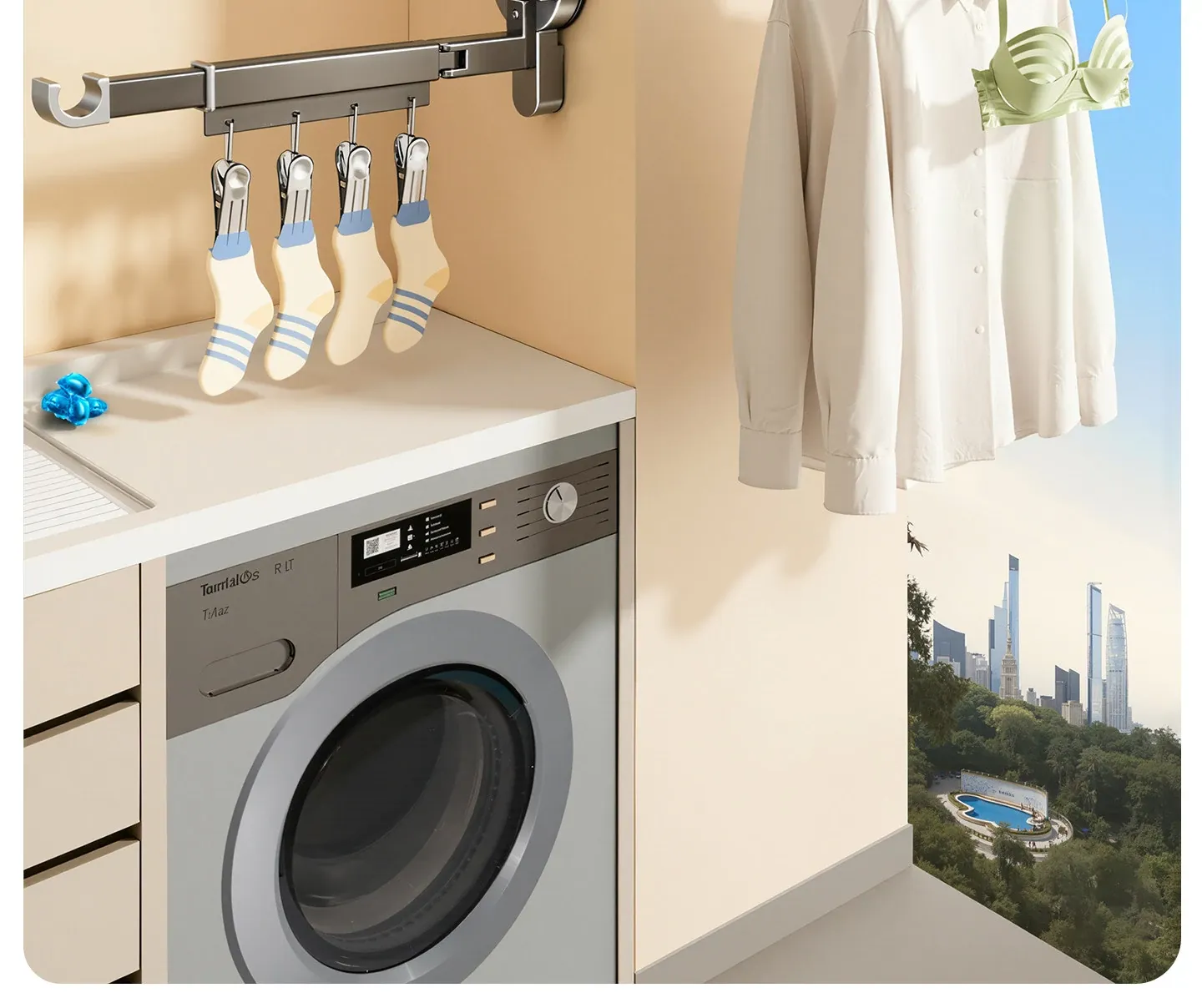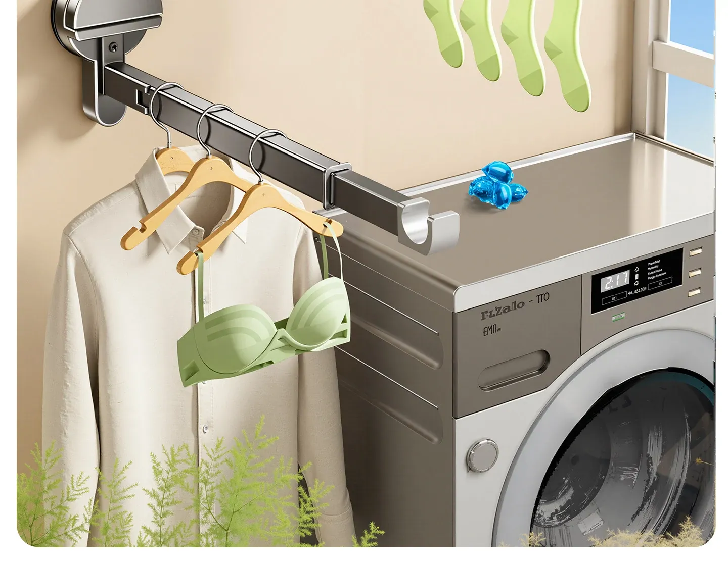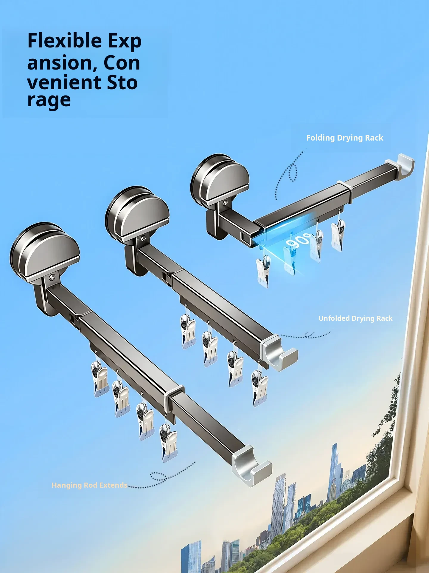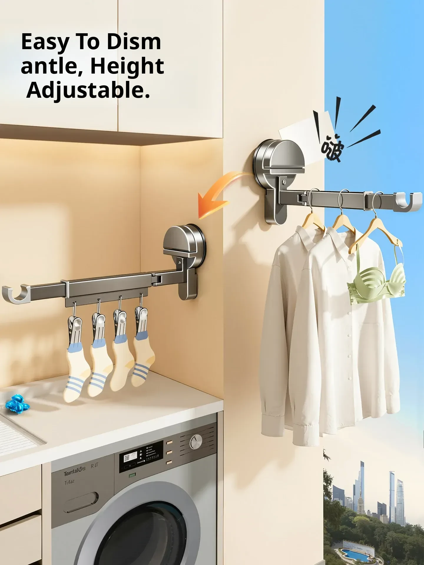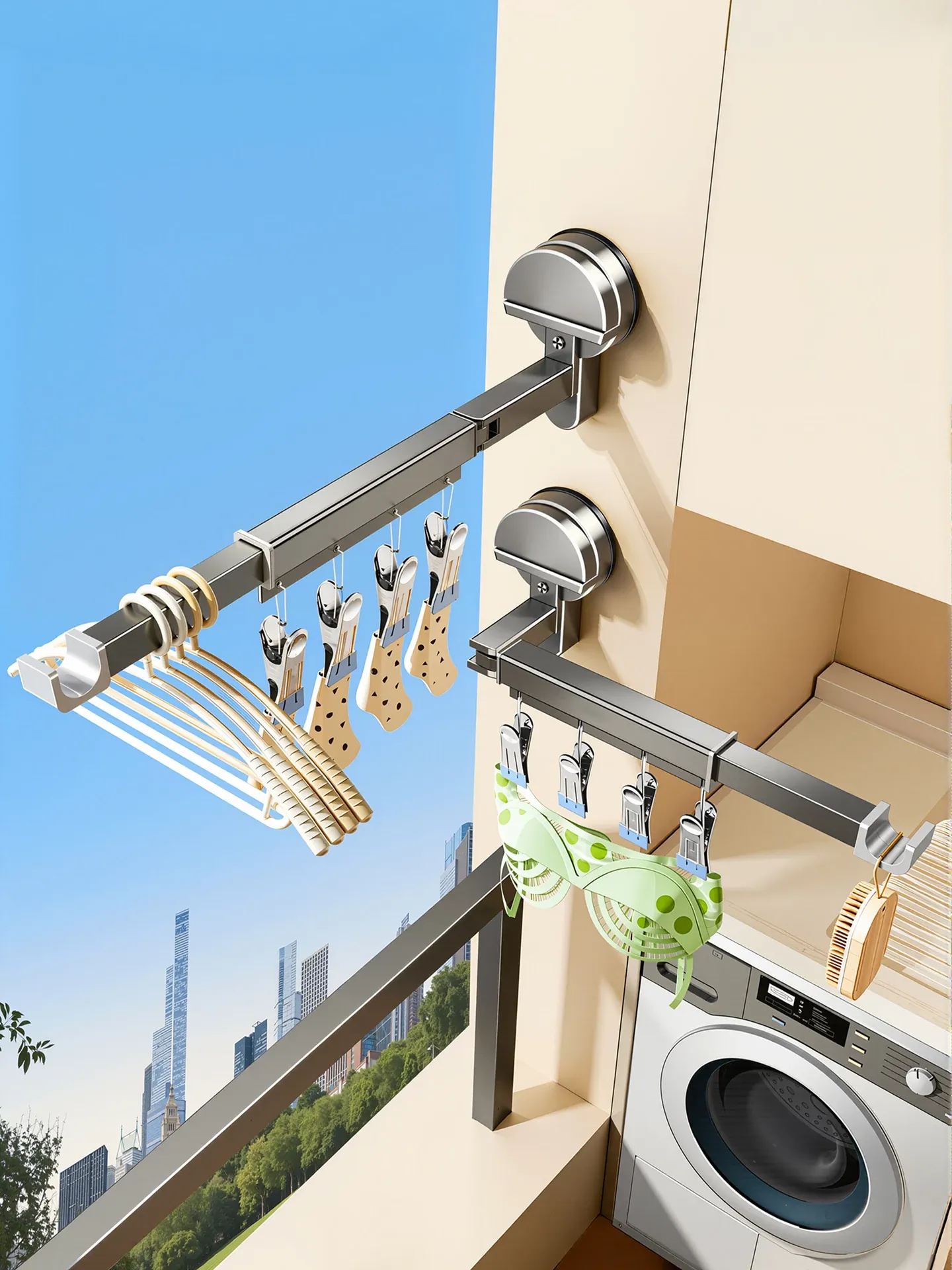 Invisible Folding Clothes Drying Rack with Suction Cups - Adjustable and Removable Indoor Balcony Clothes Hanger, Perfect for Drying Comforters and Laundry at Home!