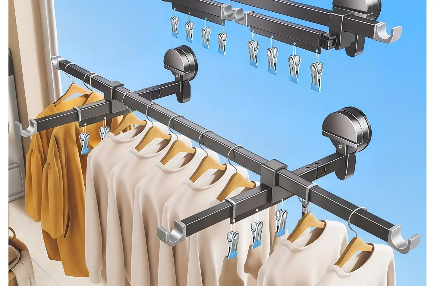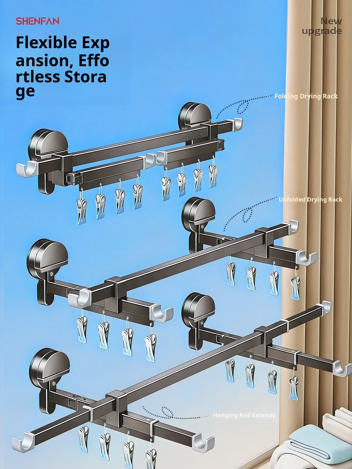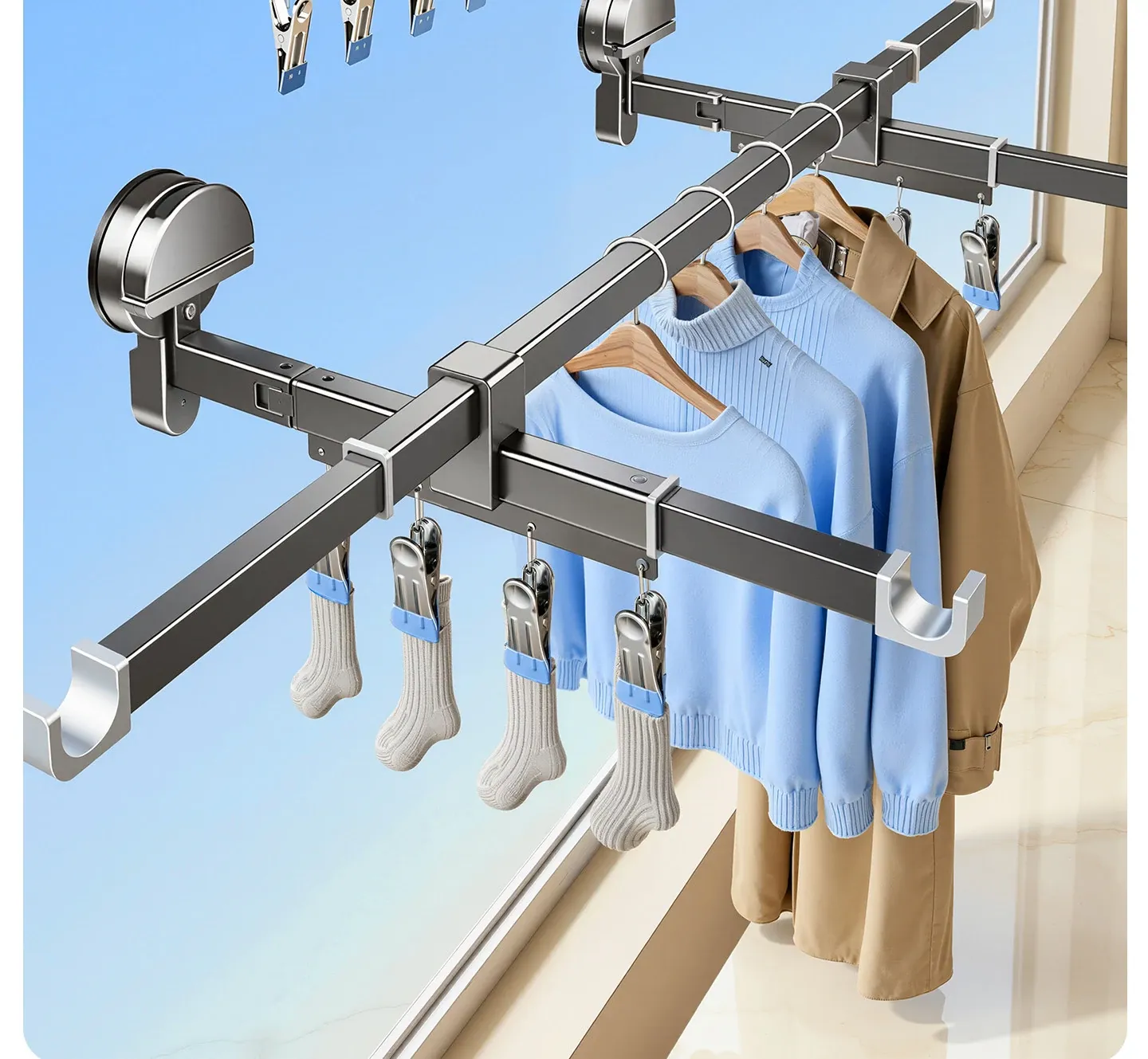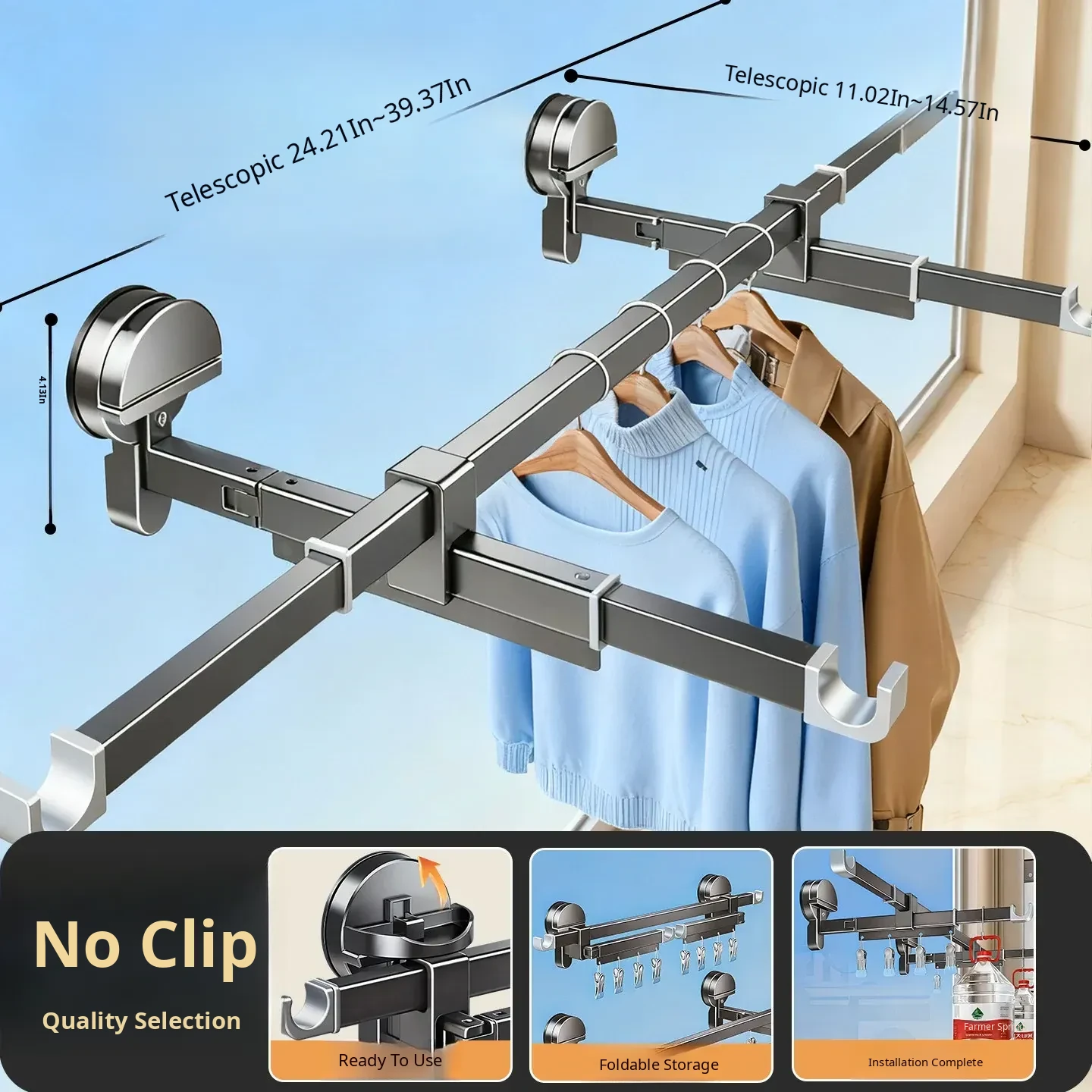 Invisible Folding Clothes Drying Rack with Suction Cups - Retractable Indoor Balcony Clothesline, Perfect for Drying Quilts and Laundry at Home!