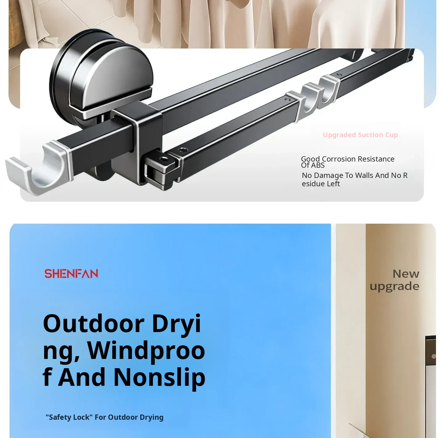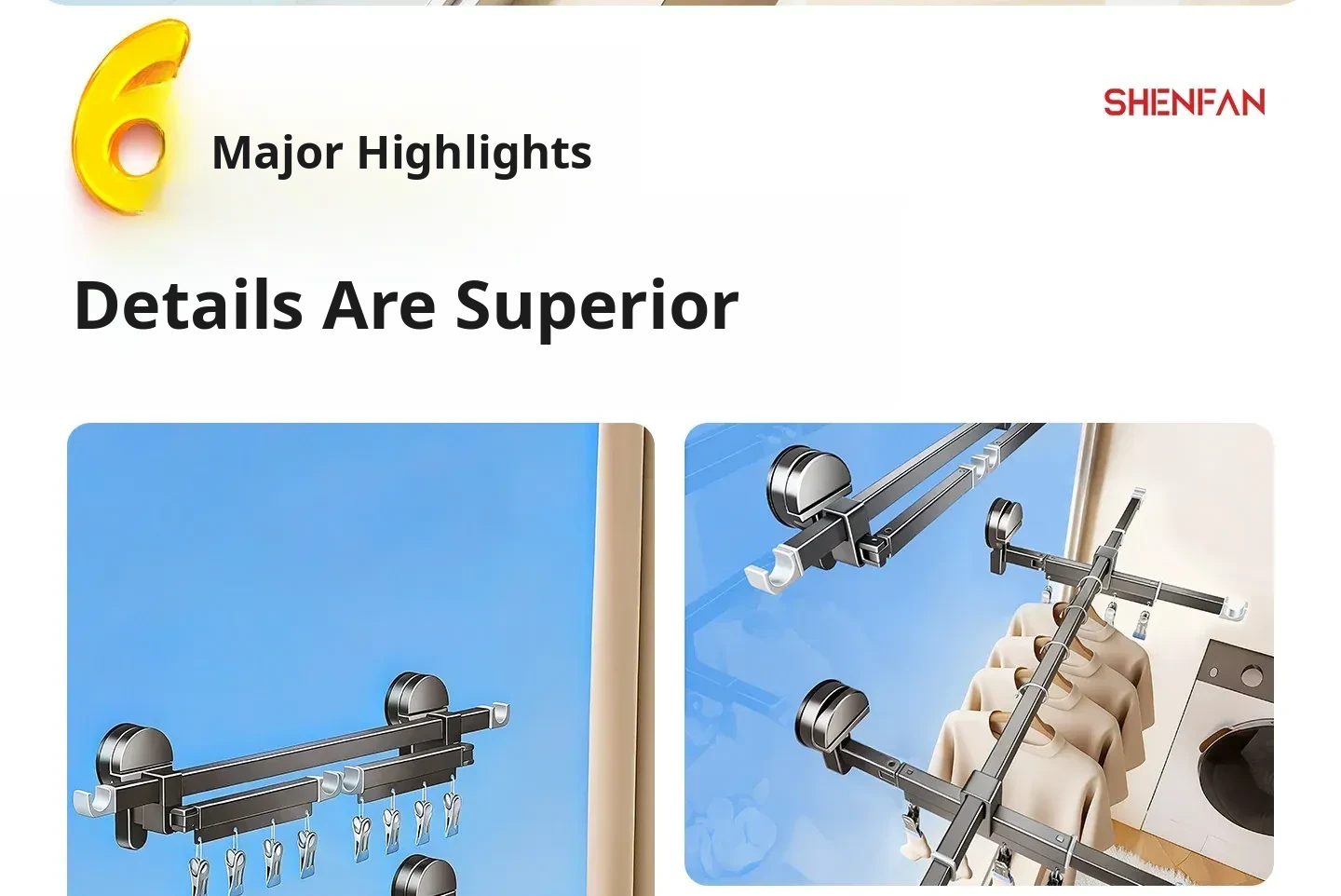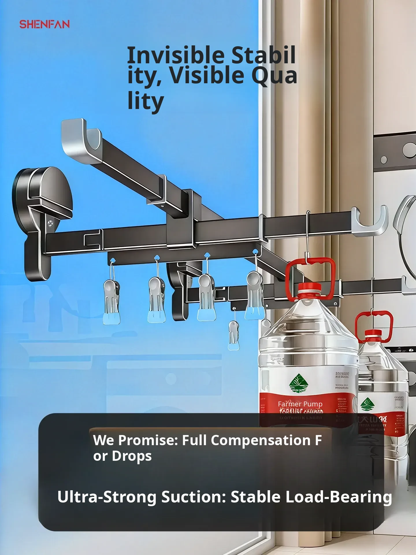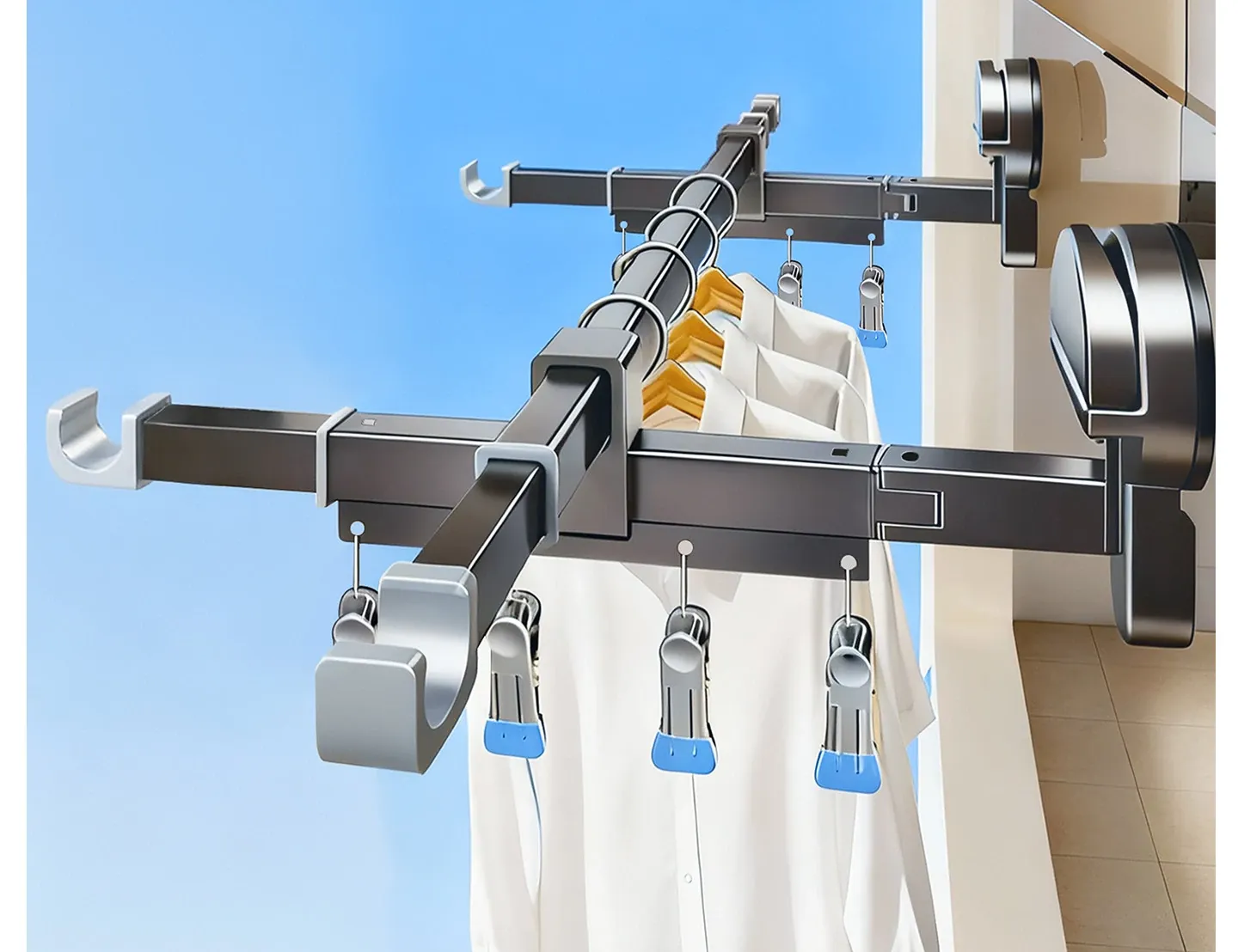 Invisible Folding Clothes Drying Rack with Suction Cups - Retractable Indoor Balcony Clothesline, Perfect for Drying Quilts and Laundry at Home!