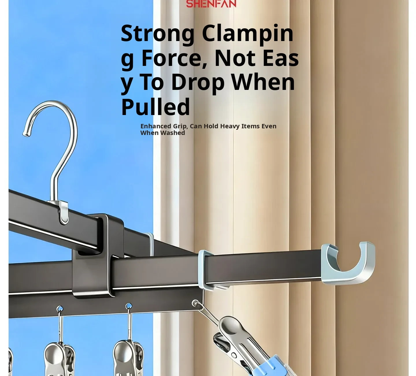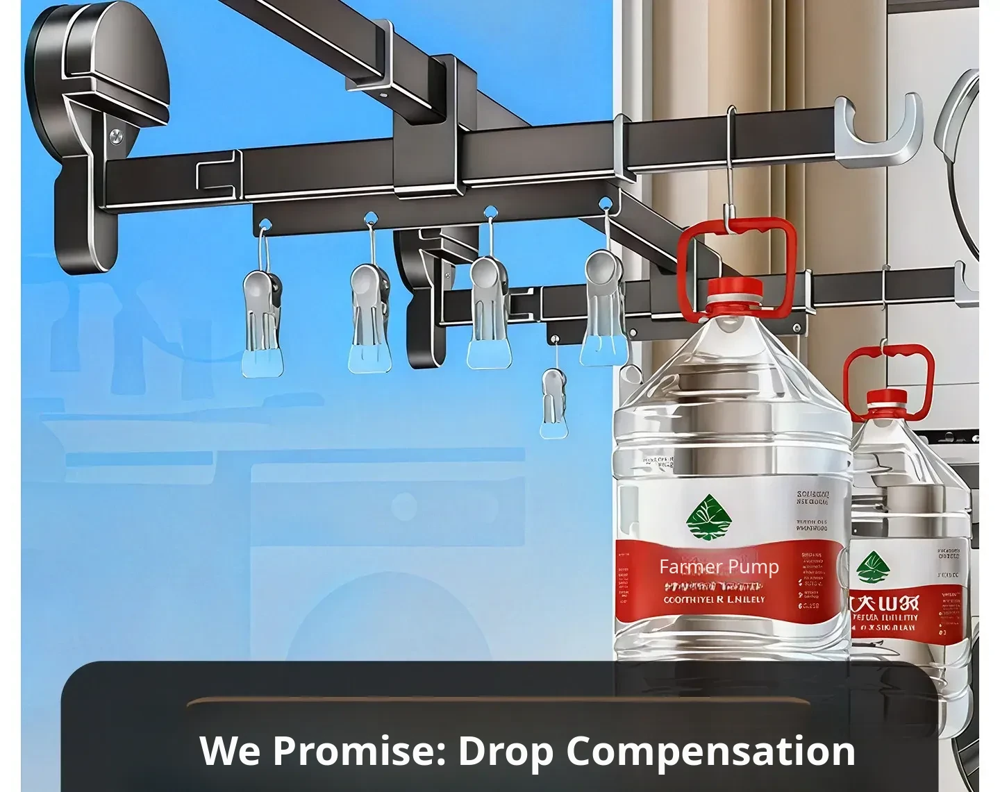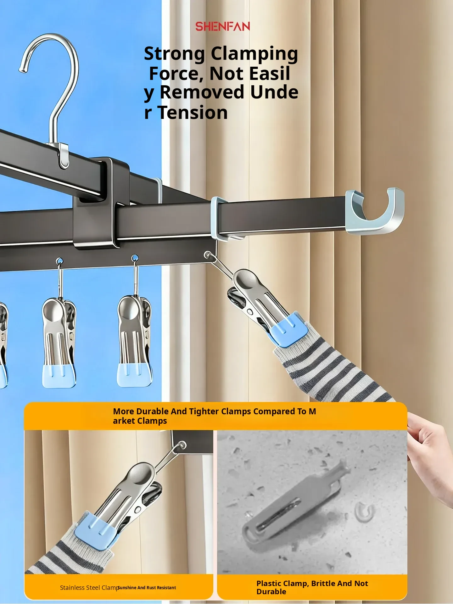 [Gun Ash] Invisible Drying Rack❤With Rod❤24 Clips [Suction Cup Installation]