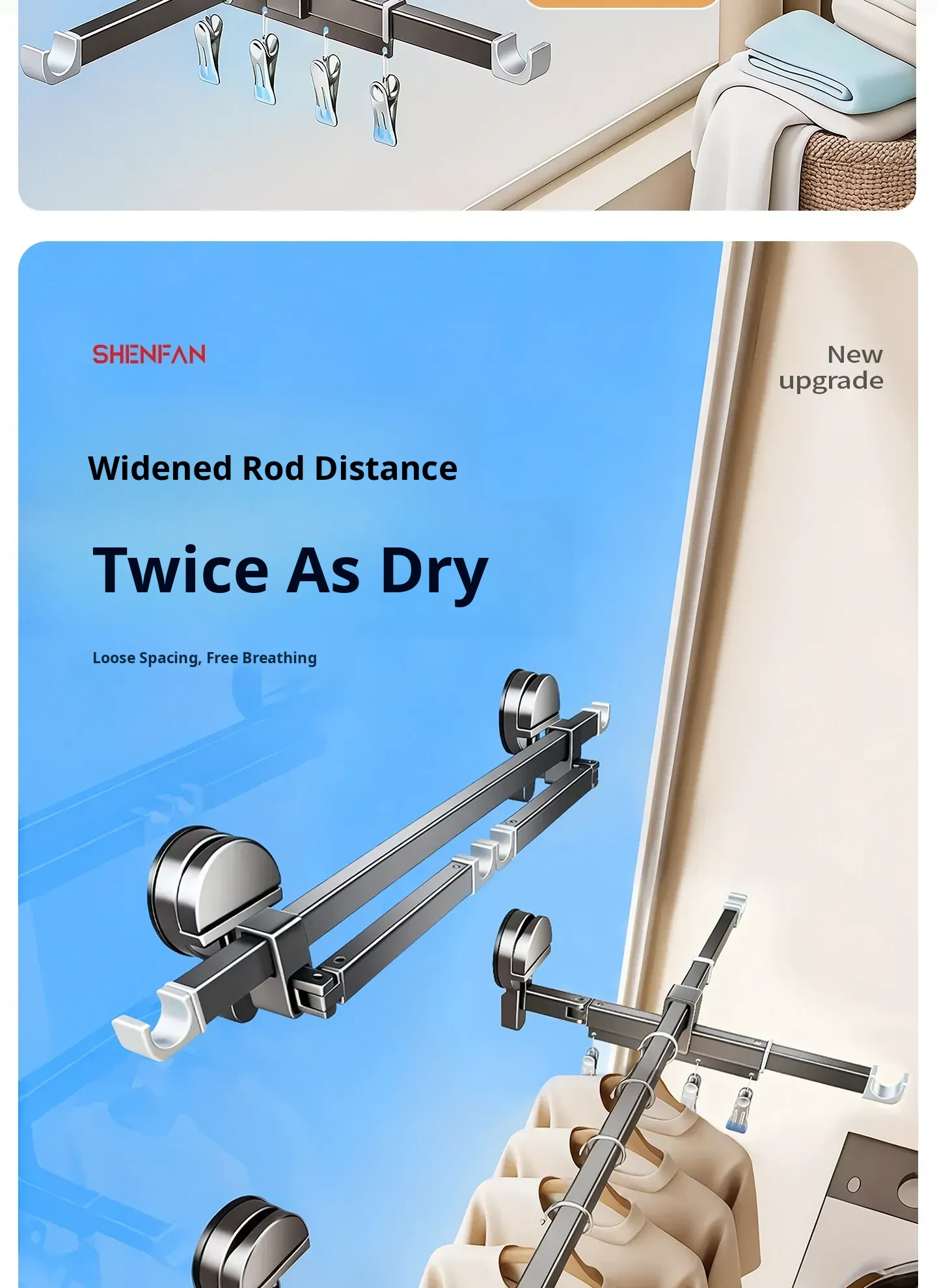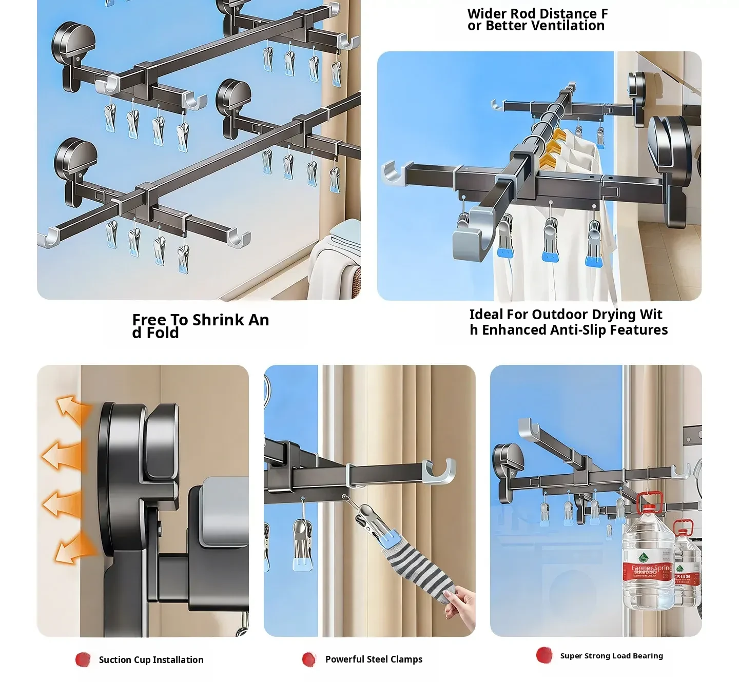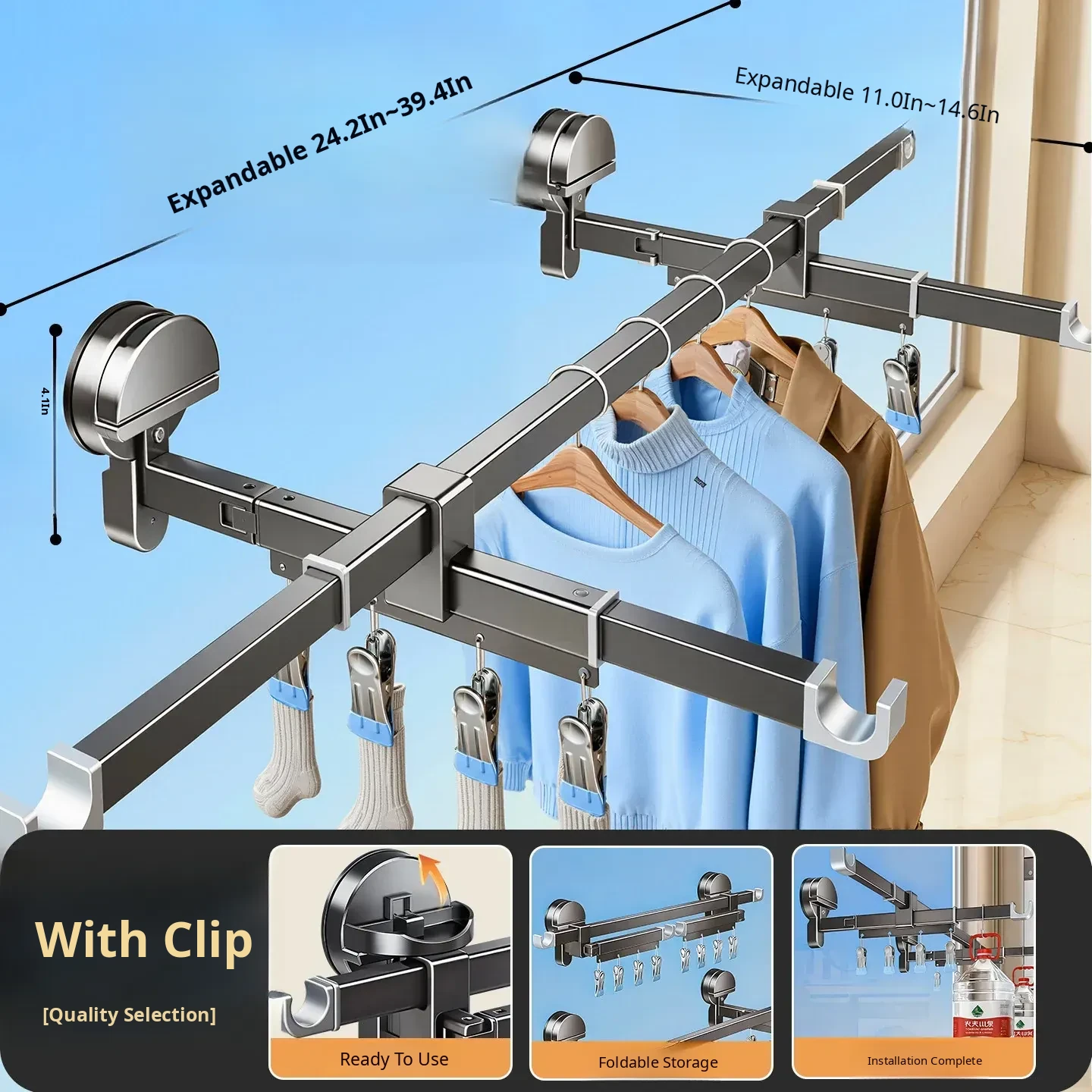 [Gun Ash] Suction Cup Clothes Drying Rack❤With Clip❤[Pole Length 24.61in-39.37in]