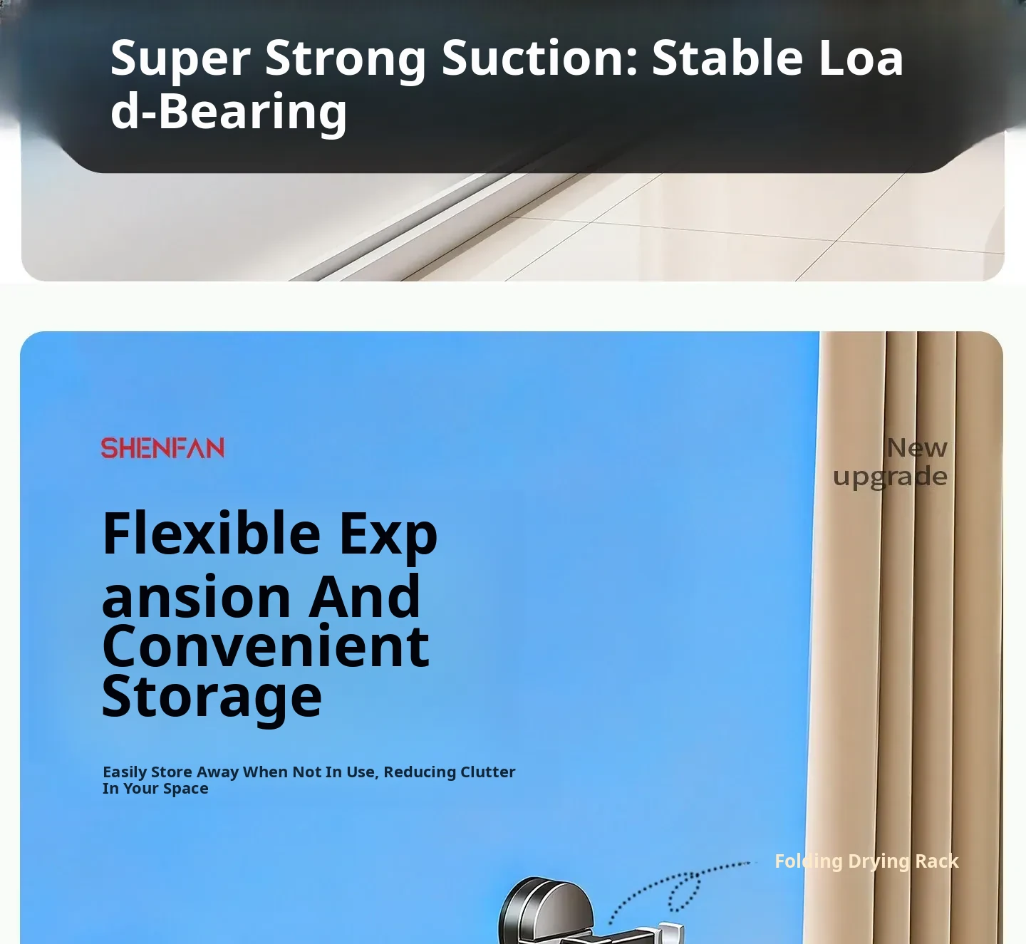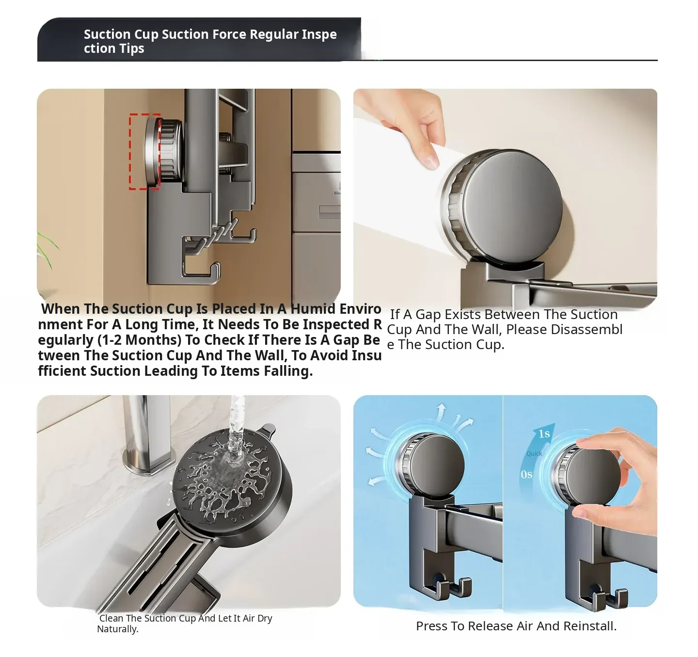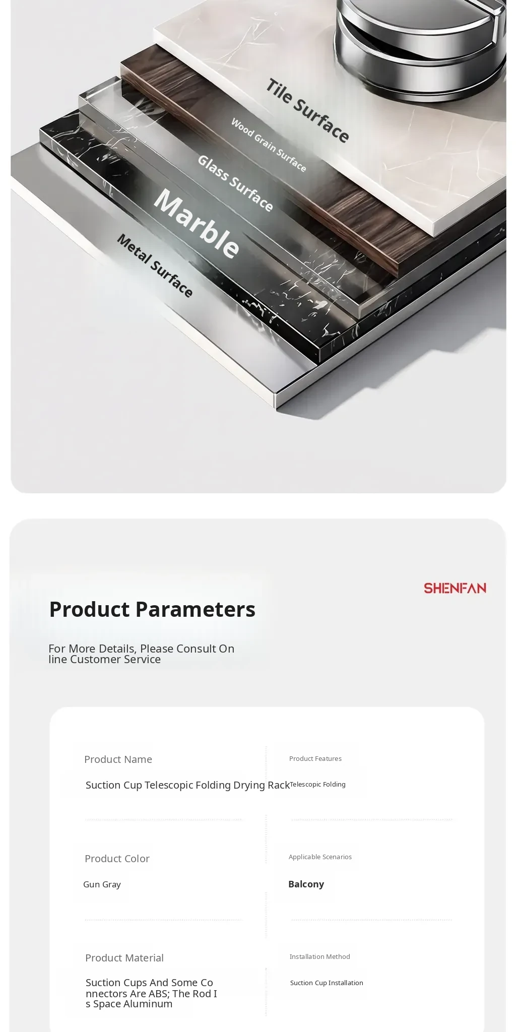 [Gun Ash] Suction Cup Clothes Drying Rack❤With Clip❤[Pole Length 24.61in-39.37in]