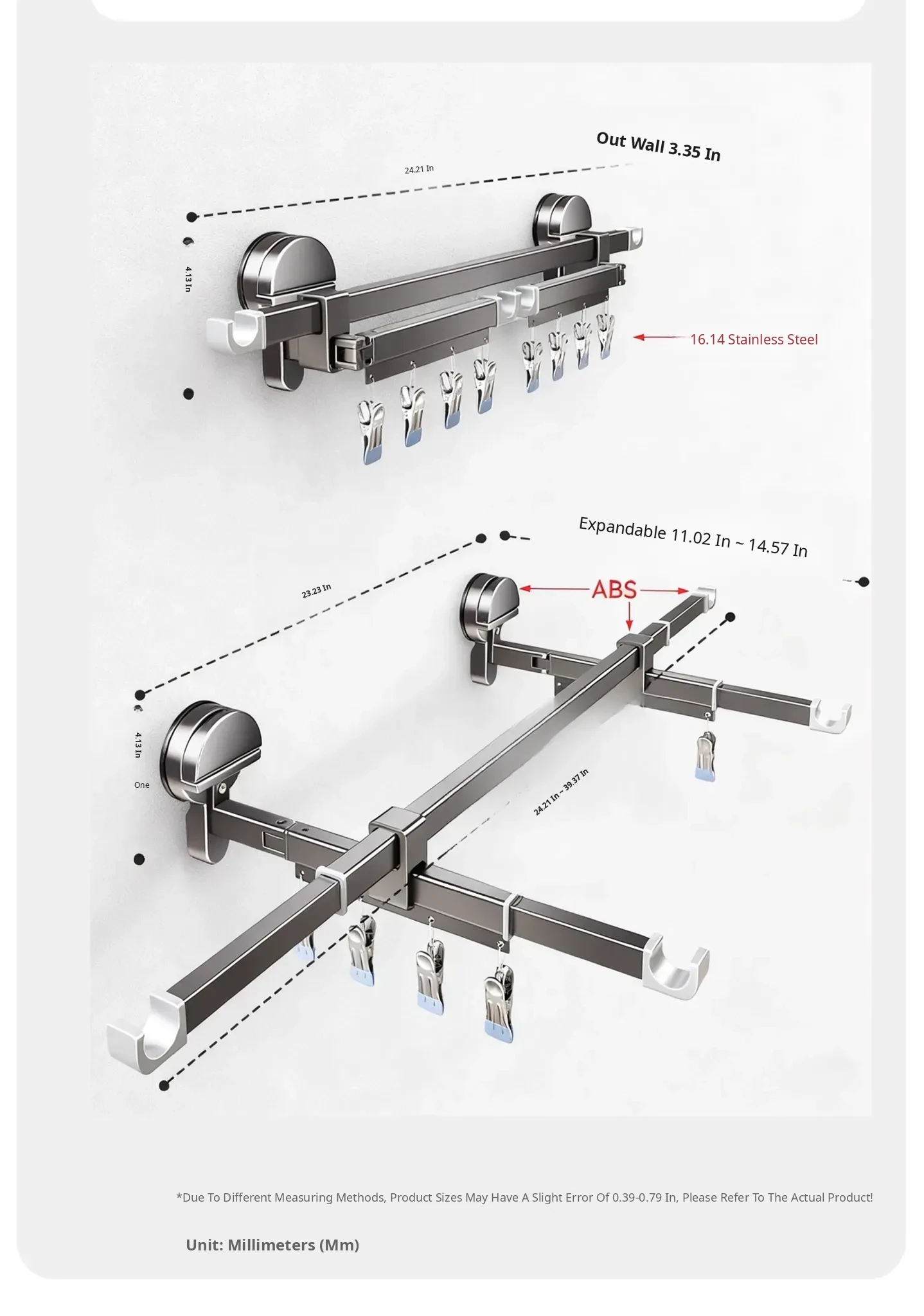 [Gun Ash] Suction Cup Clothes Drying Rack [Rod Length 24.61in-39.37in]