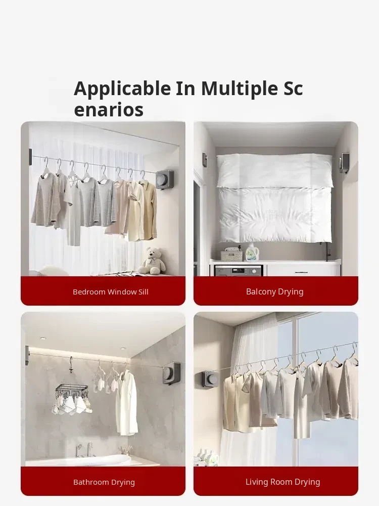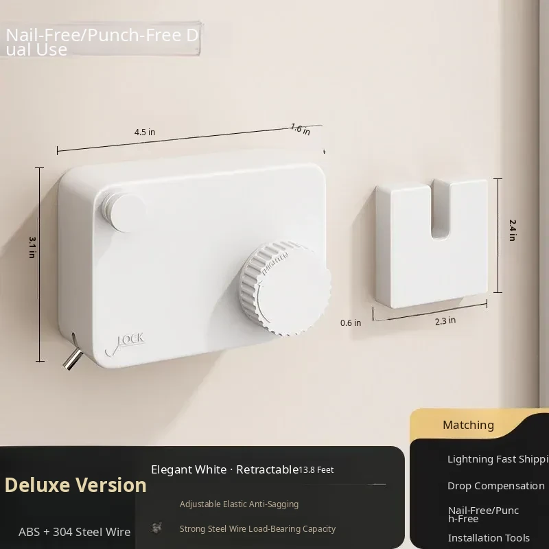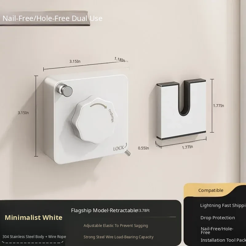 [Elegant White Upgraded Model] Universal for Indoor and Outdoor Use, No Need to Punch Holes, Retractable 165.35in Steel Rope Load-Bearing 20kg