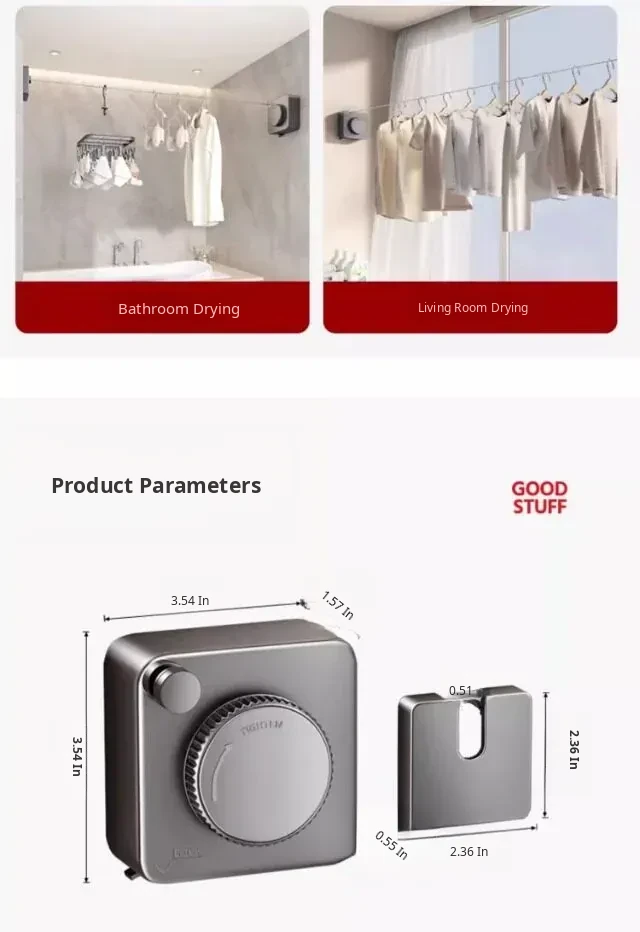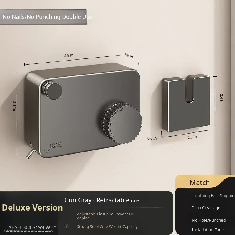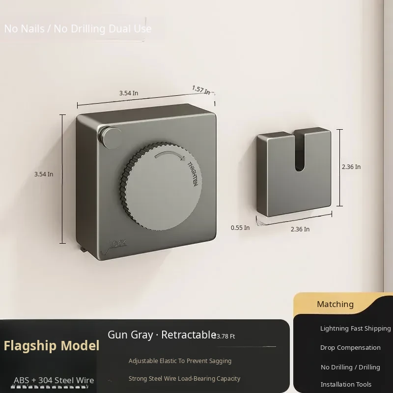 [Gun Ash Flagship Model] Indoor and Outdoor Universal Punch-Free Retractable 165.35in Stainless Steel Rope