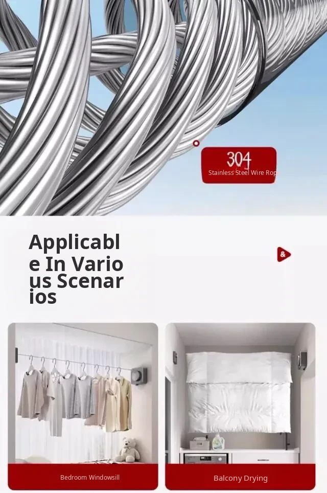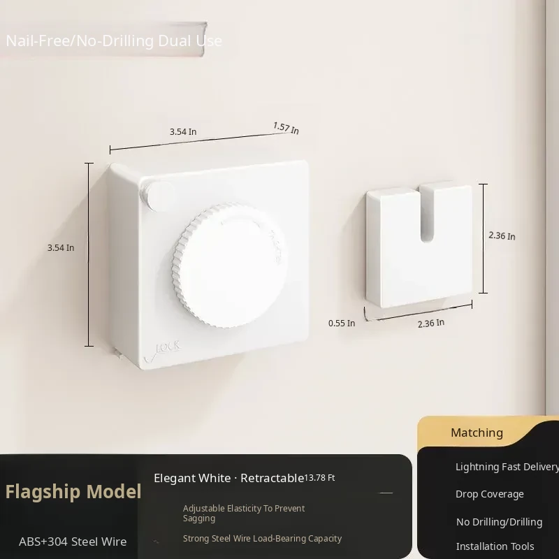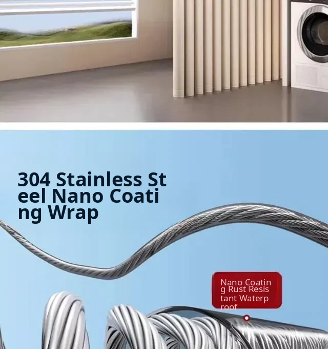 [Ya Bai Flagship Model] Indoor and Outdoor Universal Punch-Free Retractable 165.35in Stainless Steel Rope