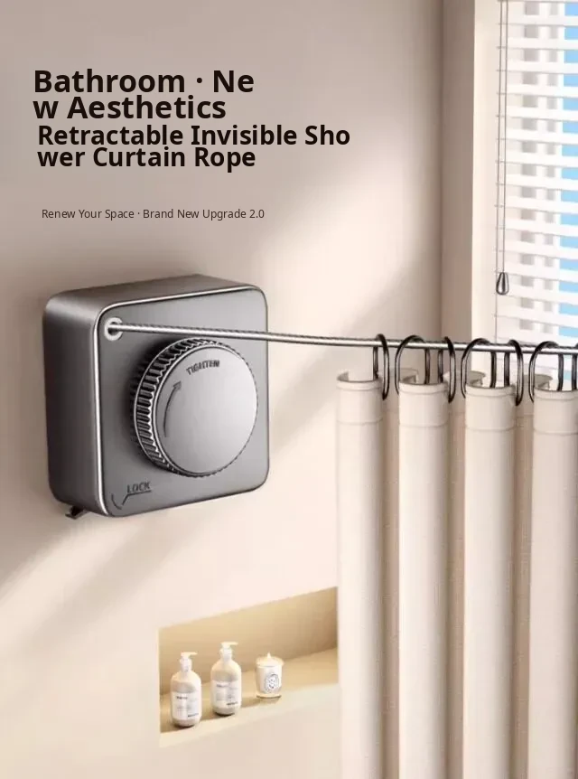 Invisible Shower Curtain Rope - No Drilling Needed, Indoor Use, Elastic Tension Rod for Bathroom, Balcony Steel Wire Clothes Drying Solution, Perfect for a Neat and Stylish Home!