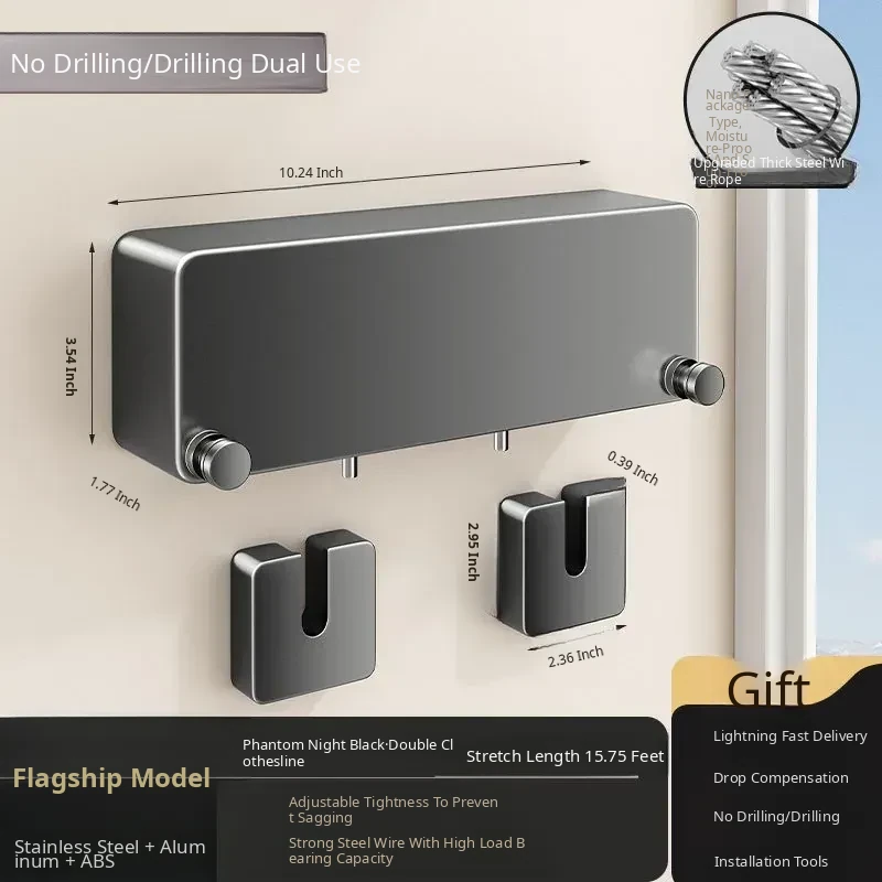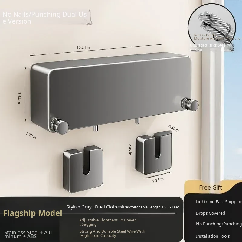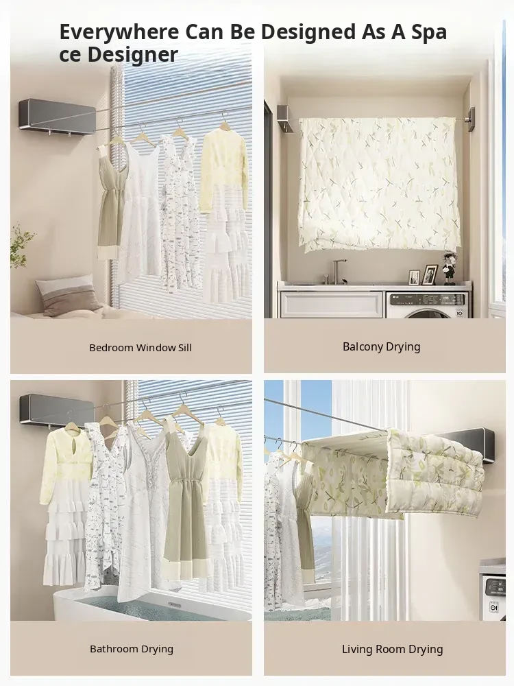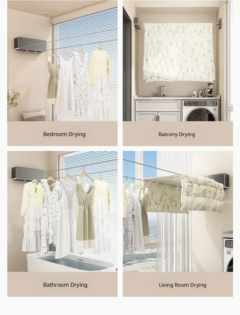 Invisible Wall-Mounted Retractable Clothesline - No Drilling Required, Perfect for Drying Clothes and Quilts at Home, The Ultimate Drying Solution!