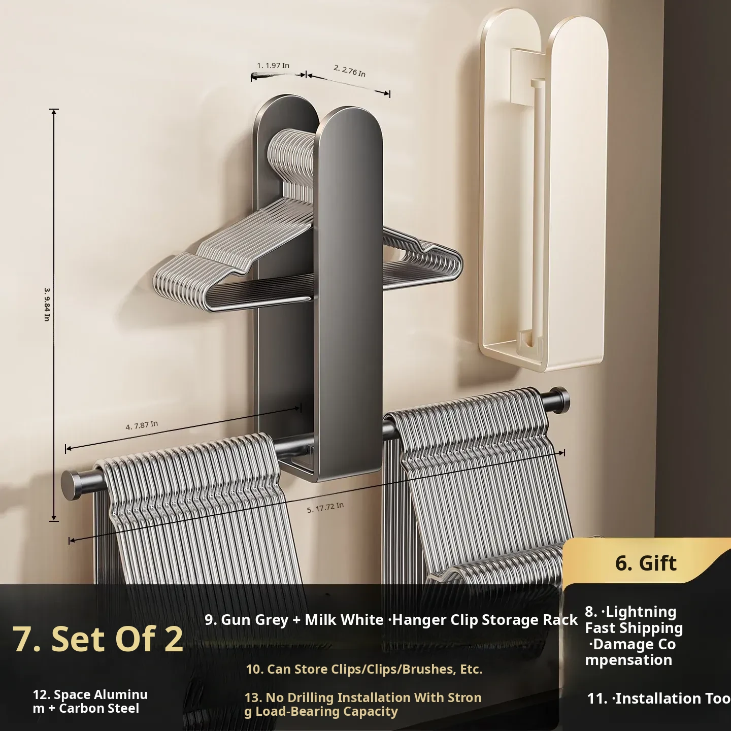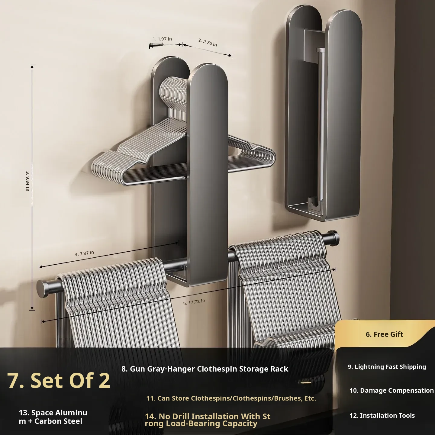 Gun Gray-Multifunctional Clothes Hanger Storage Rack [Foldable] 2 Pack