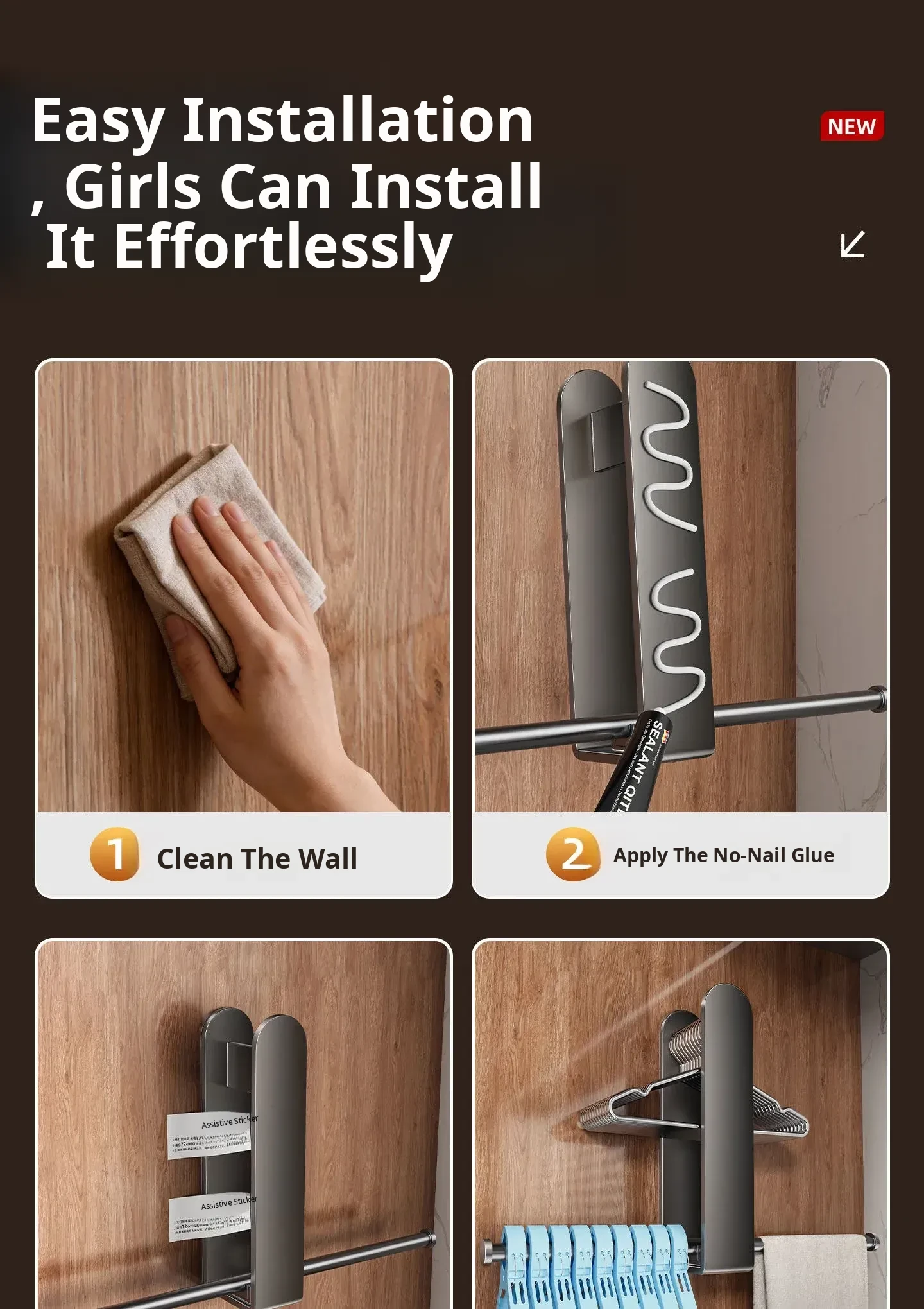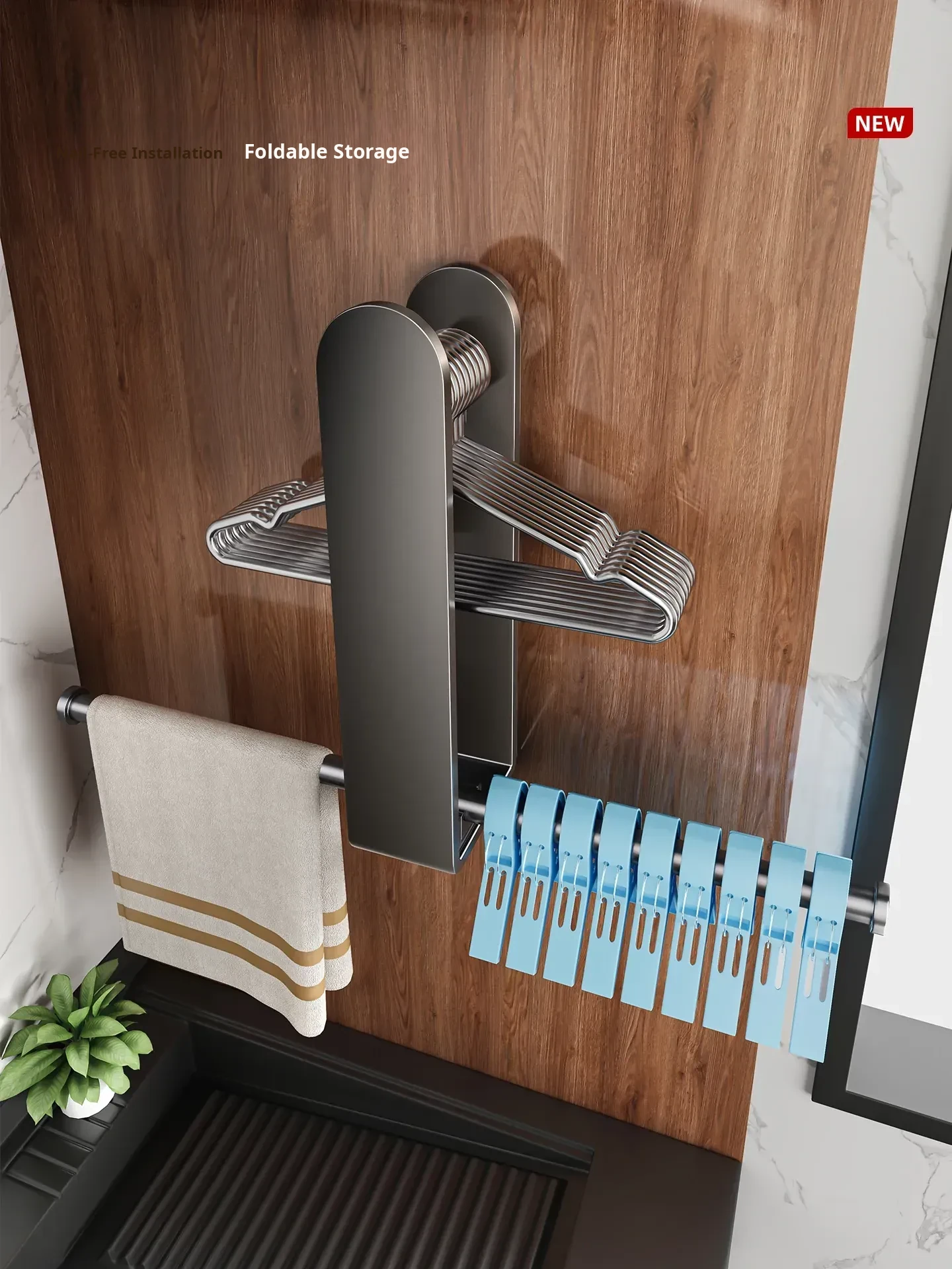Multifunctional Wall-Mounted Clothes Hanger - No Drill, No Trace, Adjustable and Space-Saving Solution for Home and Balcony Storage