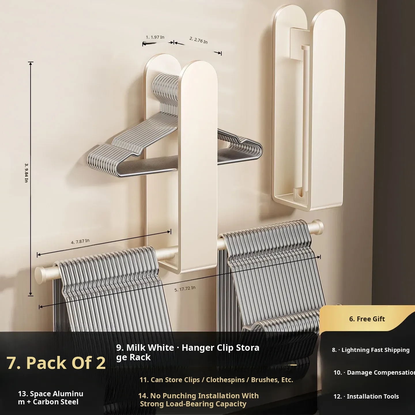 Milky White-Multifunctional Clothes Hanger Storage Rack [Foldable] 2 Pieces