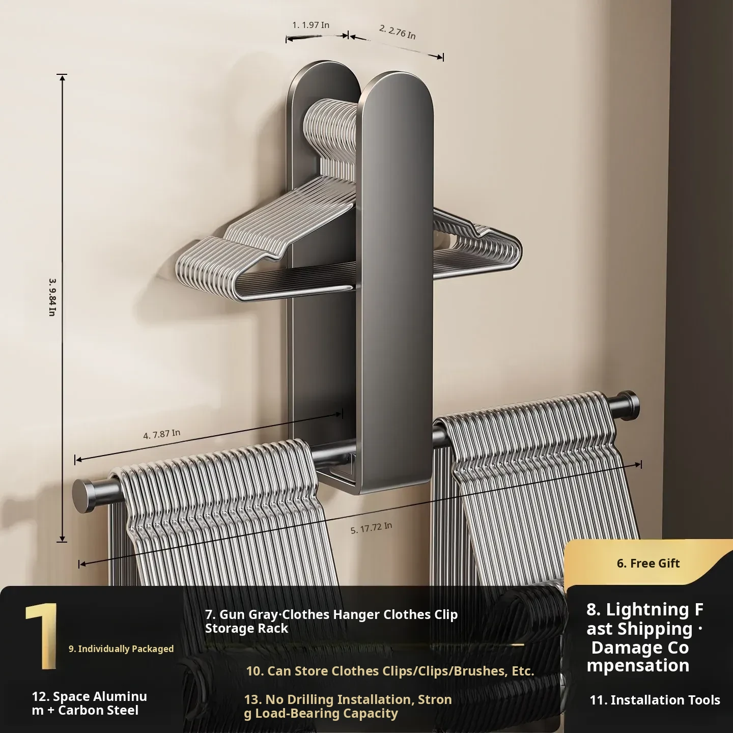 Gun Gray-Multifunctional Clothes Hanger Storage Rack [Foldable]