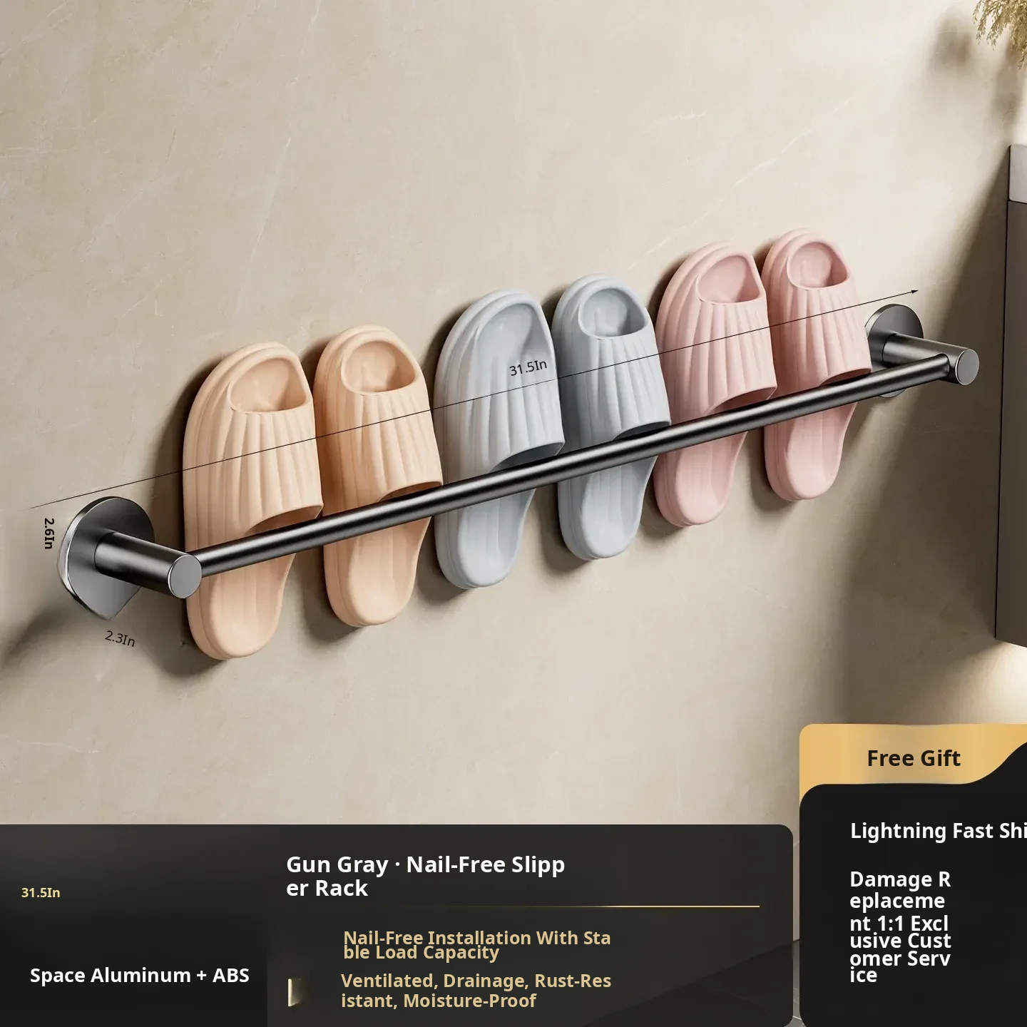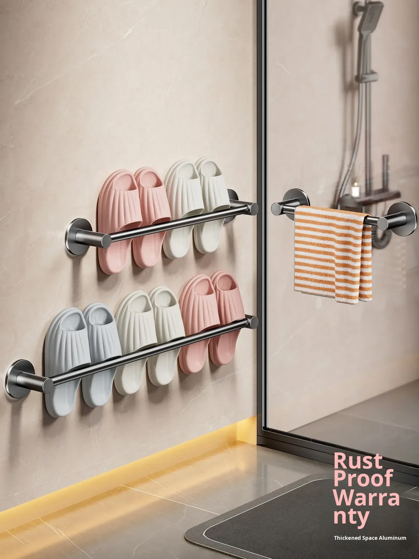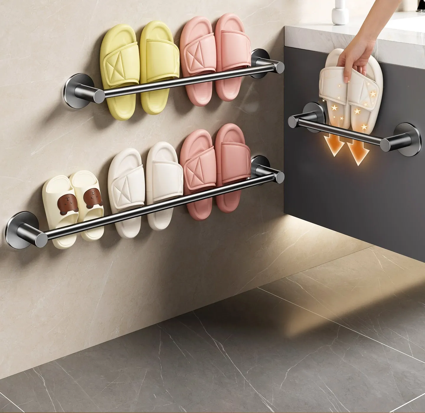 No-Drill Bathroom Slipper Rack - Wall-Mounted Shoe Organizer for Toilets, Space-Saving Storage with Draining Design, Perfect for Behind Door Use