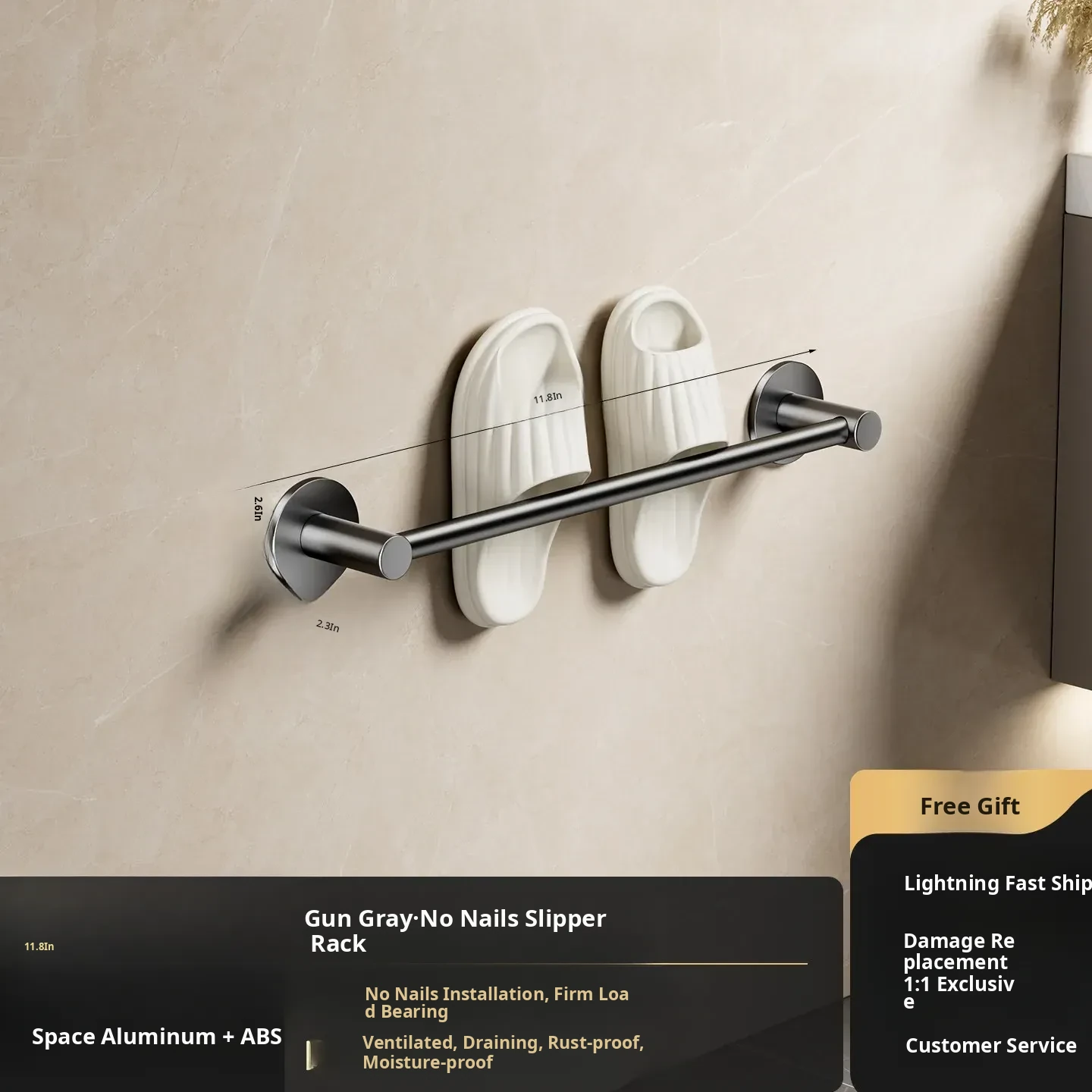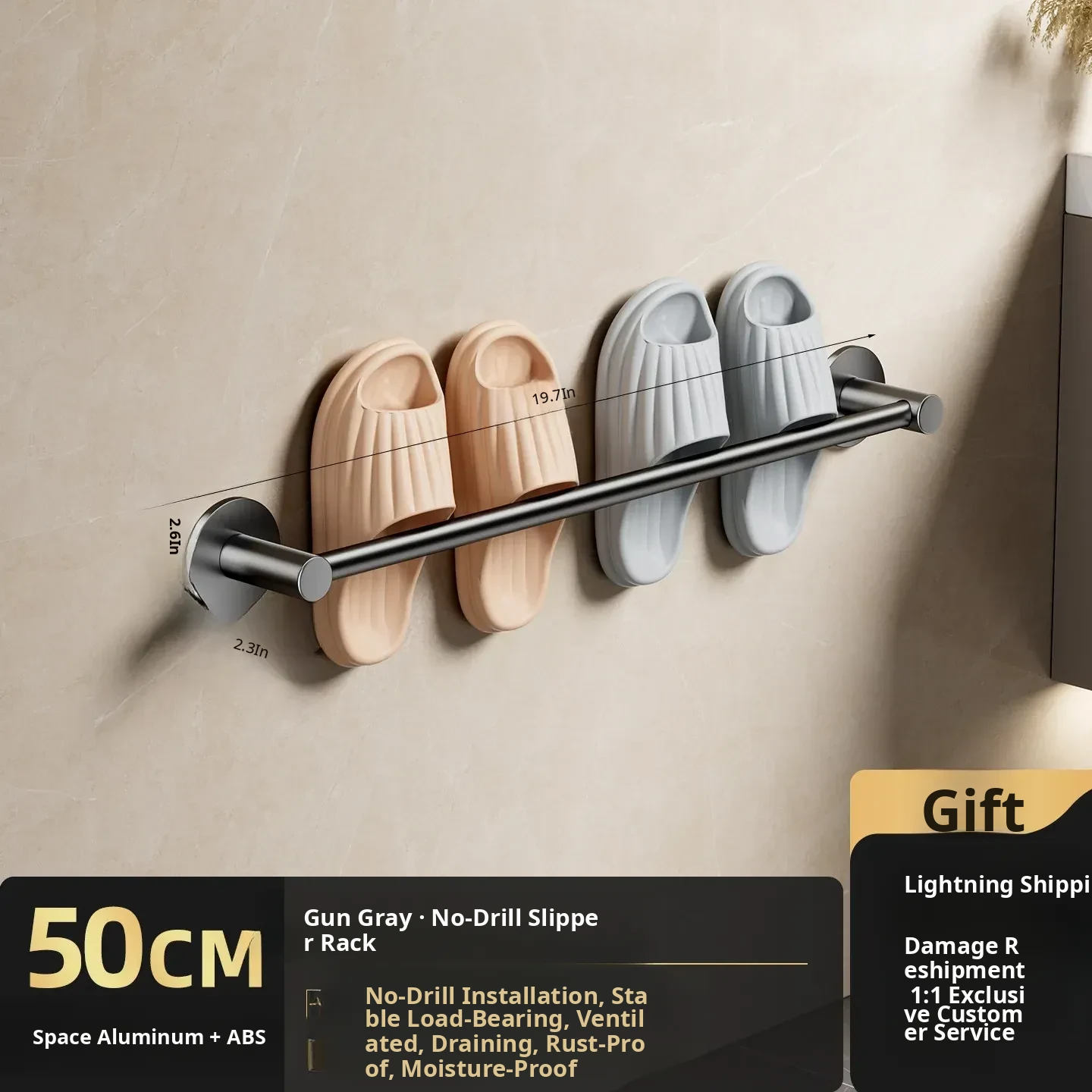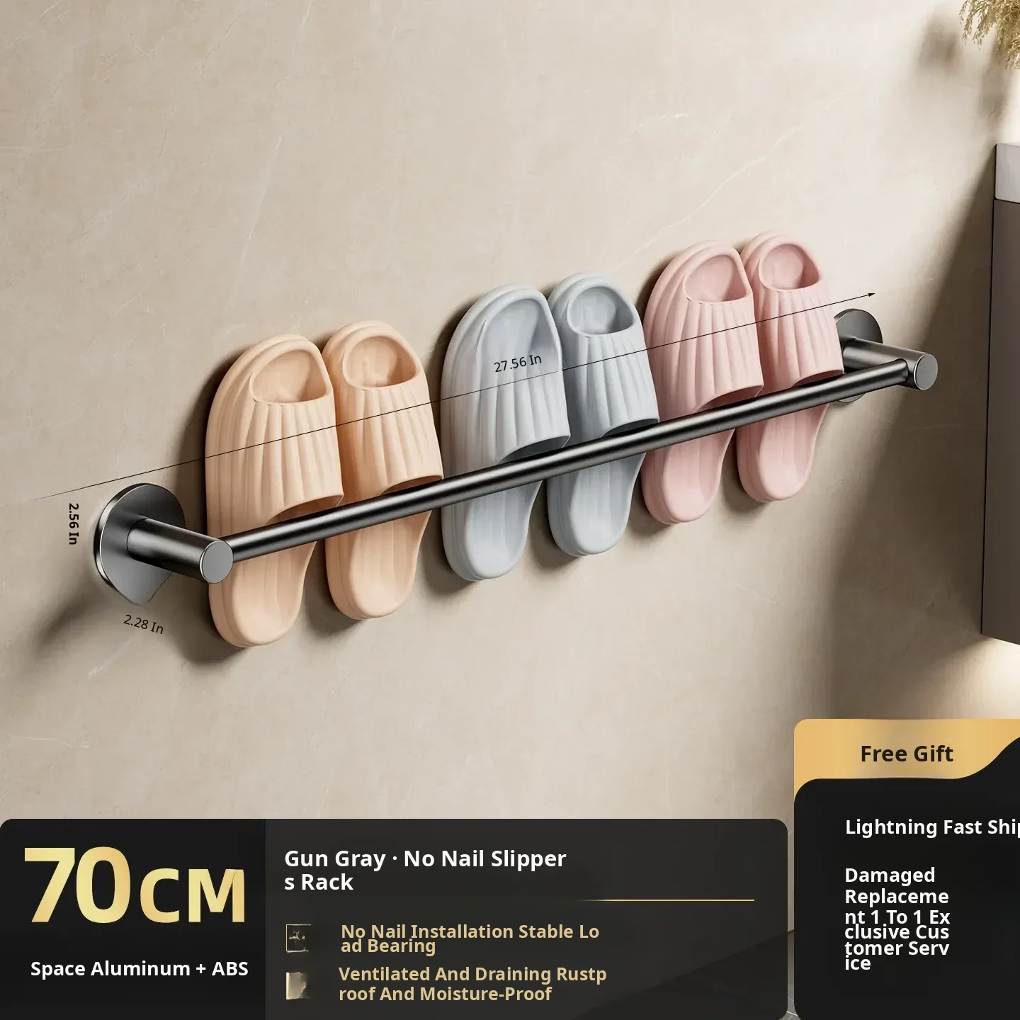 No-Drill Bathroom Slipper Rack - Wall-Mounted Shoe Organizer for Toilets, Space-Saving Storage with Draining Design, Perfect for Behind Door Use