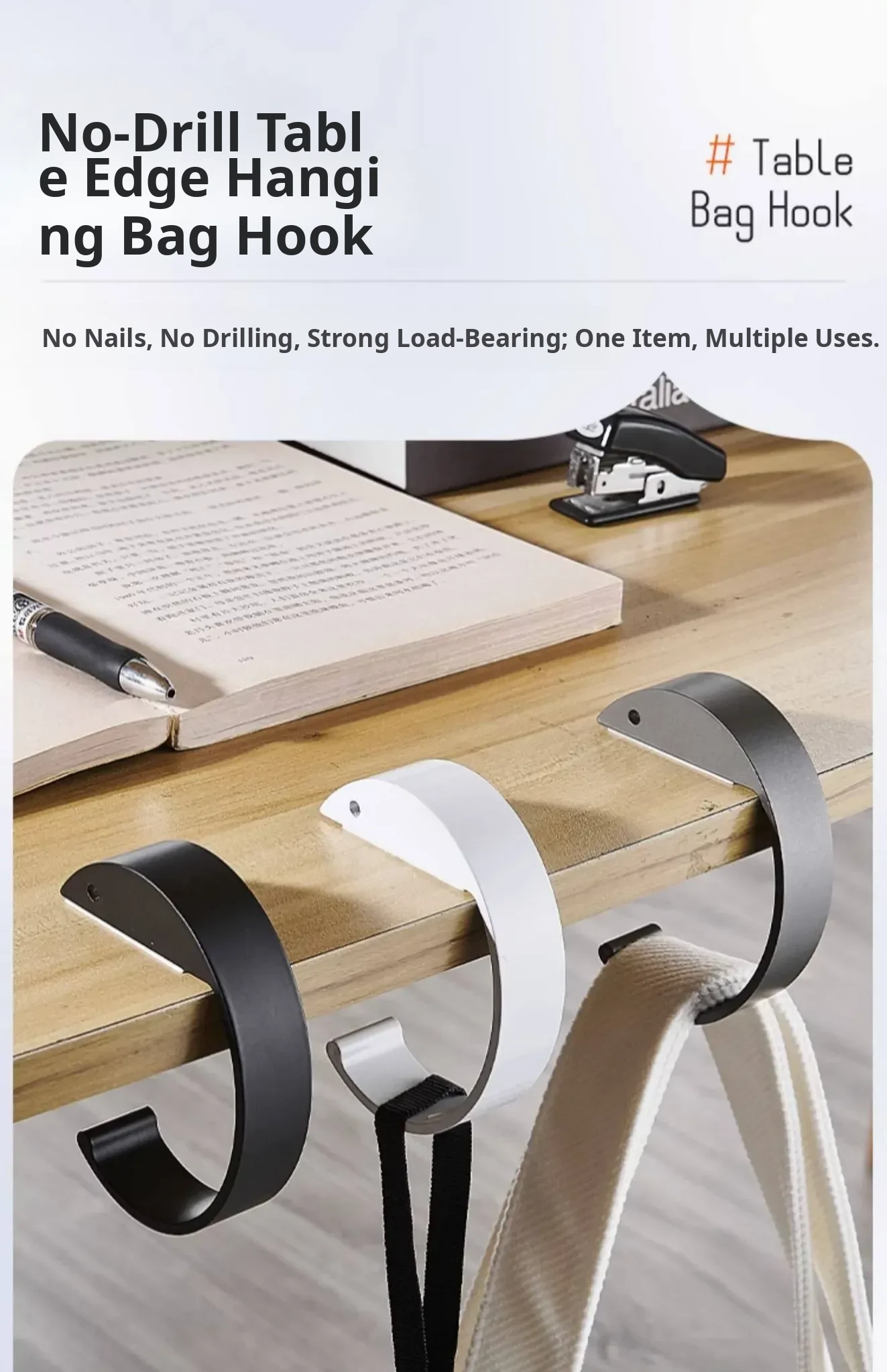 No-Drill Desk Hook for Backpack – Perfect for Students and Offices, Easily Attaches to Side of Desks and Tables – Keep Your Space Organized and Clutter-Free!
