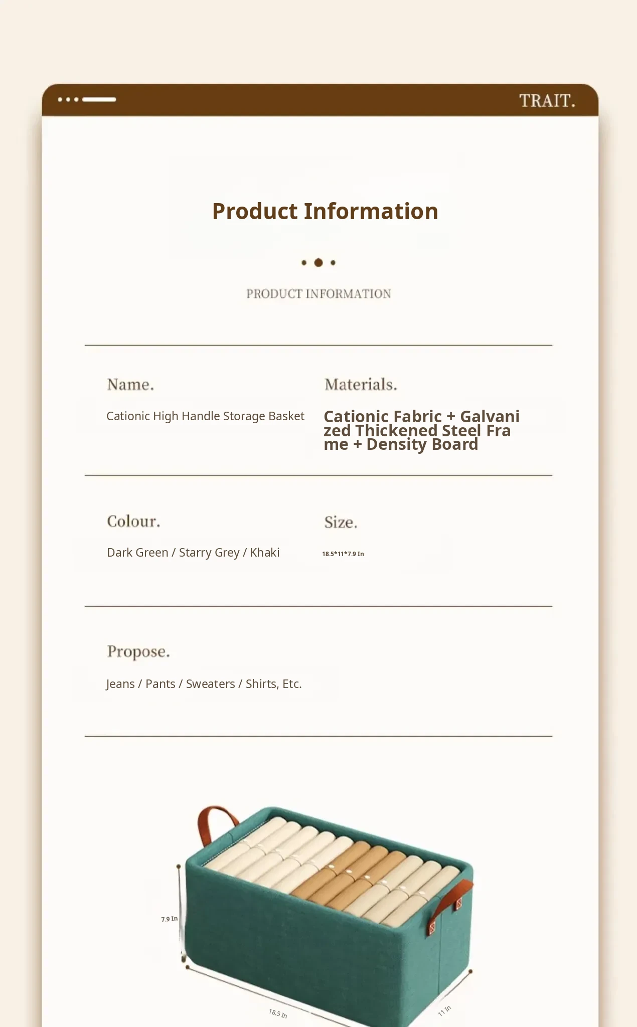 Single Unit - No Lid - 18.50in*11.02in*7.87in [Thickened Fabric | Reinforced Steel Frame | Moisture & Mildew Resistant]