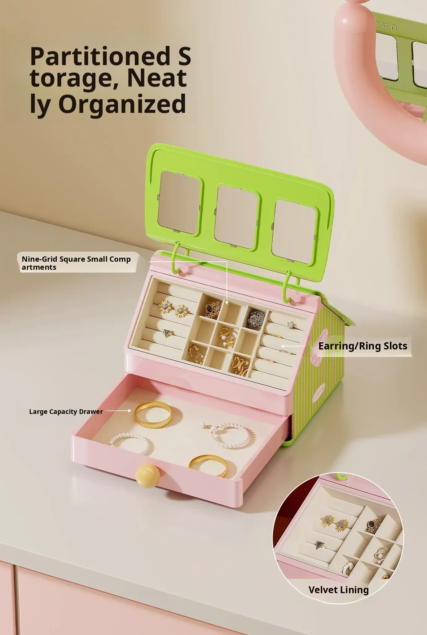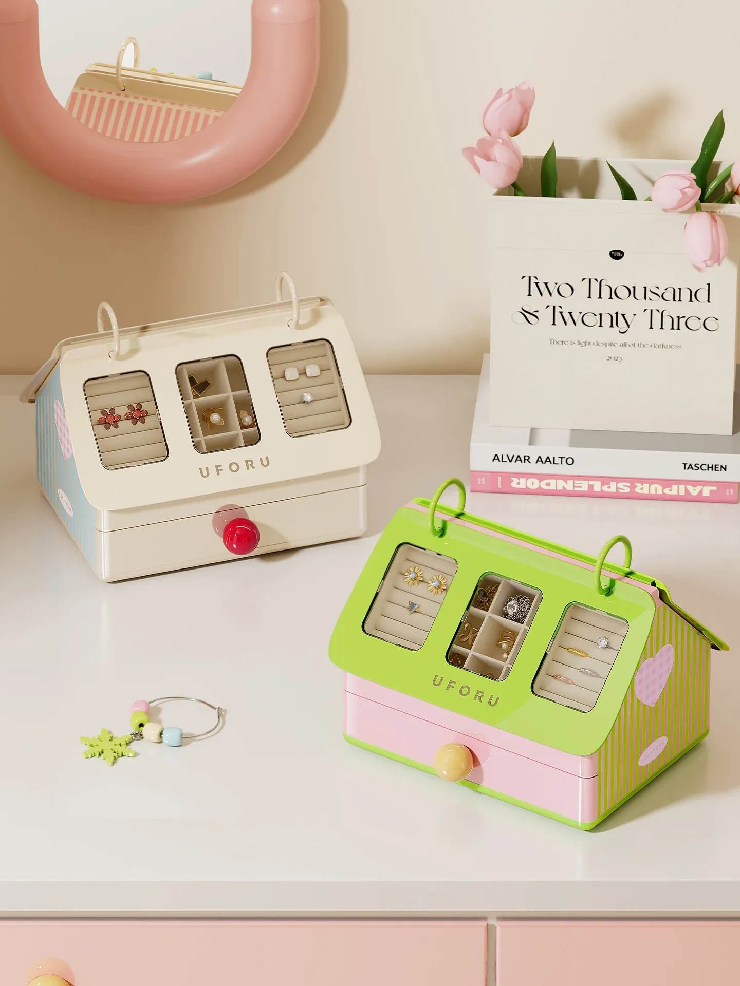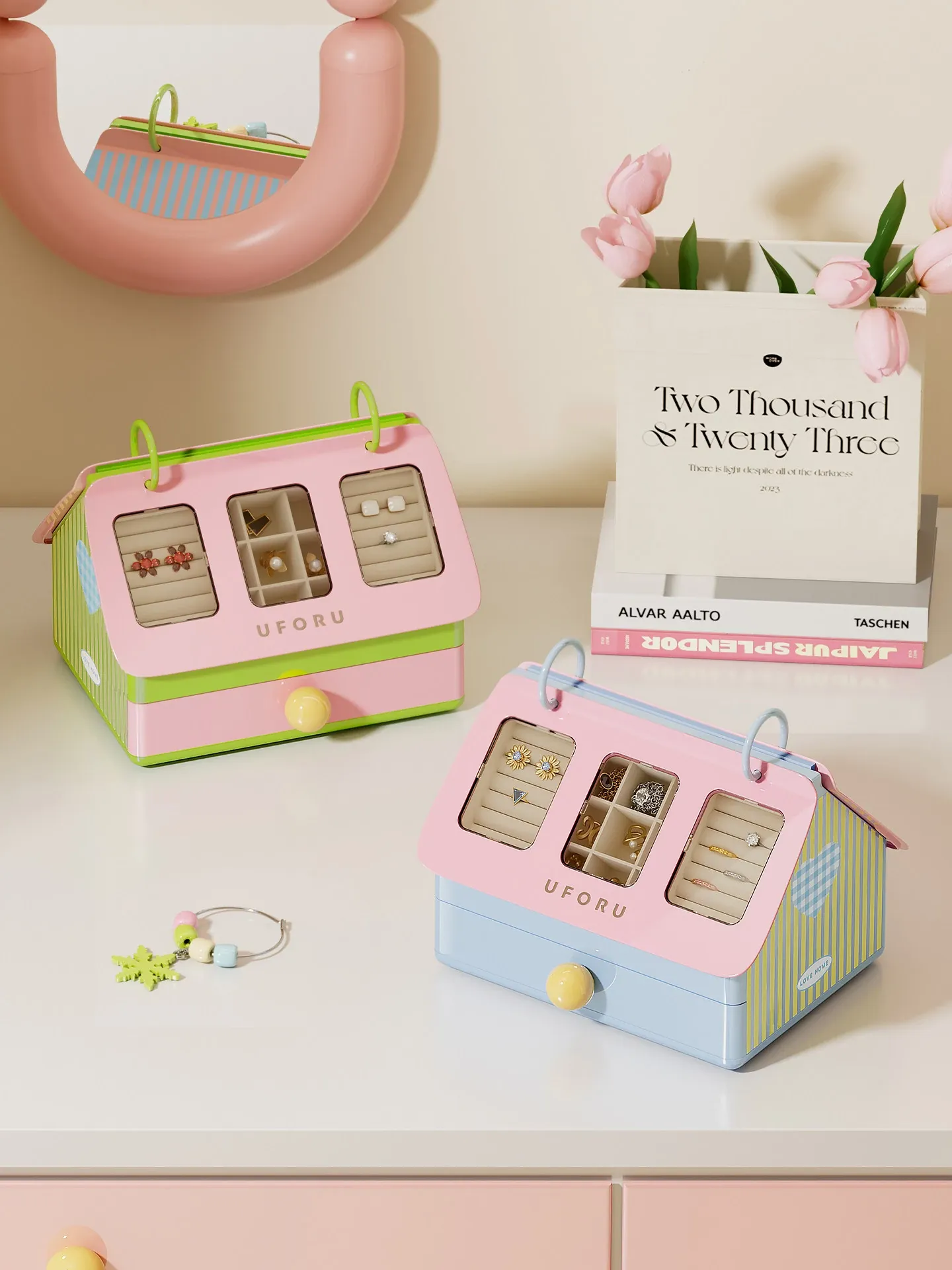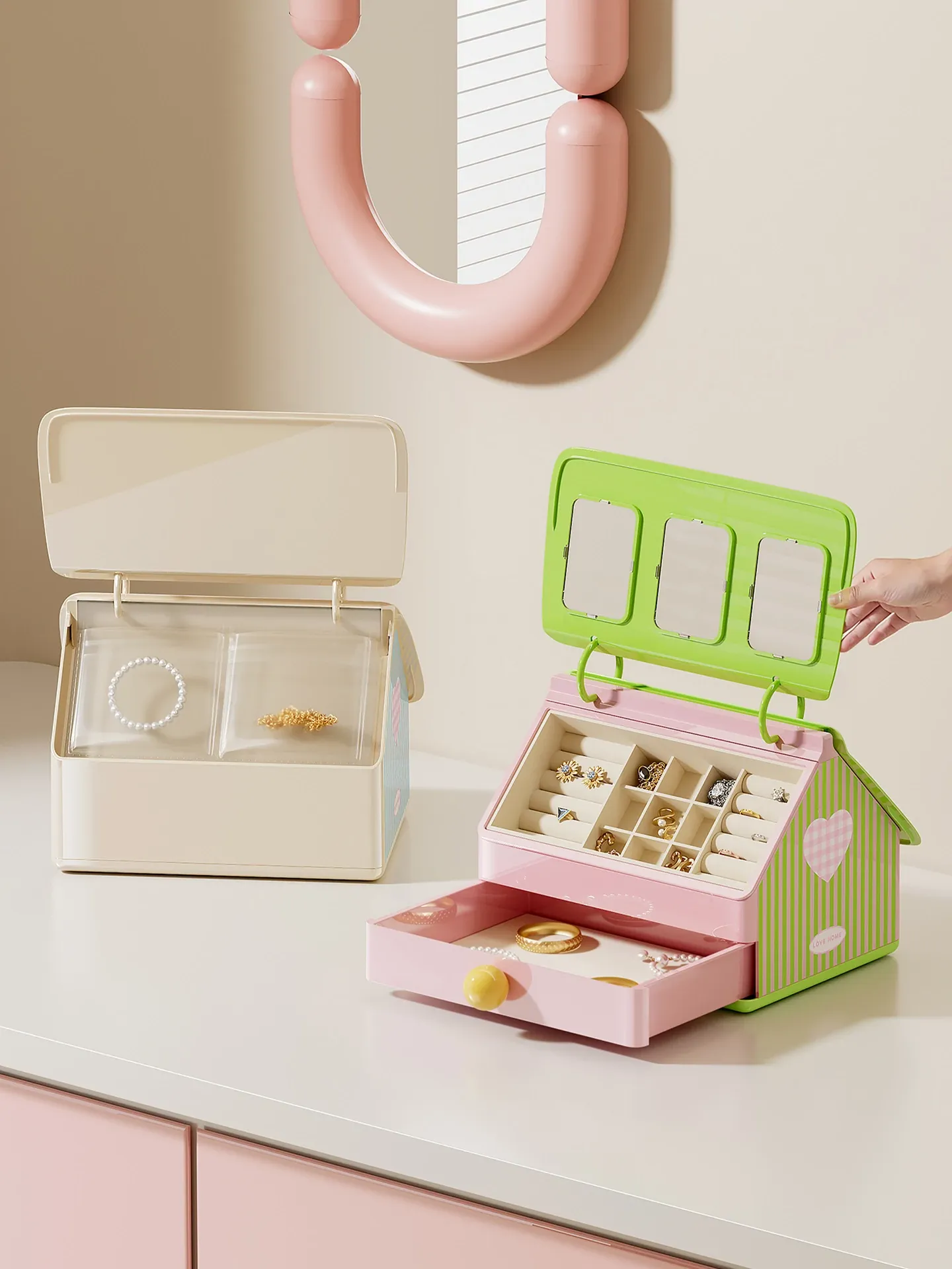 PENGFEI Premium Jewelry Organizer Box - Elegant and Creative Large Capacity Storage for Earrings, Gold, and Jewelry - Stylish Desktop Accessory Organizer