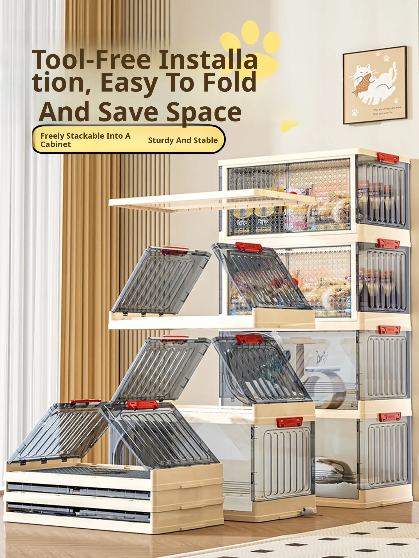 Pongfei Pet Cat Bed - Versatile All-Season Creative Design with Integrated Toy and Snack Storage, Large Capacity, Foldable Organizer