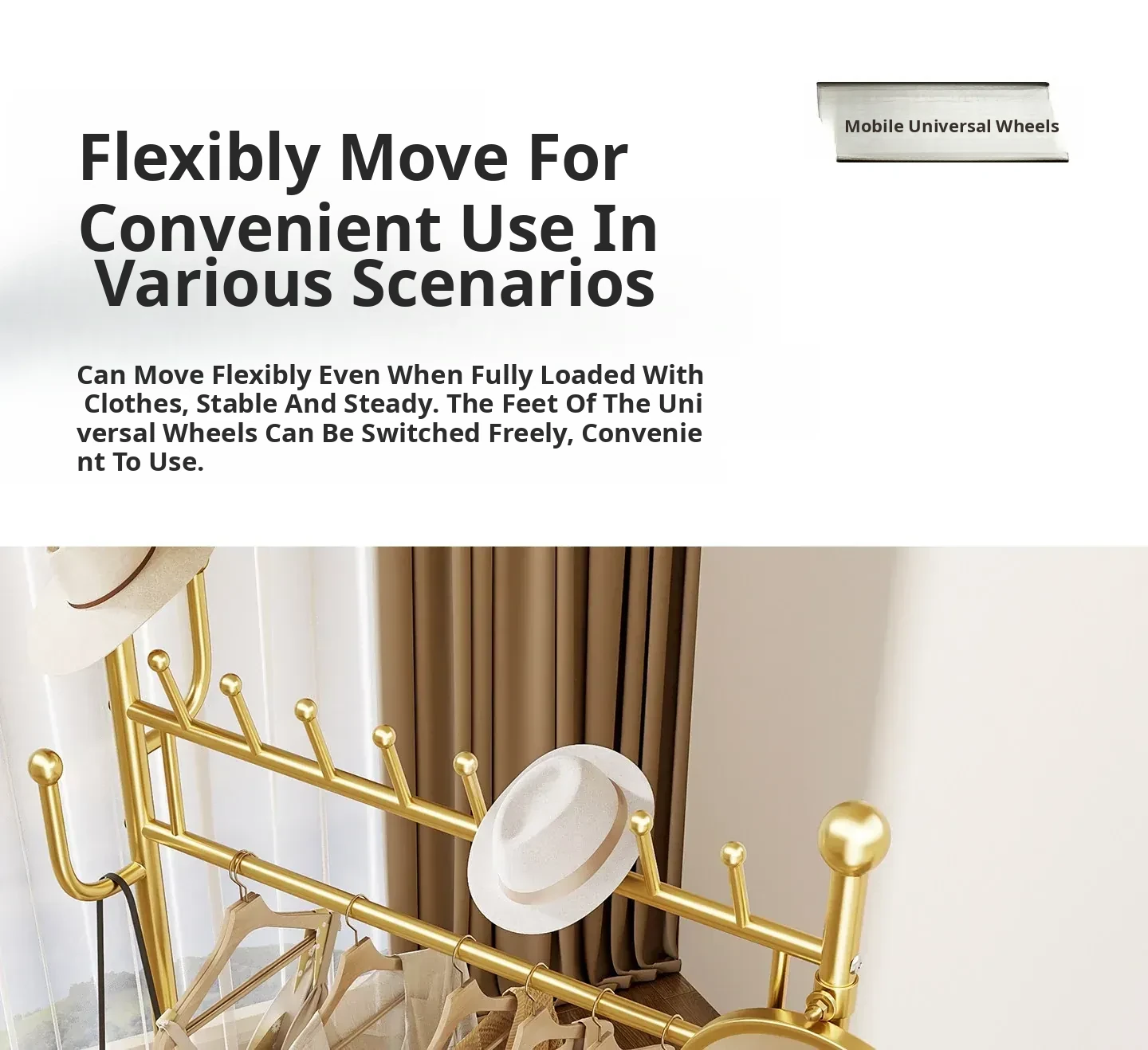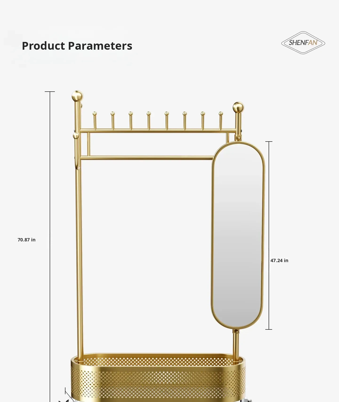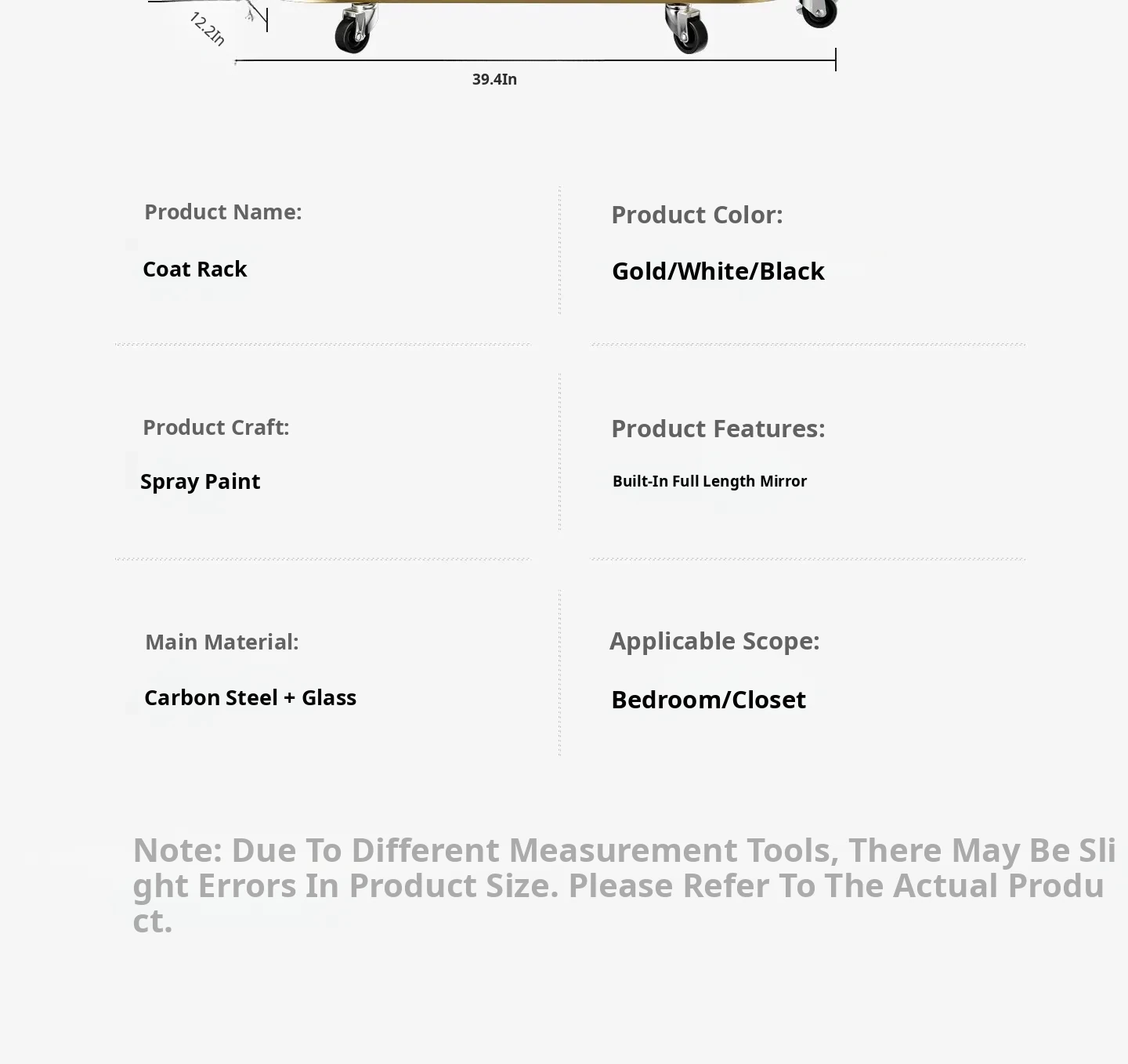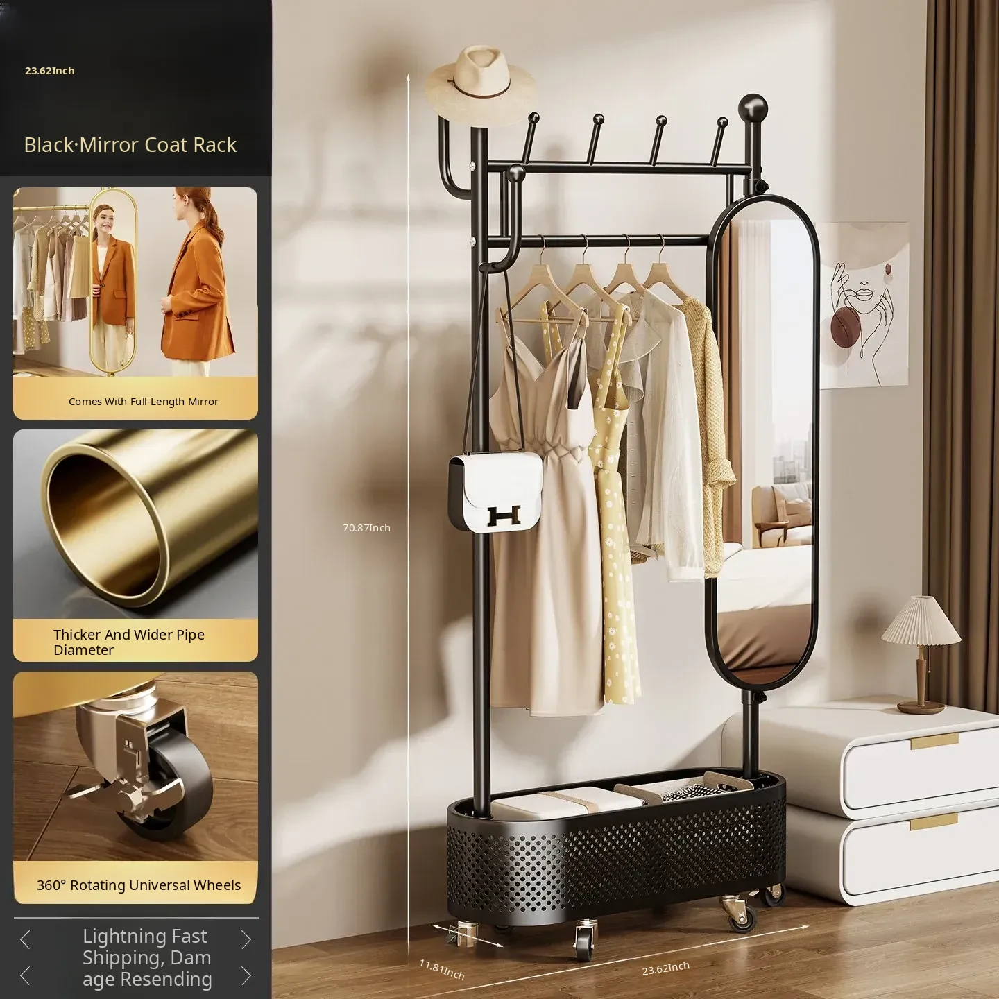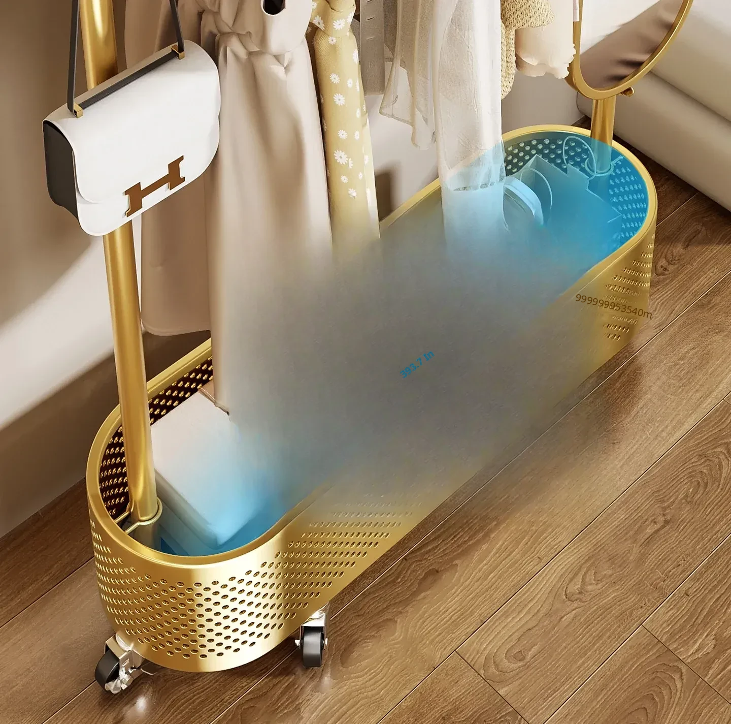 Large Light Luxury Gold 39.37in [Rotatable Mirror-Large Storage Basket-Swivel Wheels]