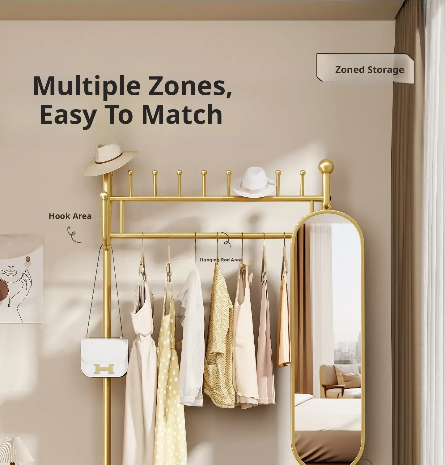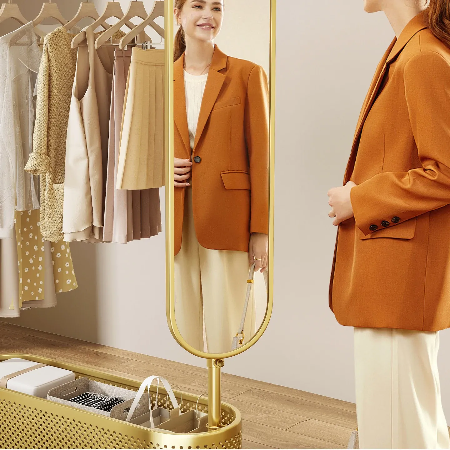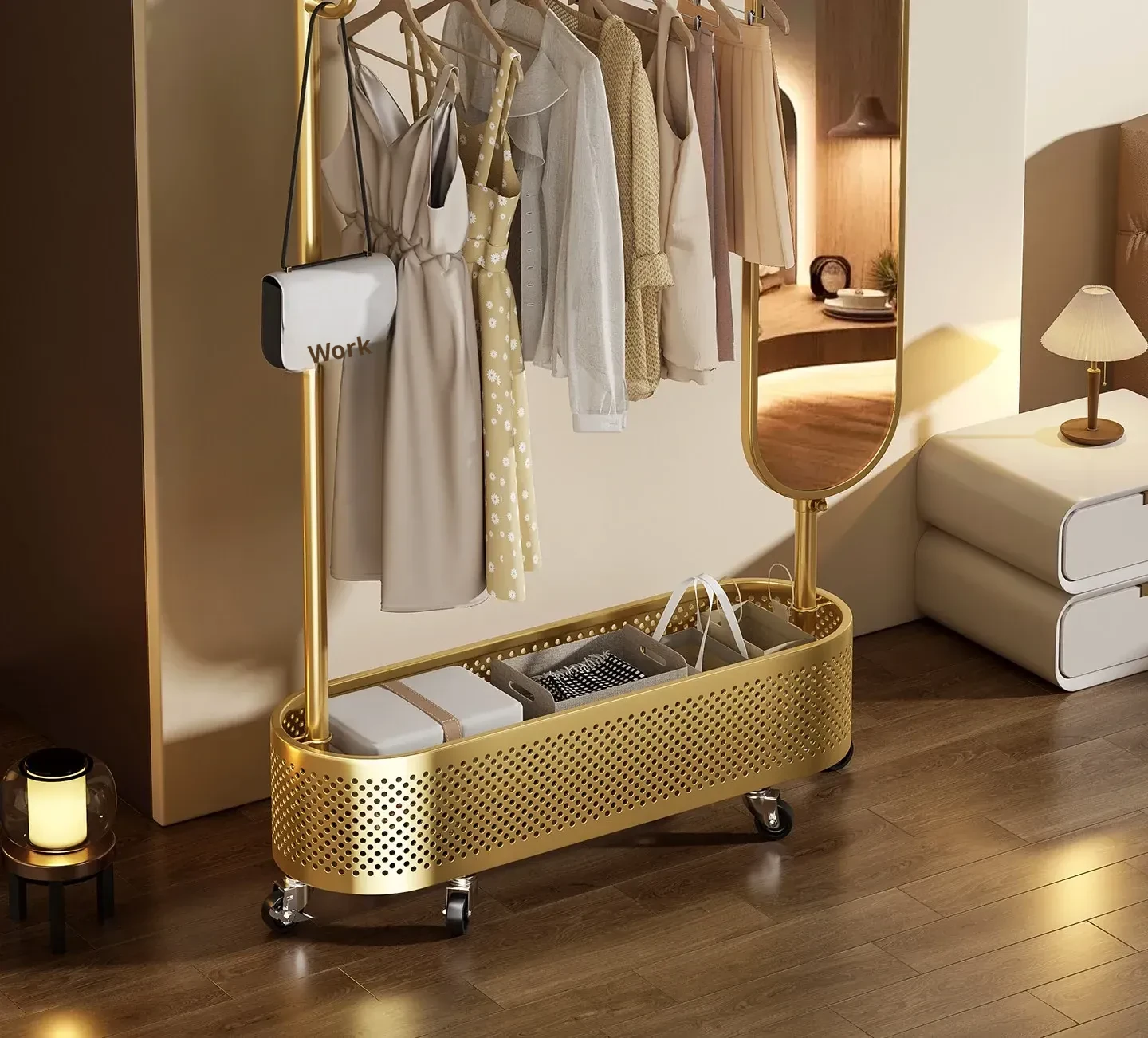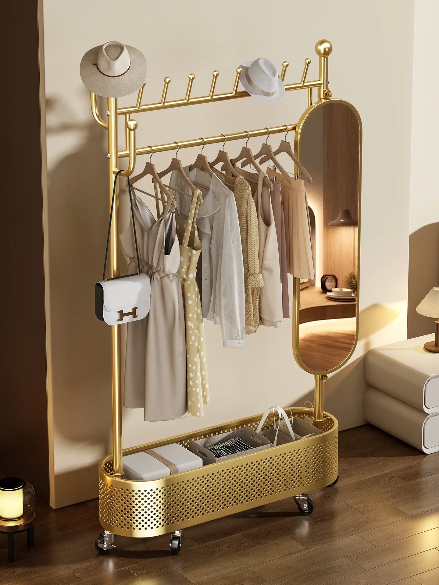 Portable Floor-Standing Clothes Rack with Mirror – Stylish and Functional Wardrobe Organizer for Bedroom, Ideal for Easy Outfit Changes at Home!