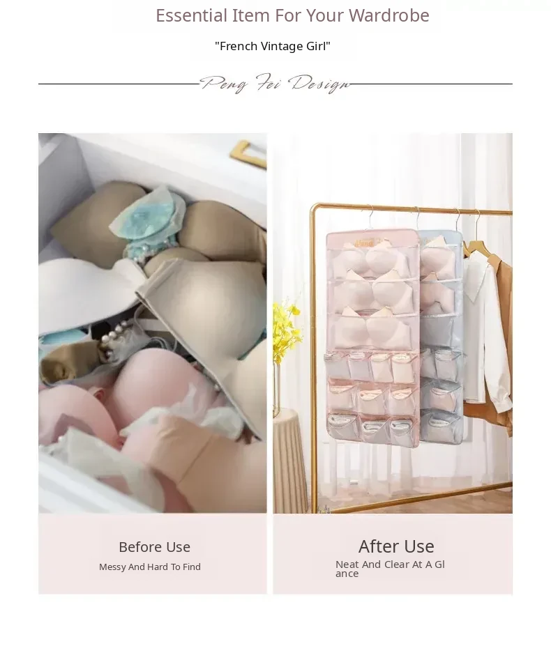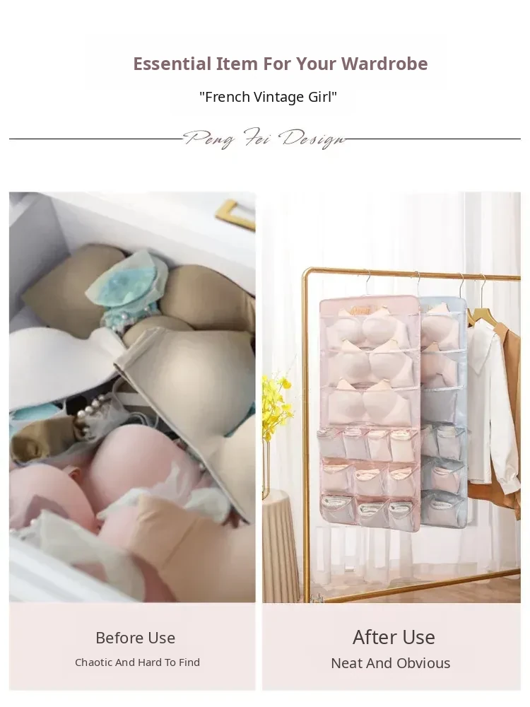Revolutionary Hanging Storage Bag for Underwear - Dual-Sided Organizer for Dormitory Wardrobes, Perfect for Bras, Socks, and Panties. Keep Your Home Tidy and Stylish!