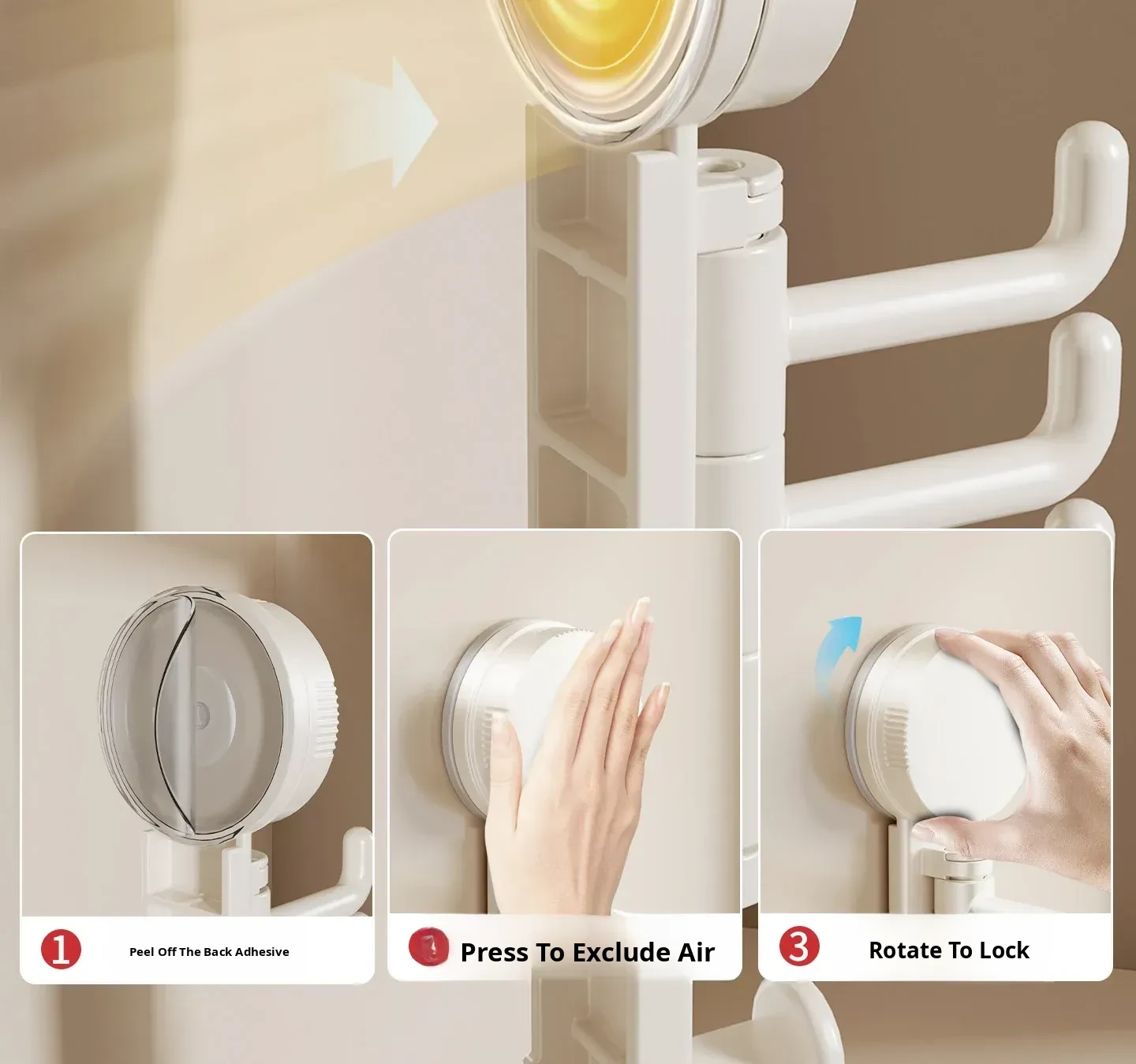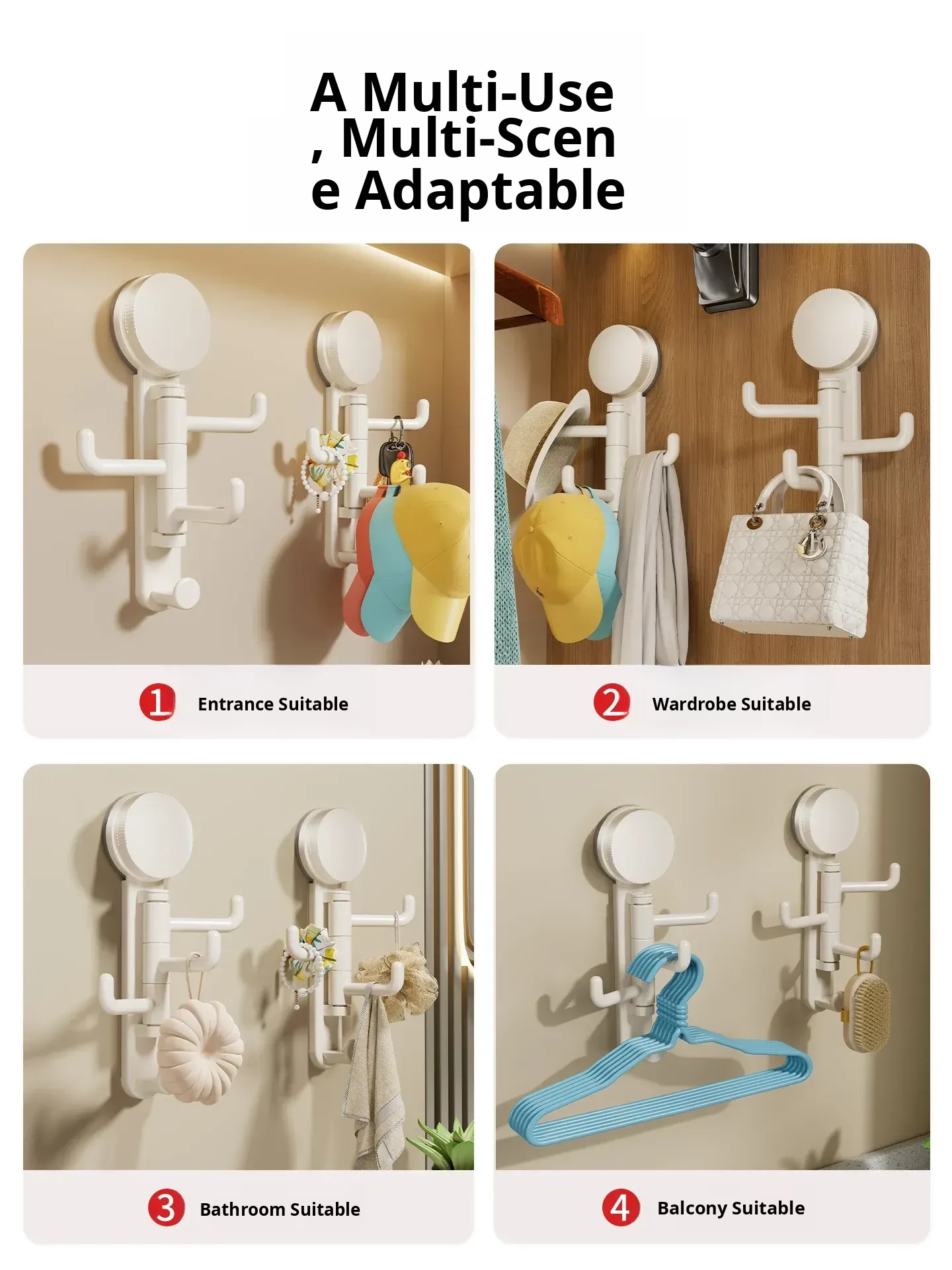 Rotating Suction Cup Hooks for Entryway - No Drilling Required, Heavy-Duty Storage for Hats, Bracelets, Keys, and Bathroom Organizers - Keep Your Space Tidy and Stylish!