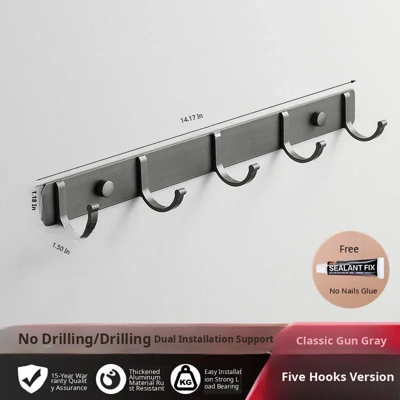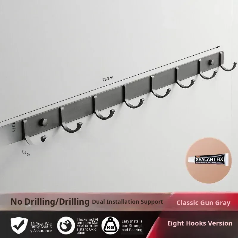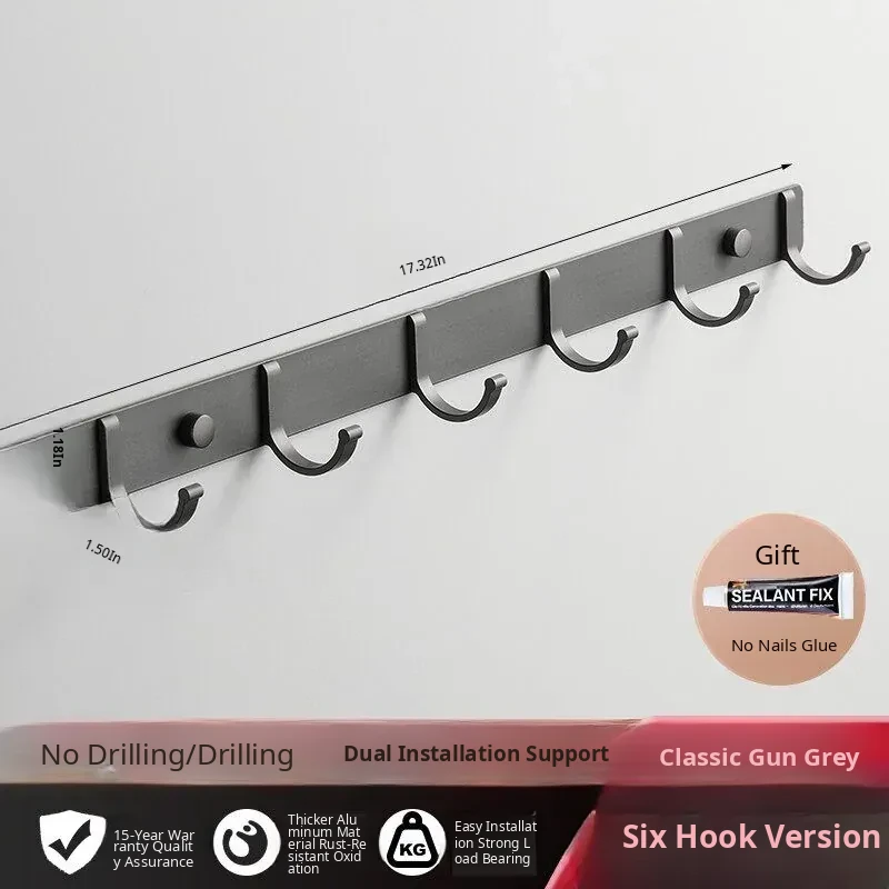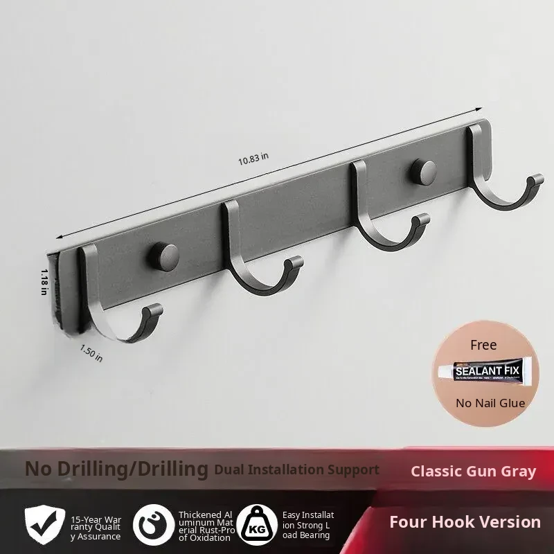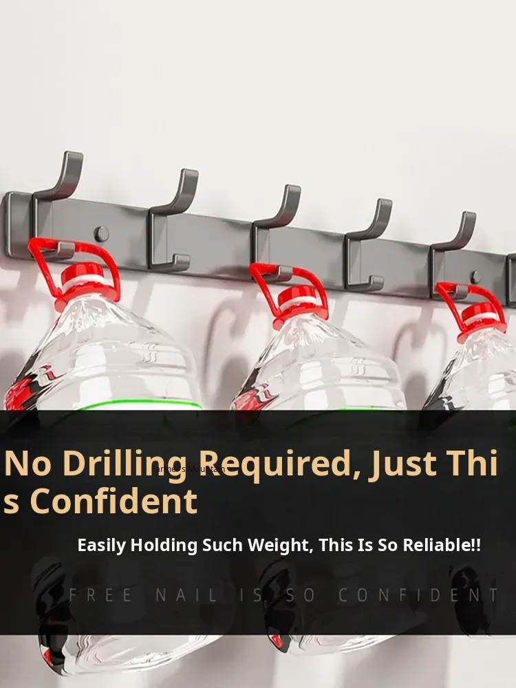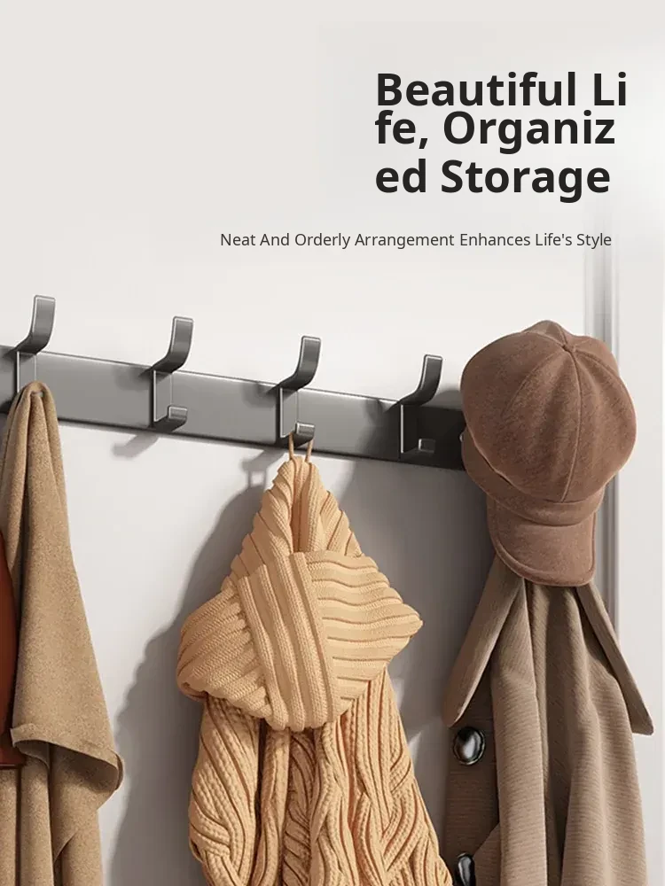 Space Aluminum Adhesive Wall Hooks - No Drilling Required, Heavy-Duty Design for Strong Load-Bearing, Complete Set for Bathroom and Closet Use, Perfect for Hanging Clothes and Accessories.
