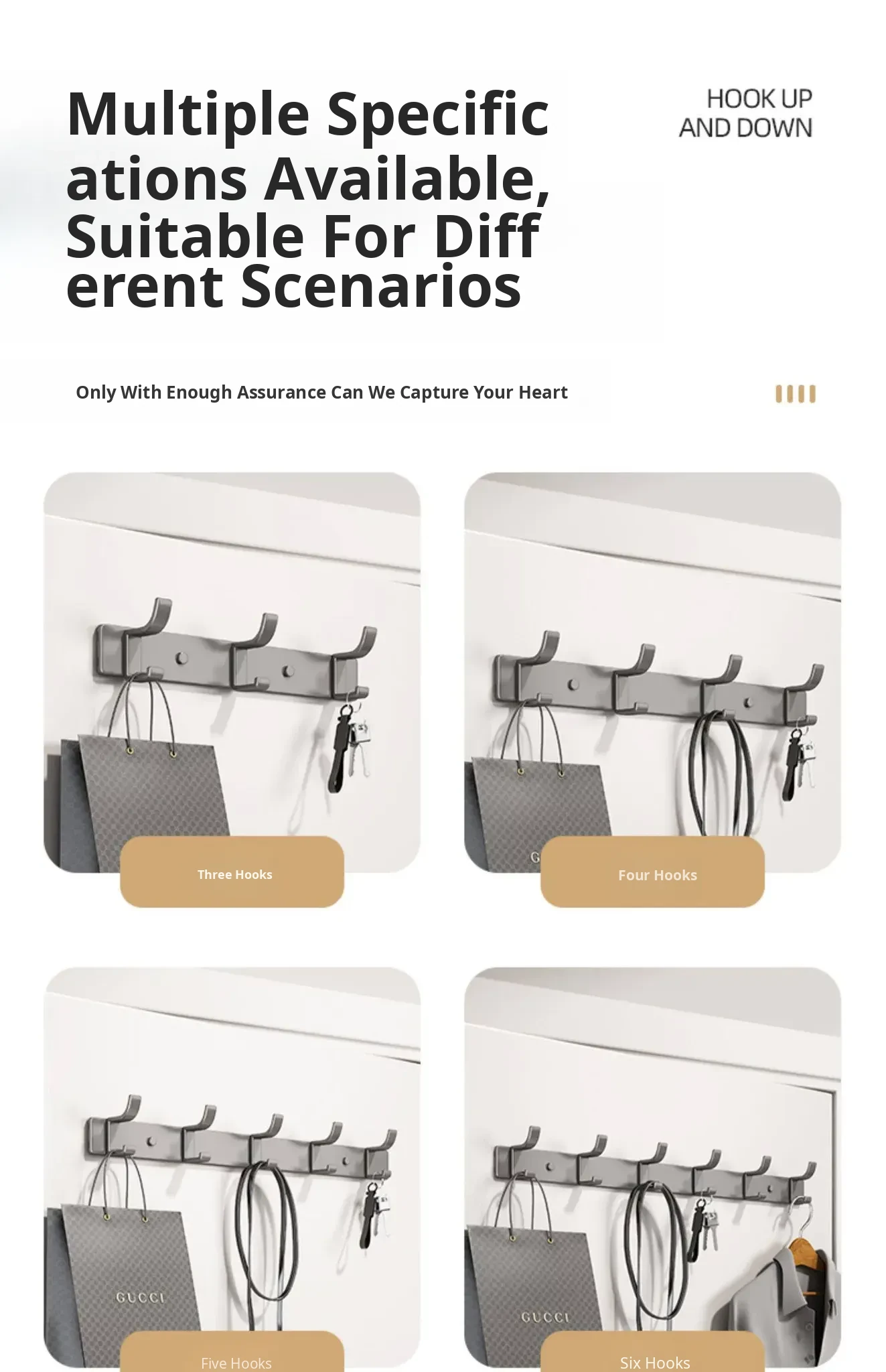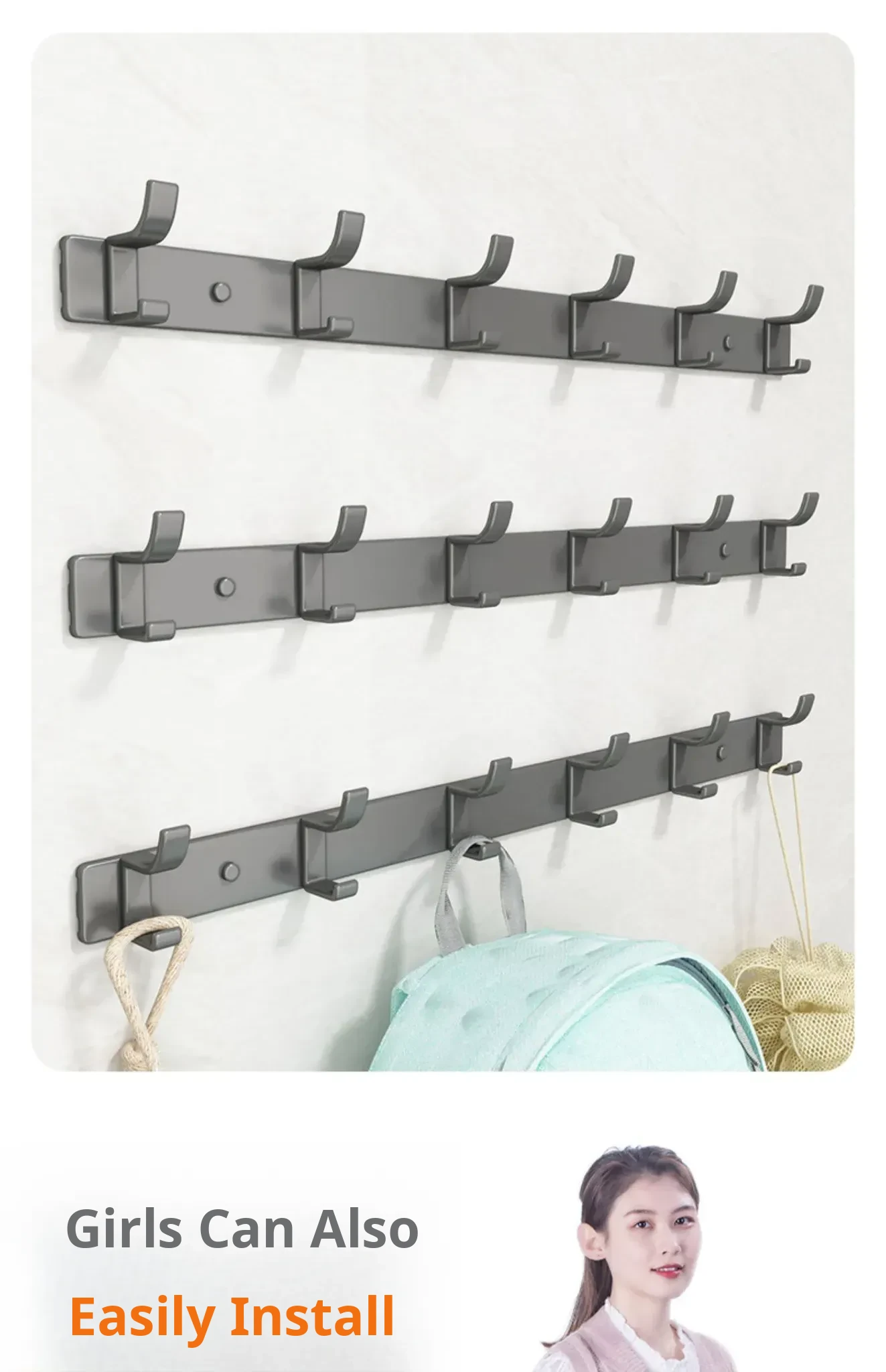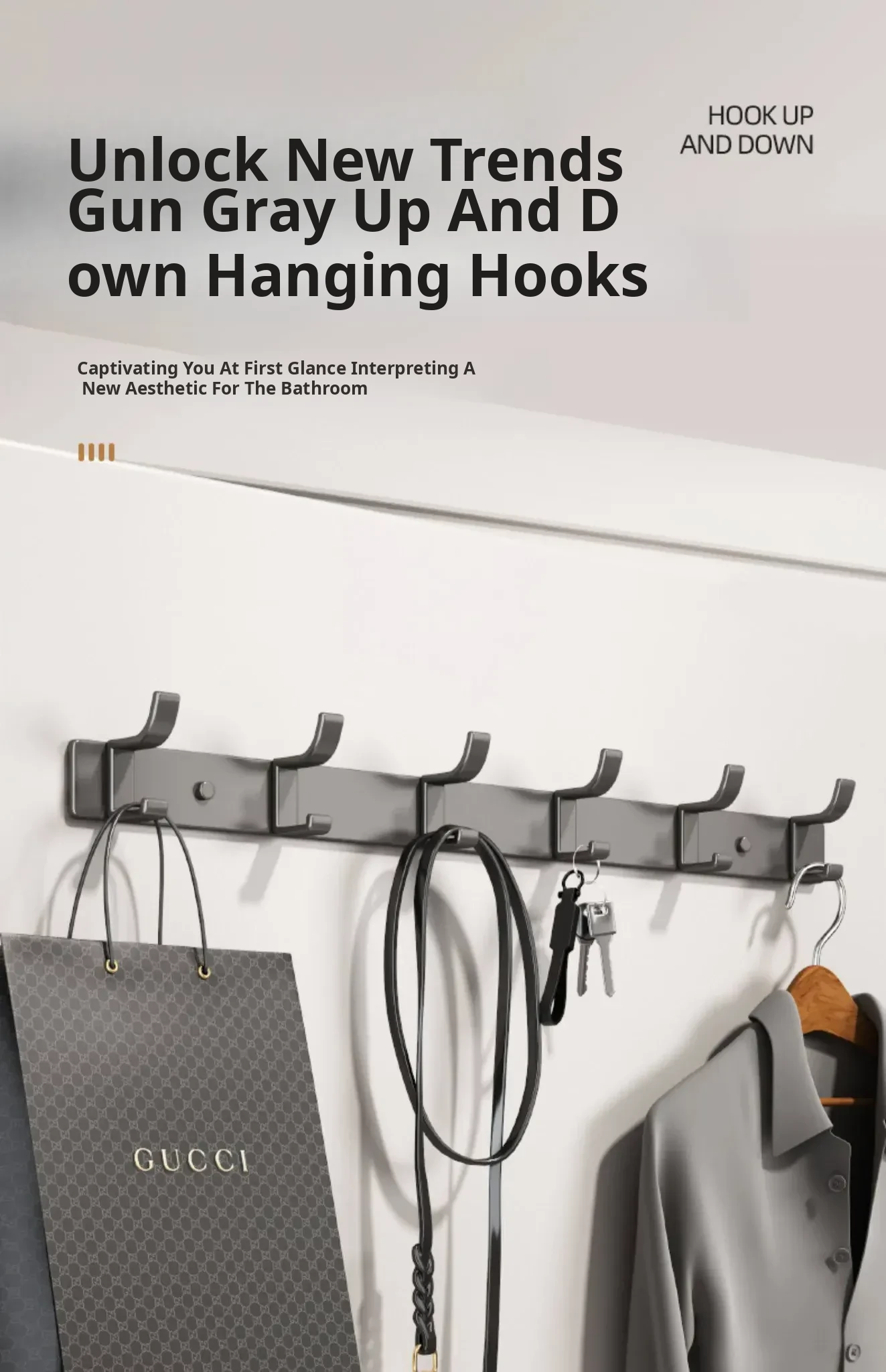 Space Aluminum Adhesive Wall Hooks - No Drilling Required, Heavy-Duty Design for Strong Load-Bearing, Complete Set for Bathroom and Closet Use, Perfect for Hanging Clothes and Accessories.