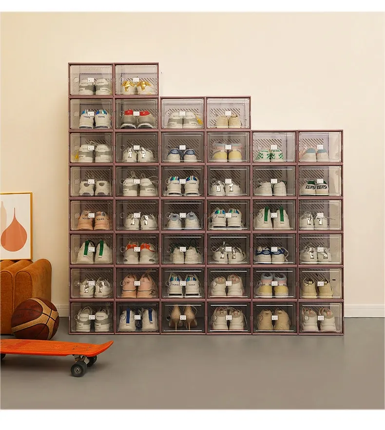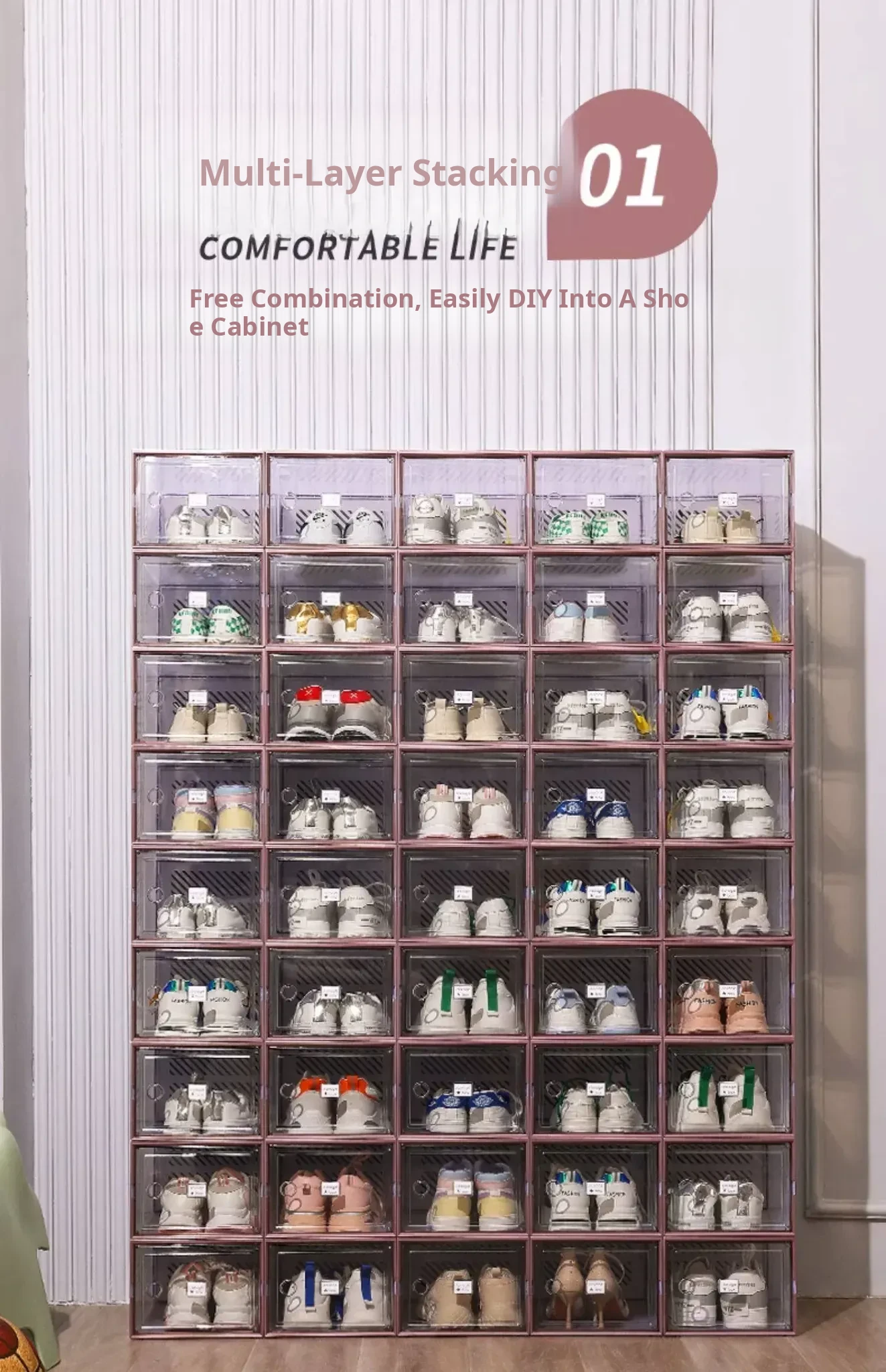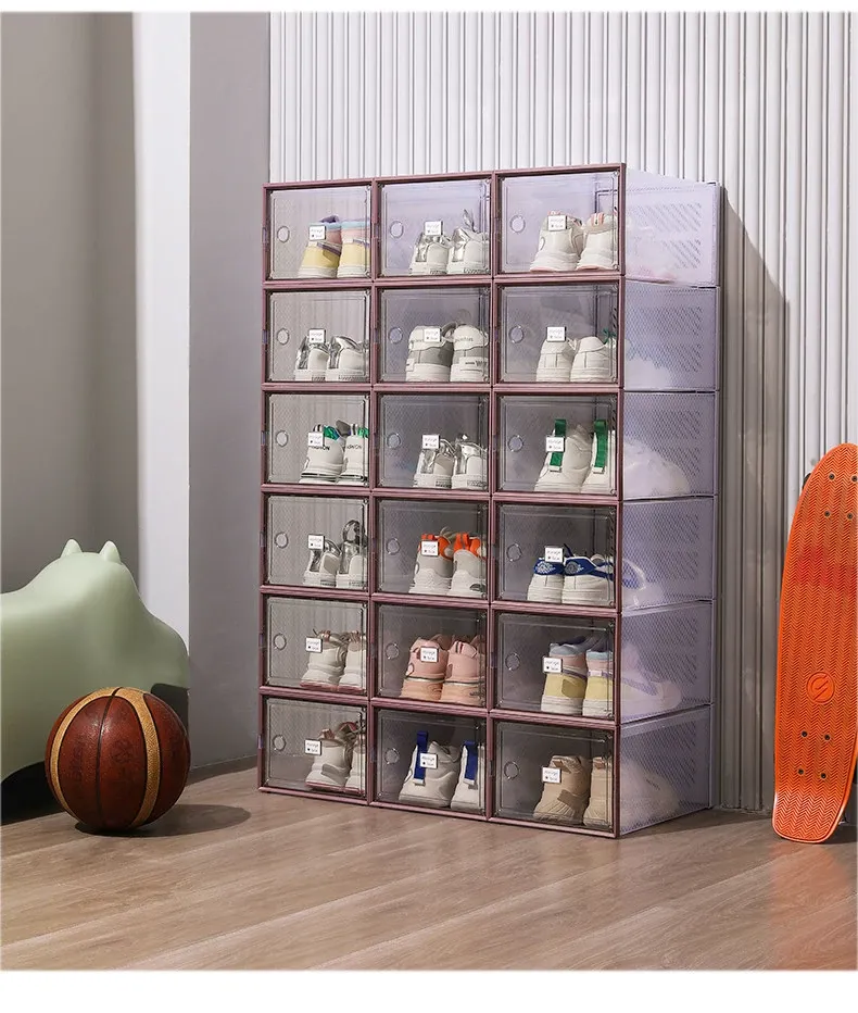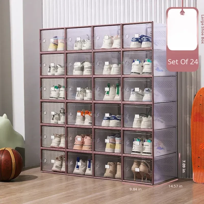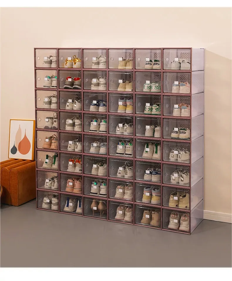 Space-Saving Transparent Shoe Storage Box - Foldable Plastic Organizer for Short Boots and Sneakers, Perfect for Home Use and Trendy Shoe Cabinet