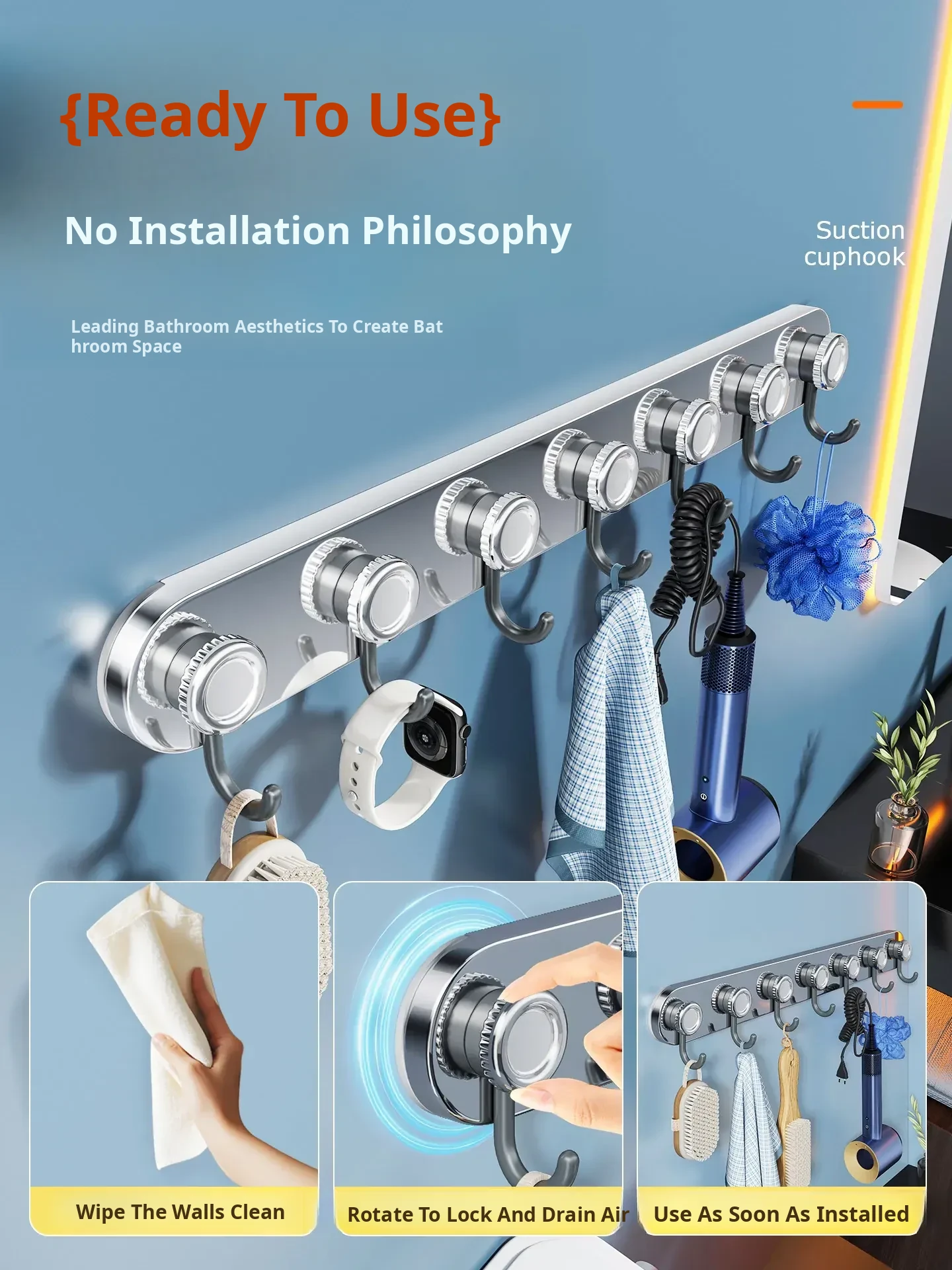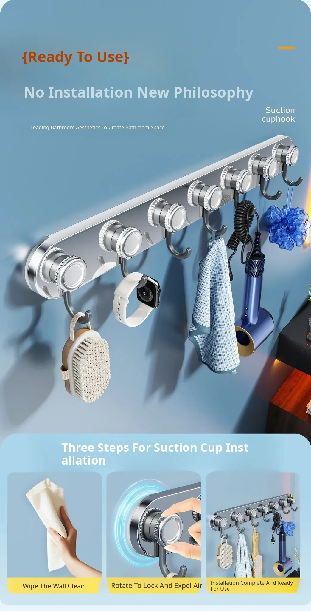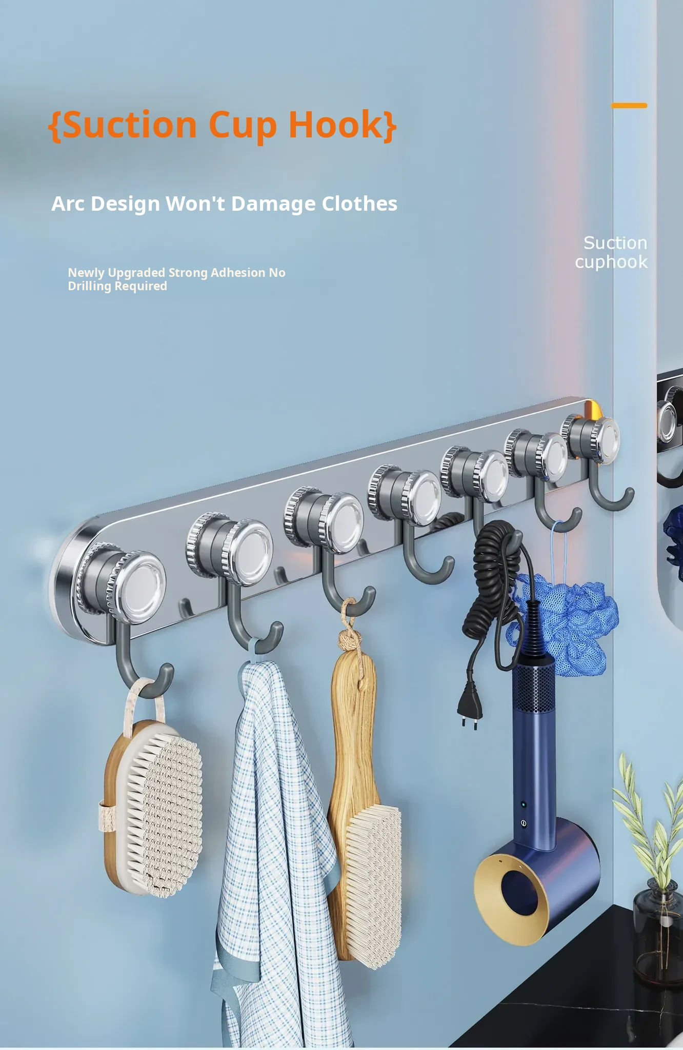 Stainless Steel Suction Cup Hooks - Set of Wall-Mounted Hooks for Entryway and Bathroom, No Drilling Required, Perfect for Hanging Coats and Towels Behind Doors