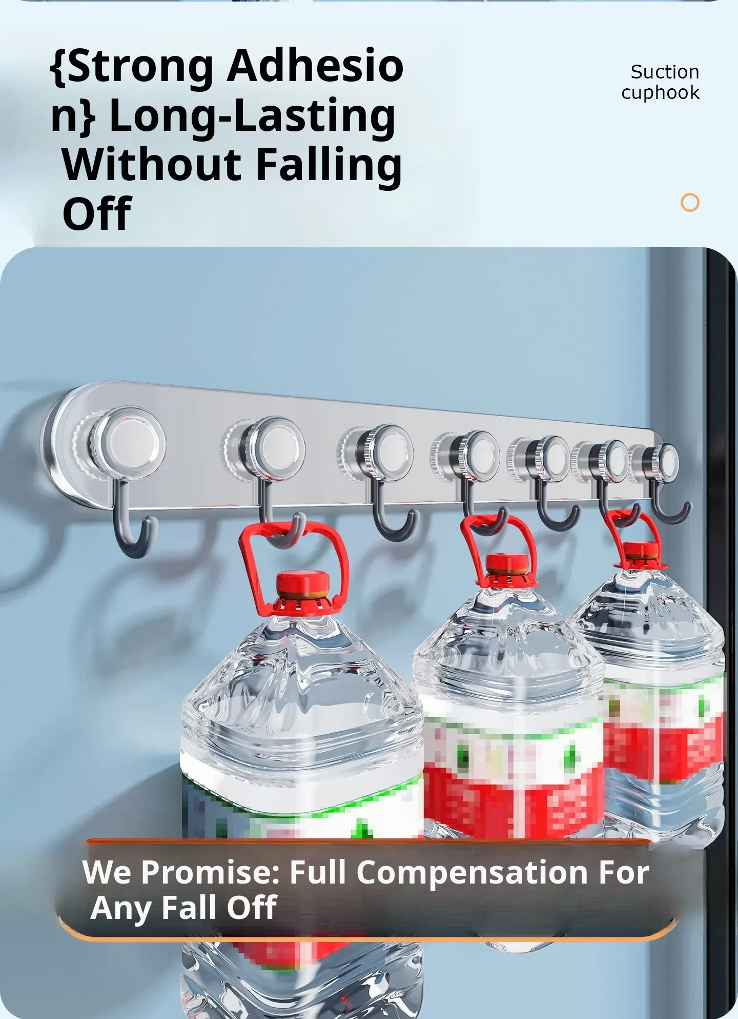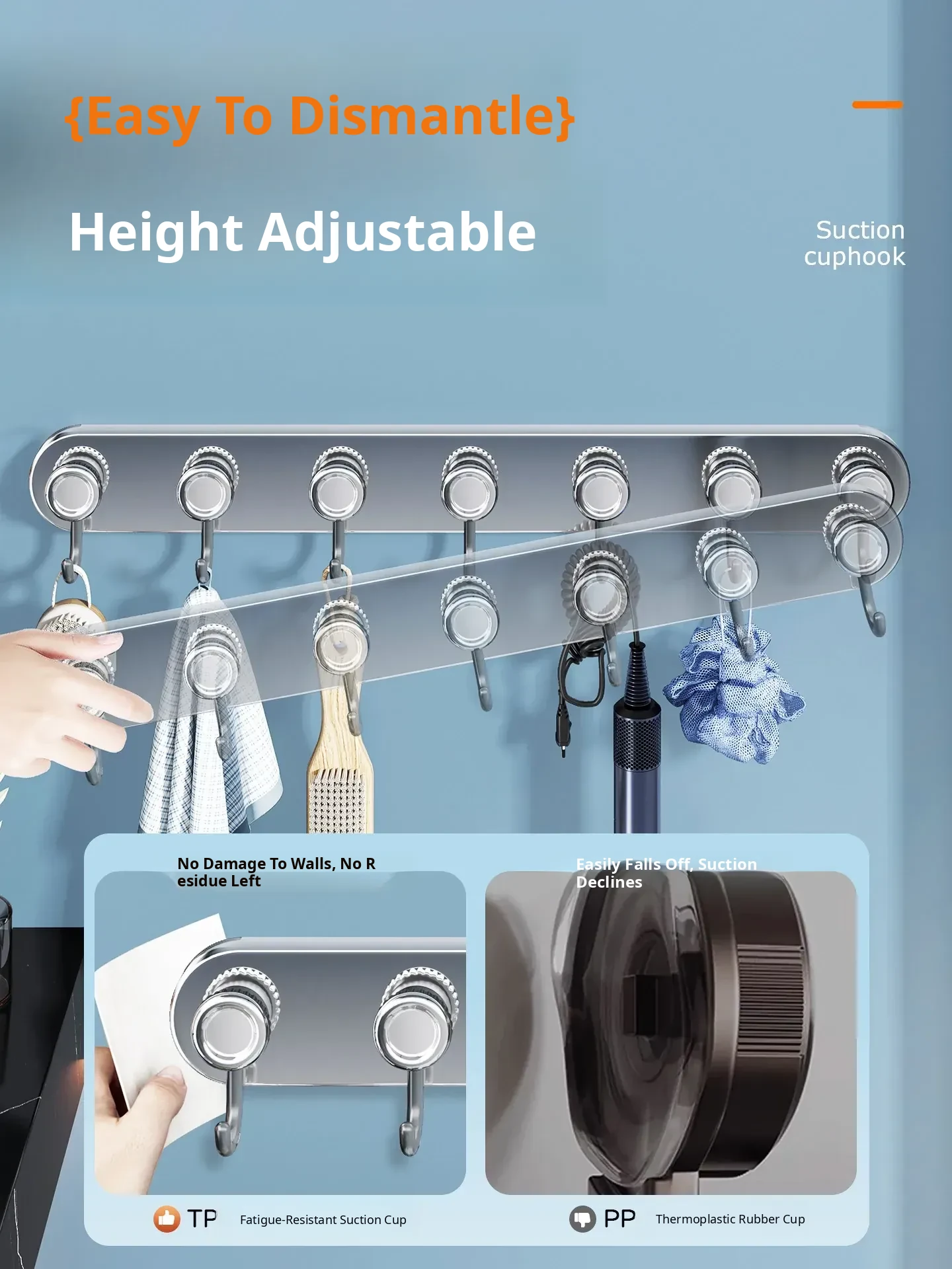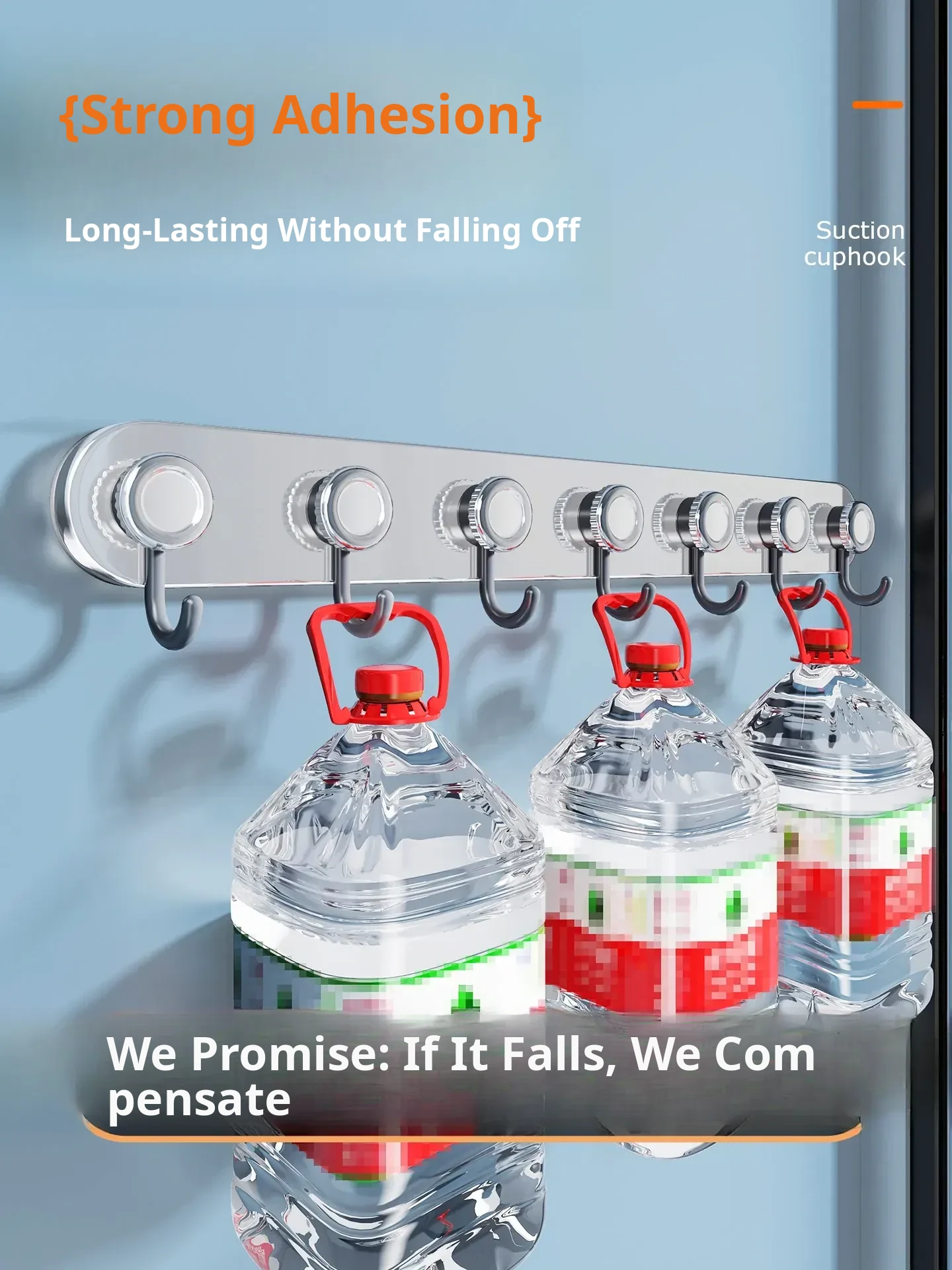 Mirror Stainless Steel Gray Drain 8 Hooks (8 Suction Cups)