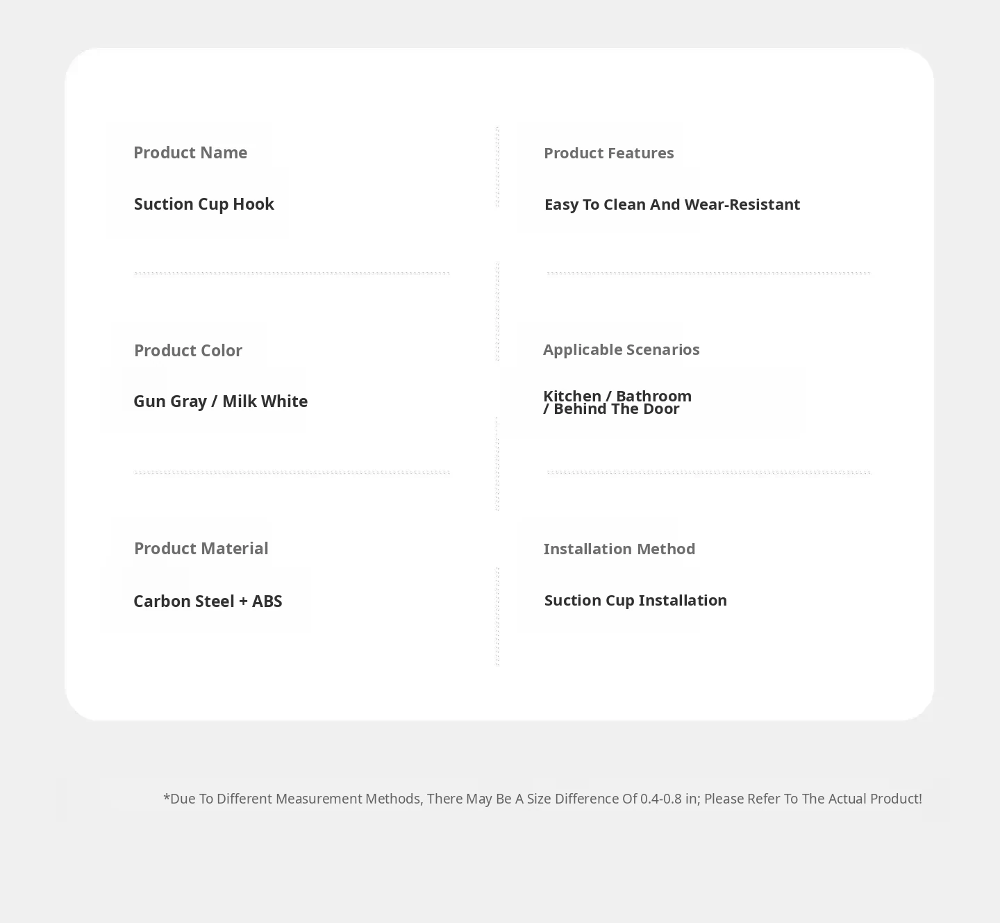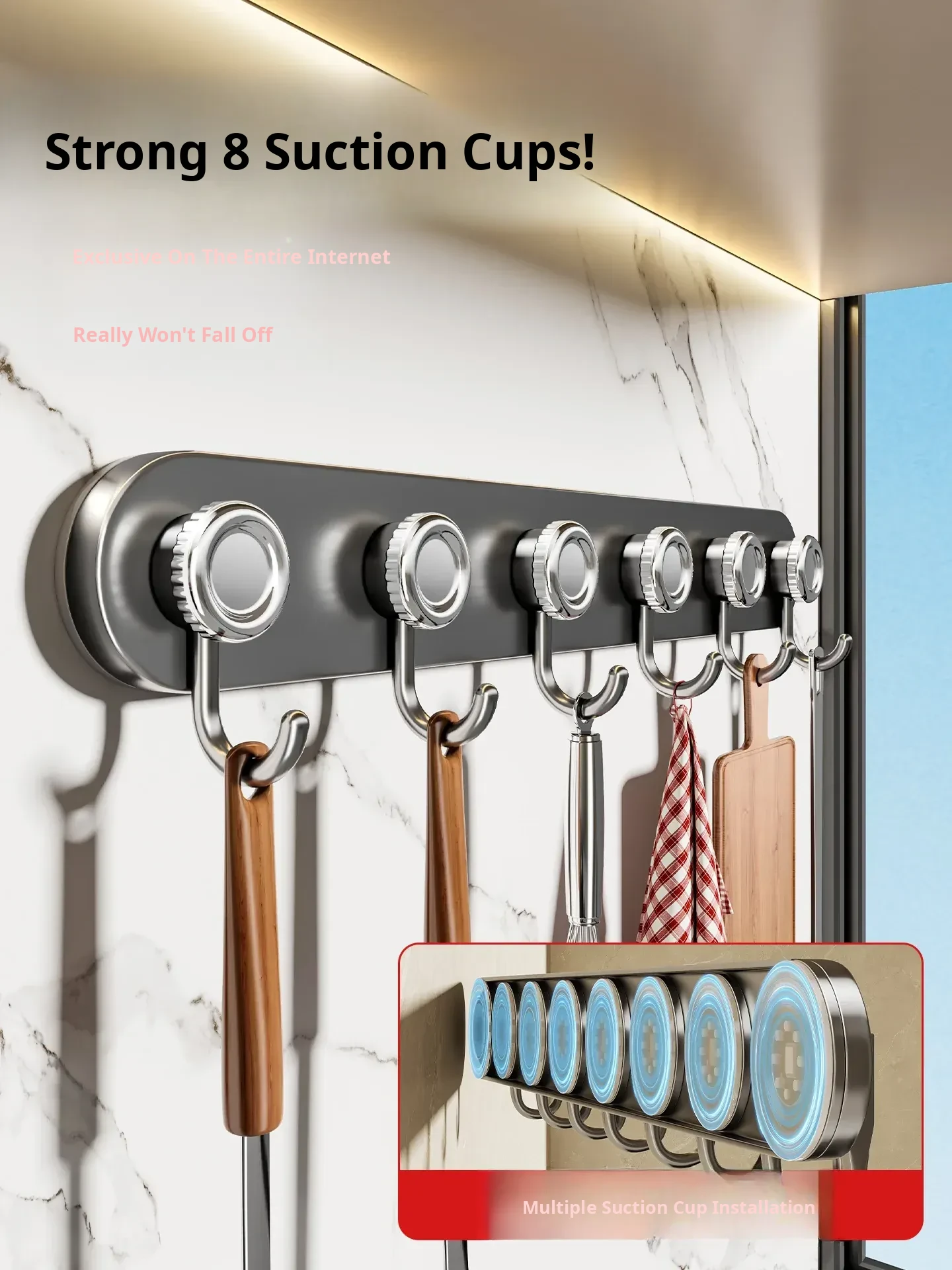 【Exclusive on the Entire Network⭐Reinforced 8 Suction Cup Kitchen Hooks - Gunmetal Gray 8-Hook Set
