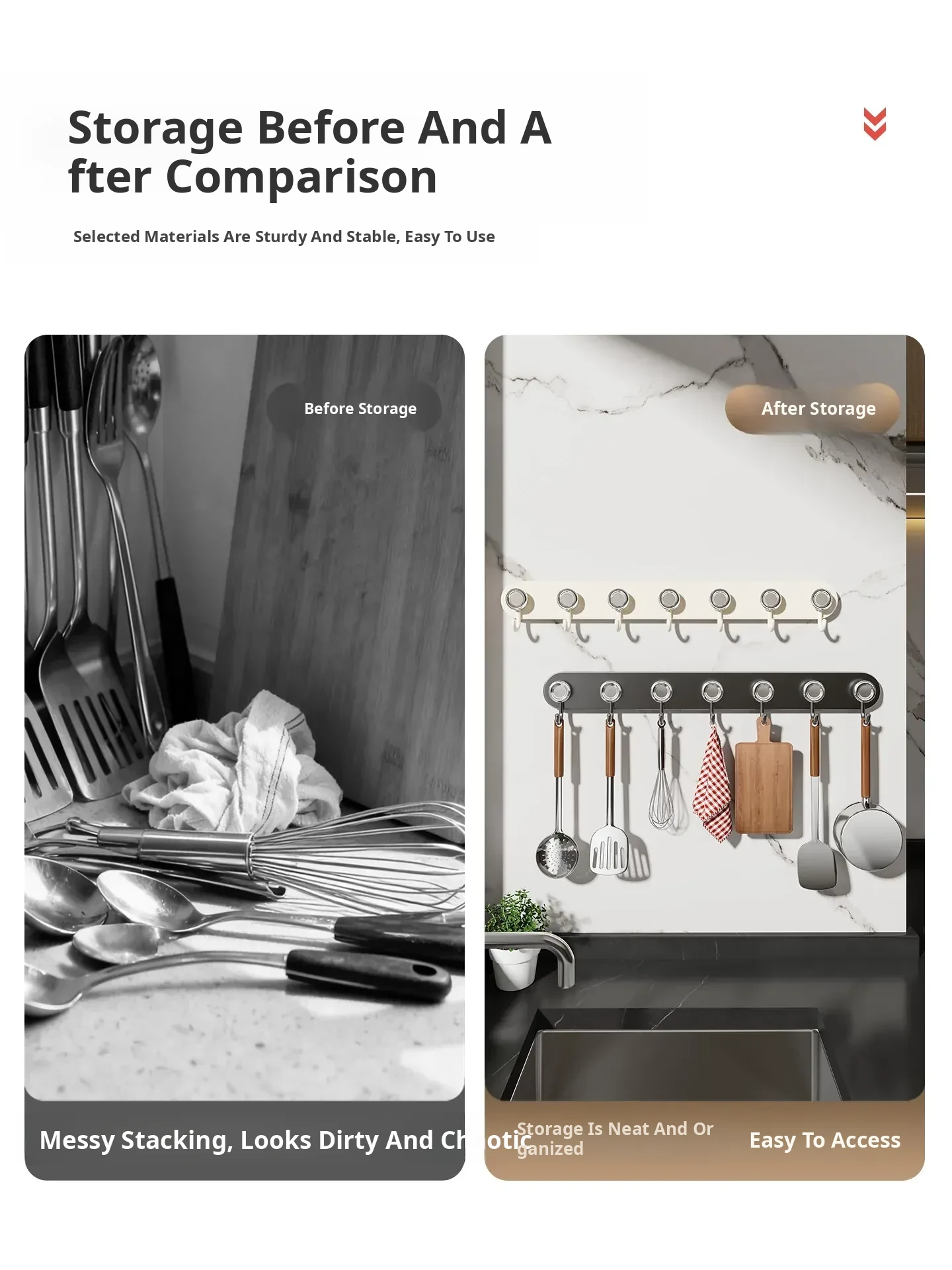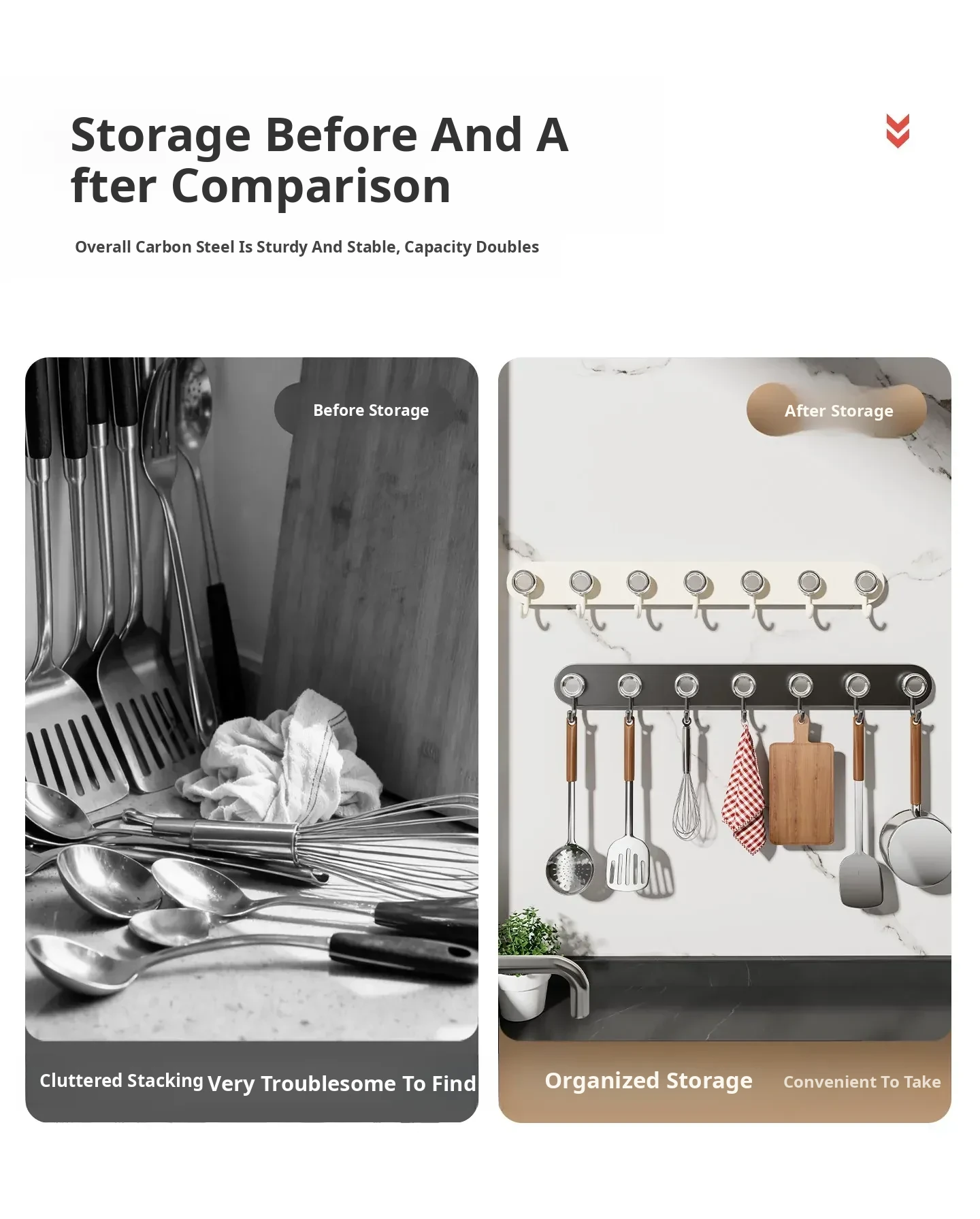 Suction Cup Kitchen Hooks - Wall-Mounted Utensil Rack for Spatulas and Spoons, No Drilling Required, Space-Saving Organizer for Easy Kitchen Storage