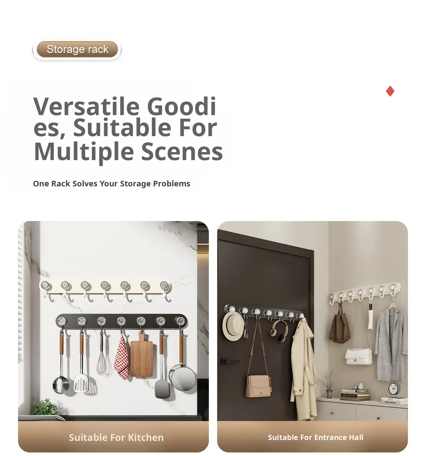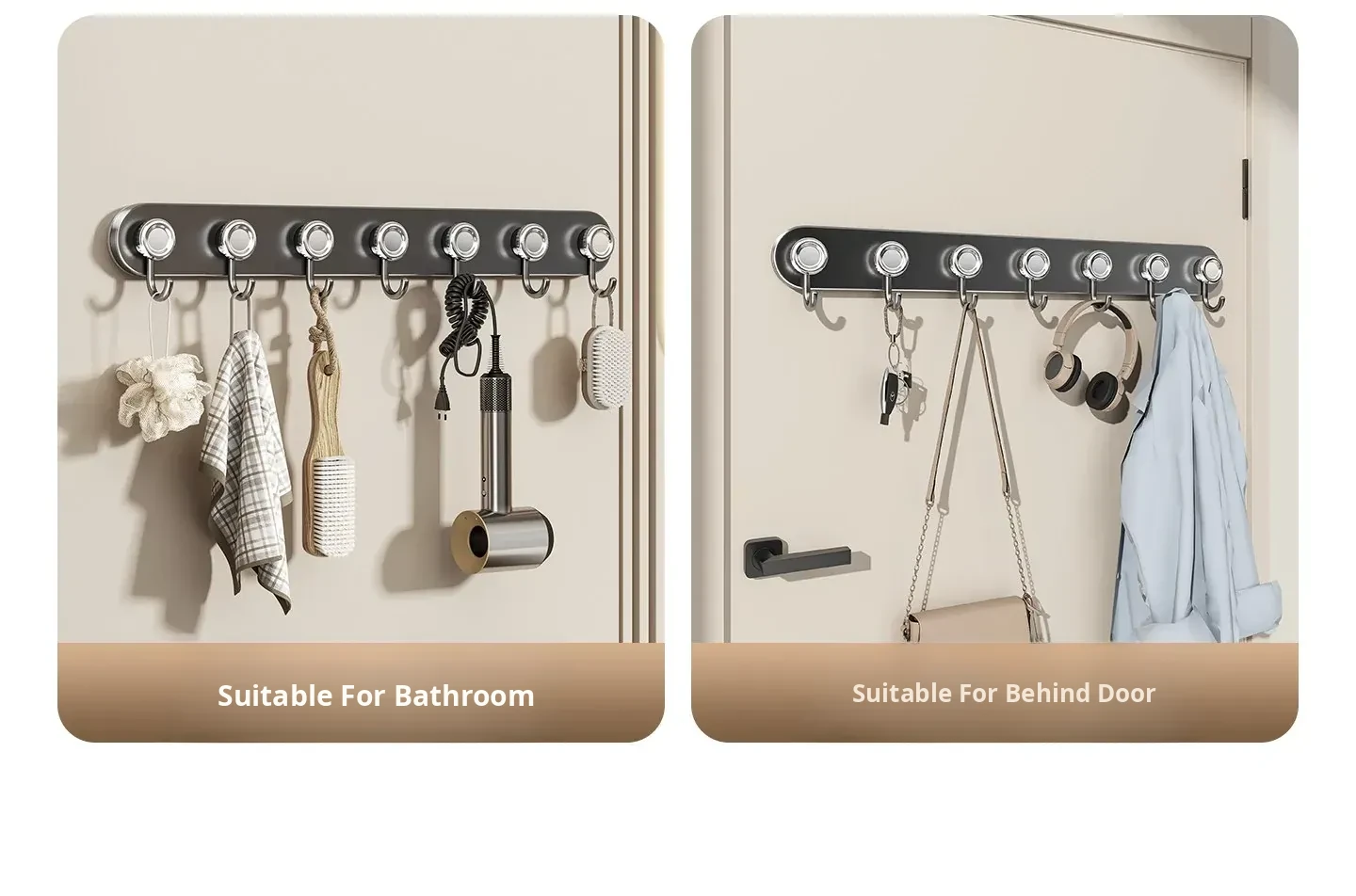 【Exclusive on the Entire Network⭐【Enhanced with 6 Suction Cups】Kitchen Hook - Gunmetal Gray 6-Hook