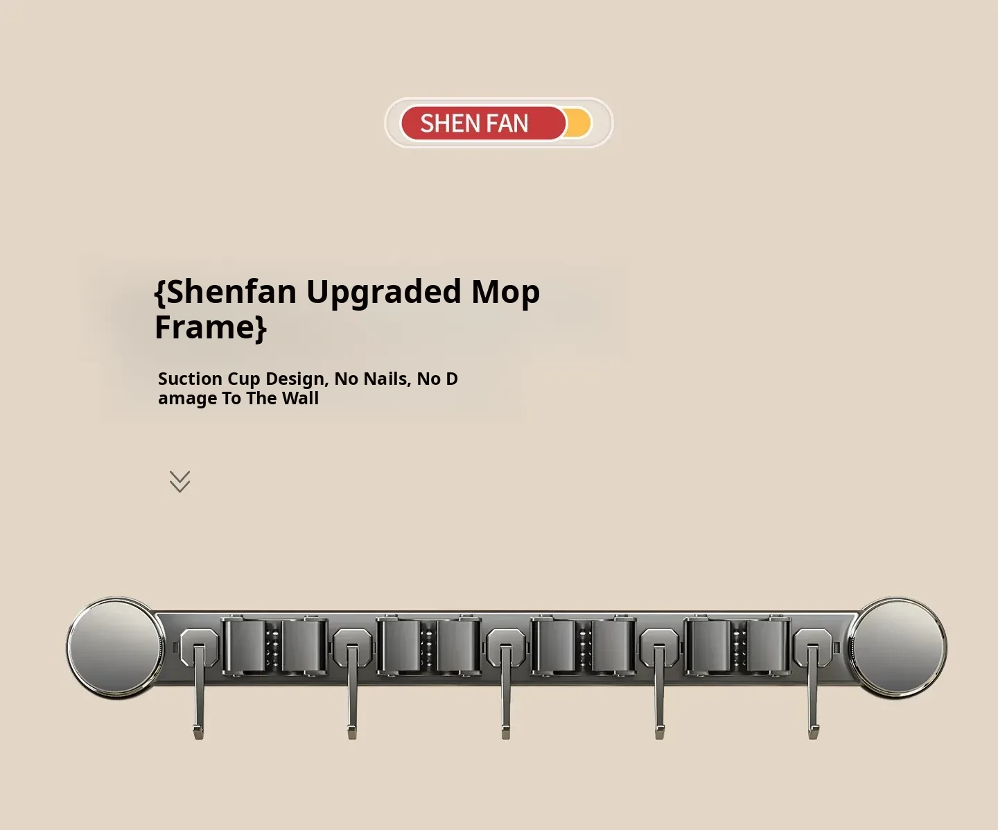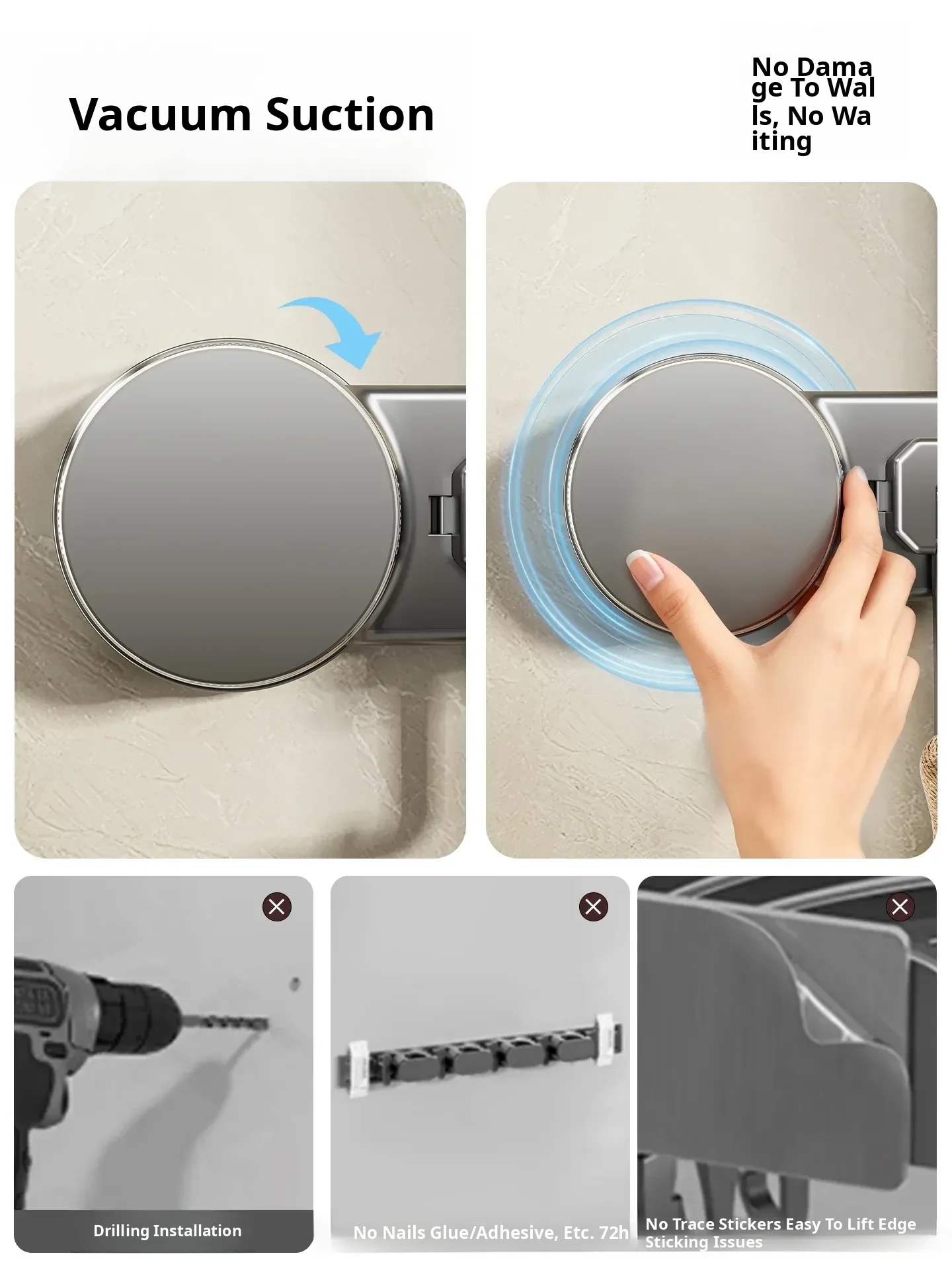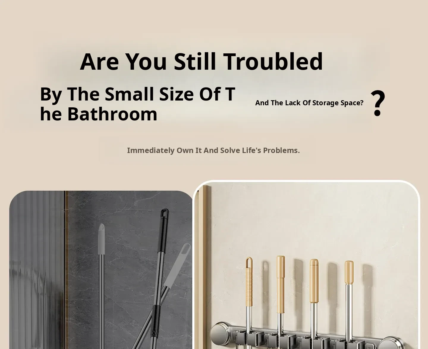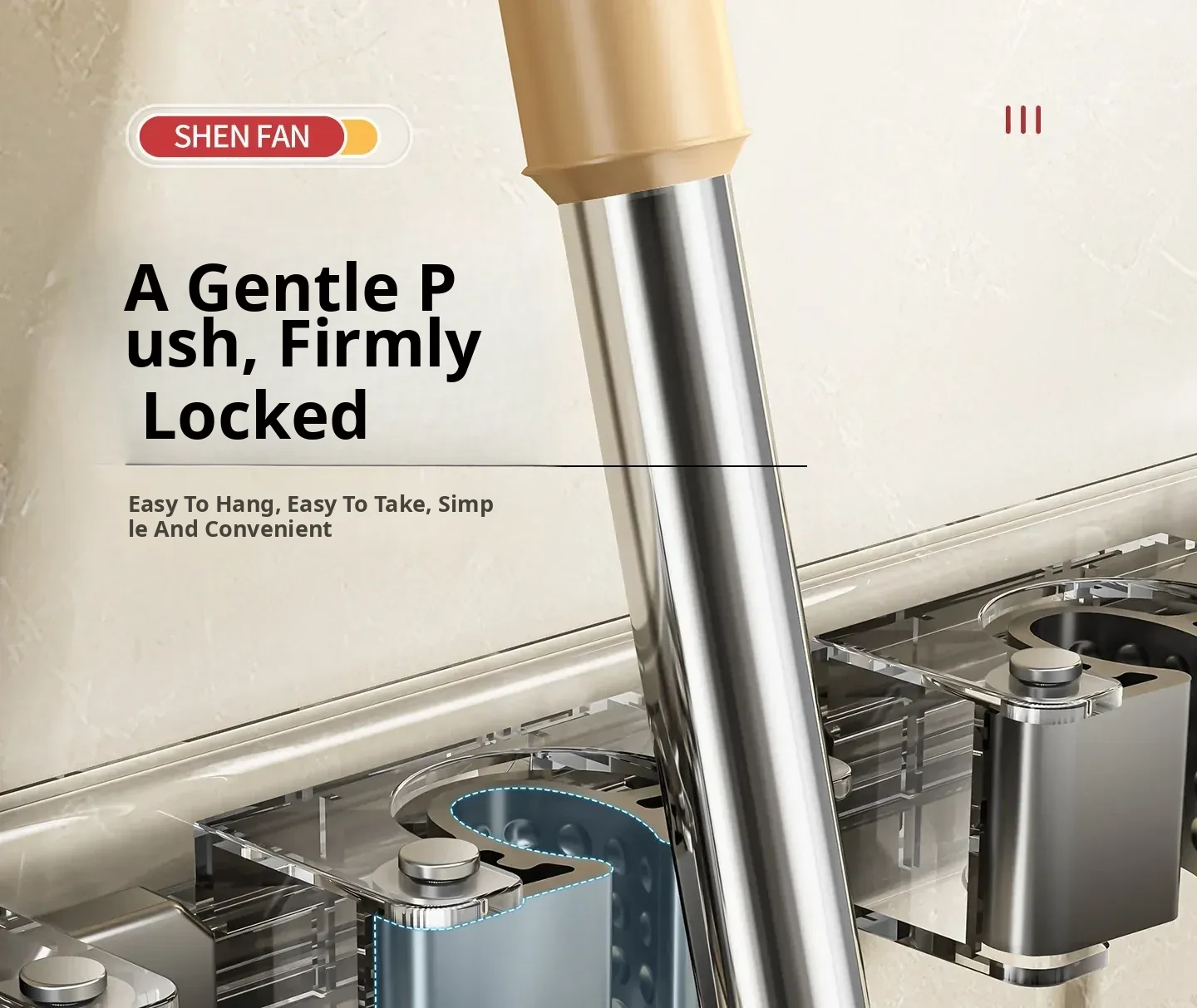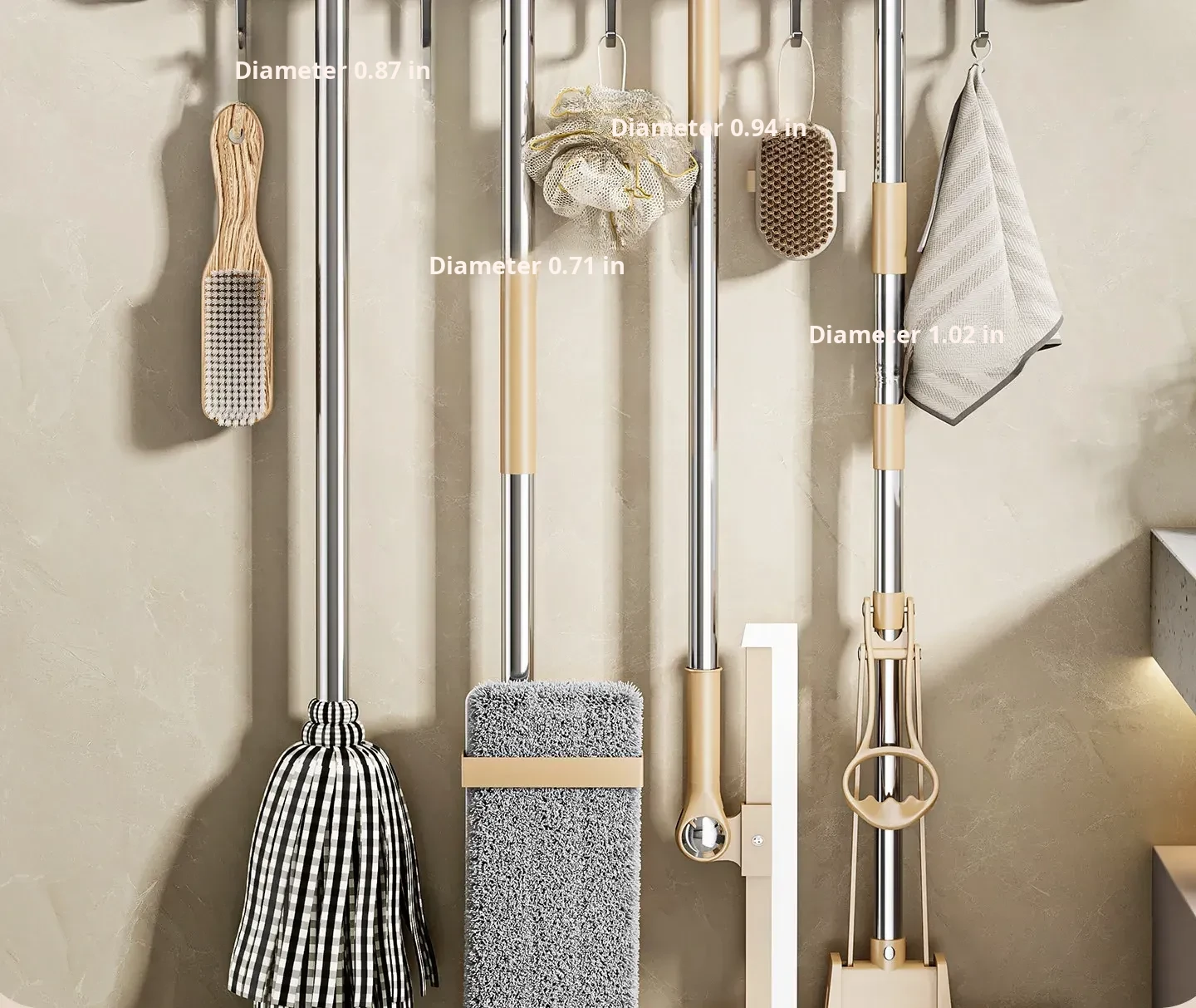 Suction Mop Wall Mount Holder - No Drill Mop and Broom Organizer Hook for Bathroom - Space-Saving Storage Solution for Mops, Brooms, and Cloths
