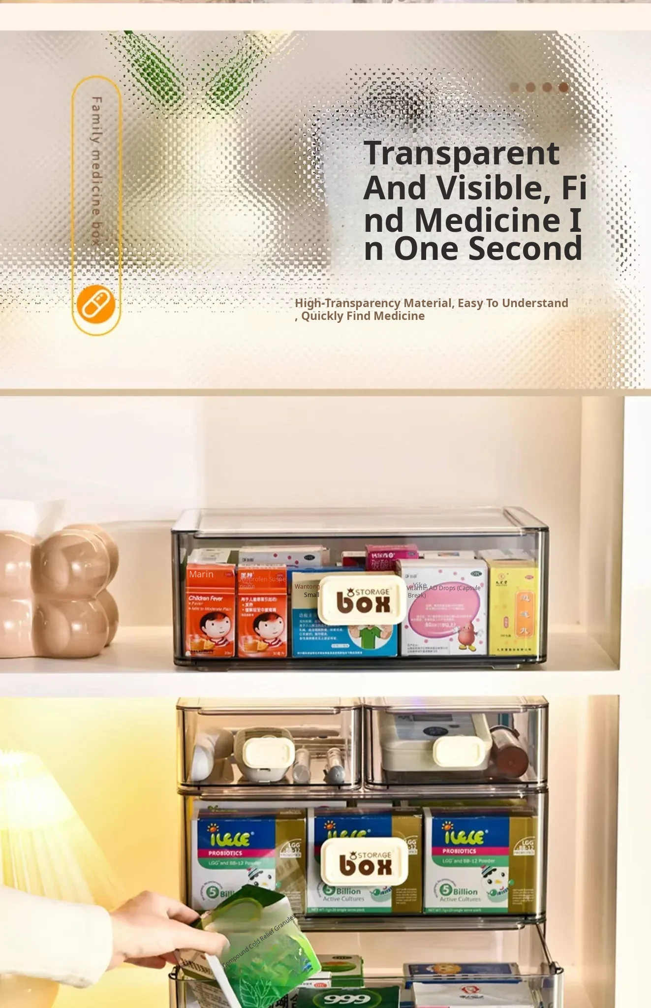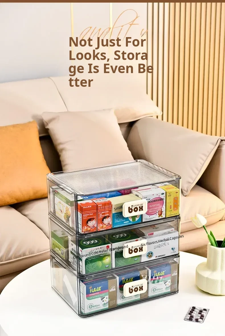 Transparent Multi-Layer Medicine Organizer Box - Convenient Drawer-Style First Aid Kit for Home, Perfect for Storing Medications and Emergency Supplies