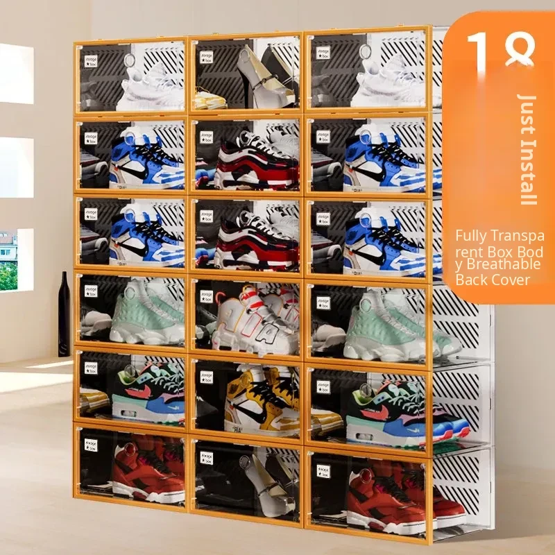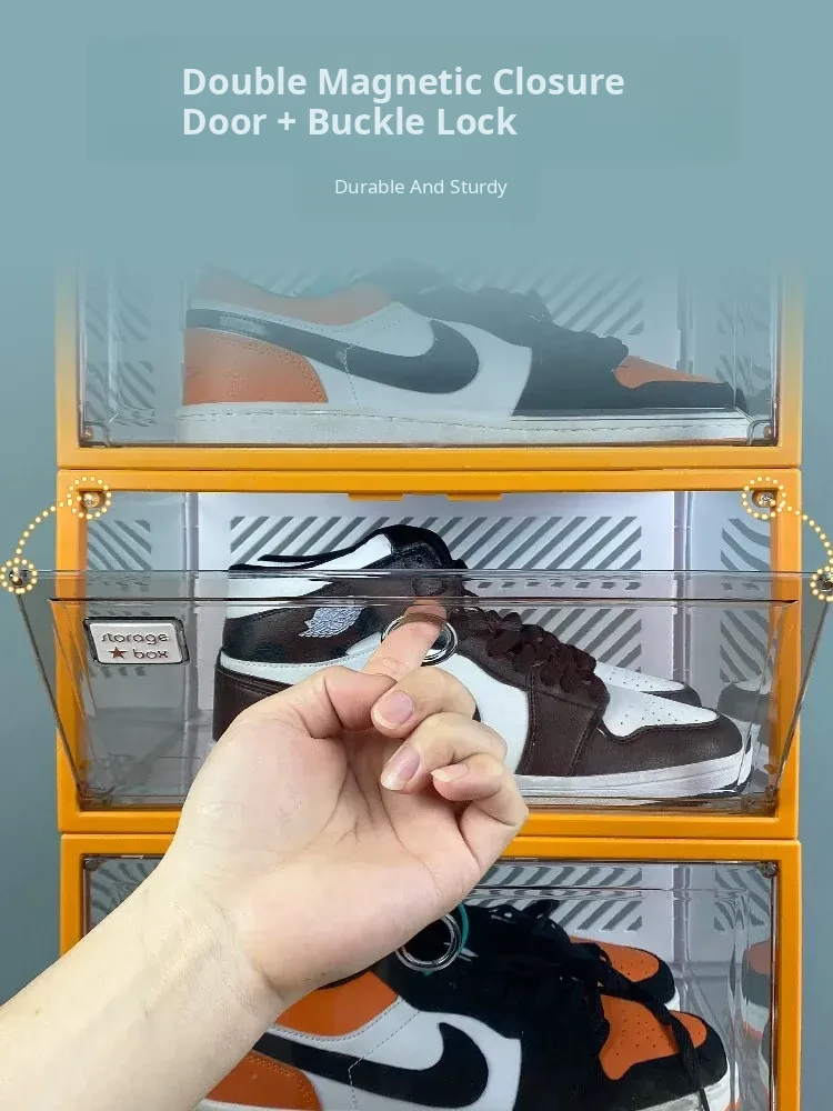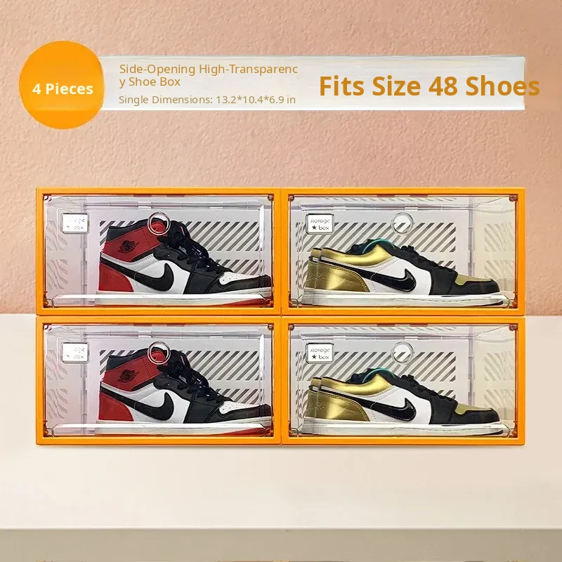 Fully Transparent Shoe Box [Double Magnetic Door/Can Hold 48 Sizes of High-Top Shoes] 4 Pieces