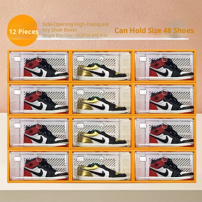 Fully Transparent Shoe Box [Double Magnetic Door/Can Hold 48 Size High-Top] 12 Pieces